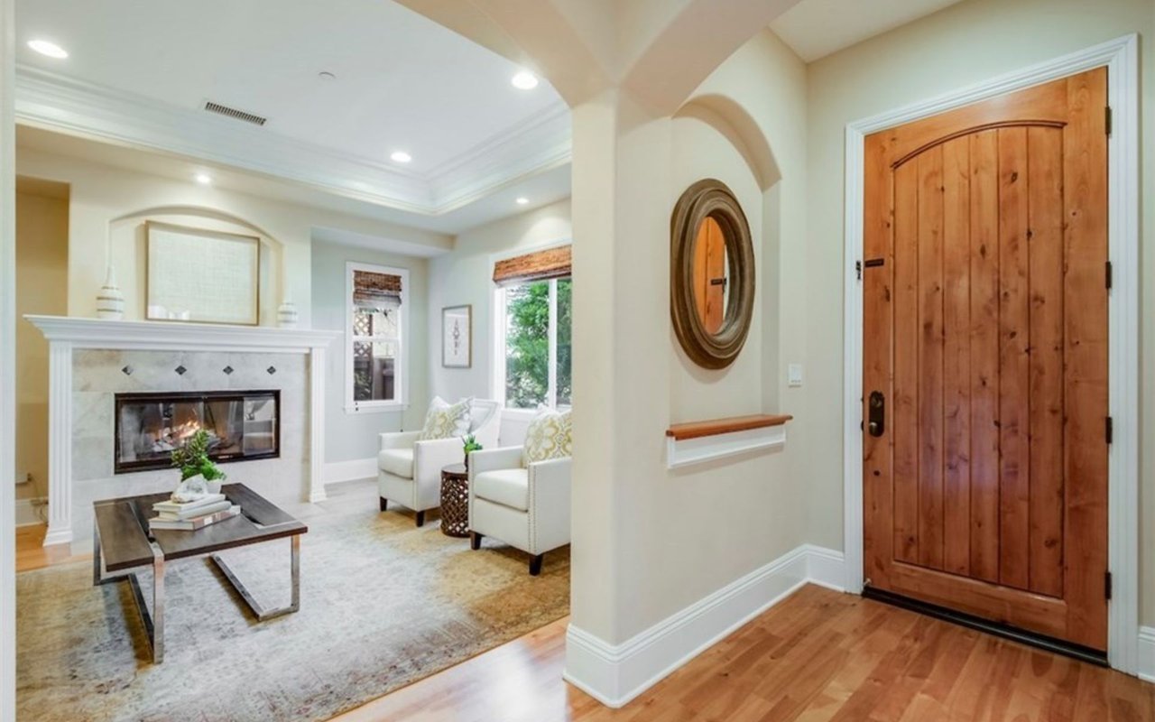 Represented seller. Newer front town home featuring vaulted ceilings, lots of natural light and great curb appeal. All of the living space is on the first level with separated living and dining rooms and a kitchen with nook open to the family room. To the west of the family room is a courtyard with built in BBQ and fountain, perfect for entertaining. Upstairs are all four bedrooms including large, luxurious master suite. Located in one of the top ranked school districts in the nation, this is an amazing opportunity for owner-user or investor.