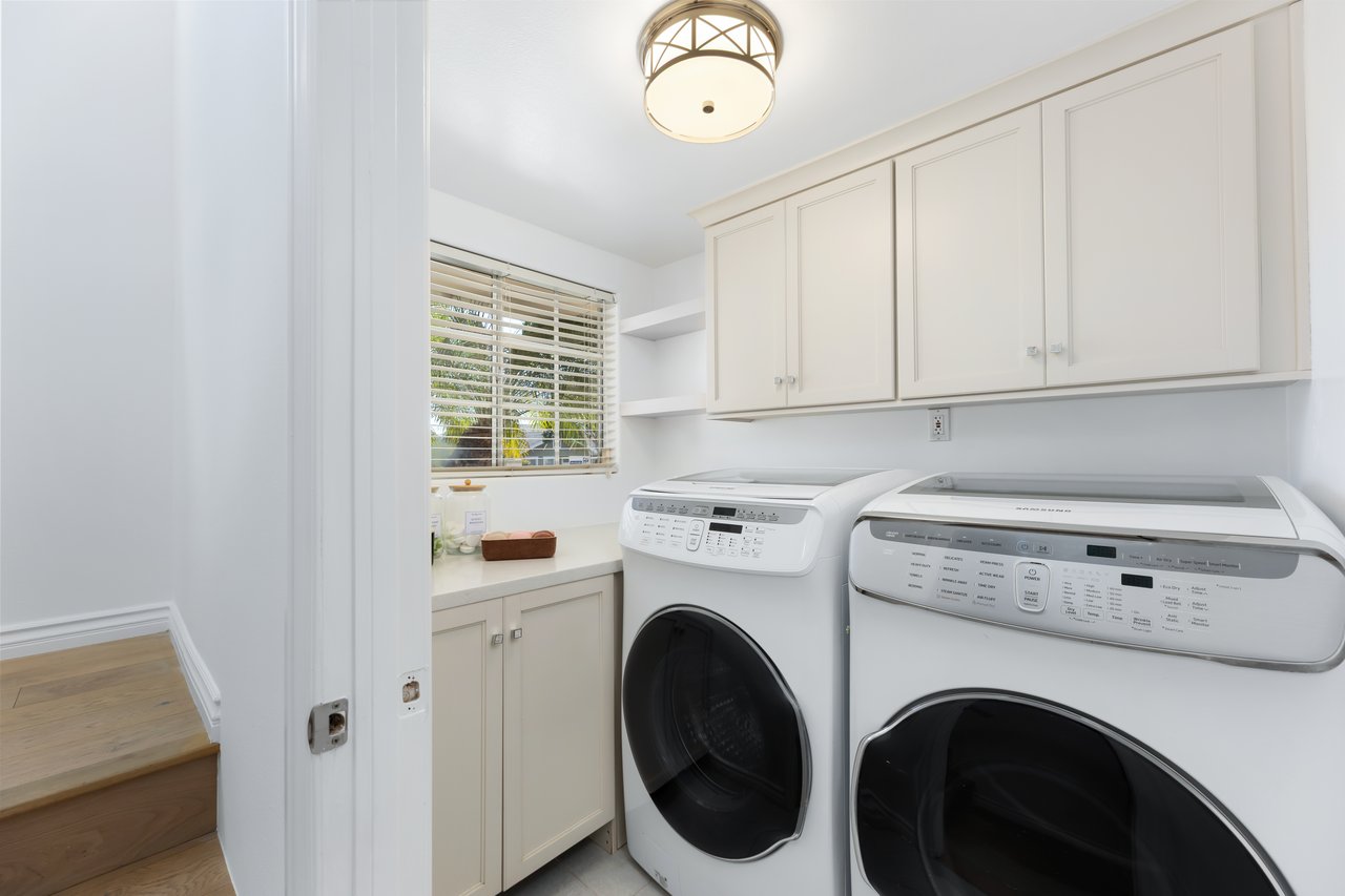 Additional highlights include direct access to the attached two-car garage, a separate laundry room with extra storage and counter space, connected smart home for security and convenience, and emphasis on organic materials - including real wood floors, stone tile, and wood shutters throughout.