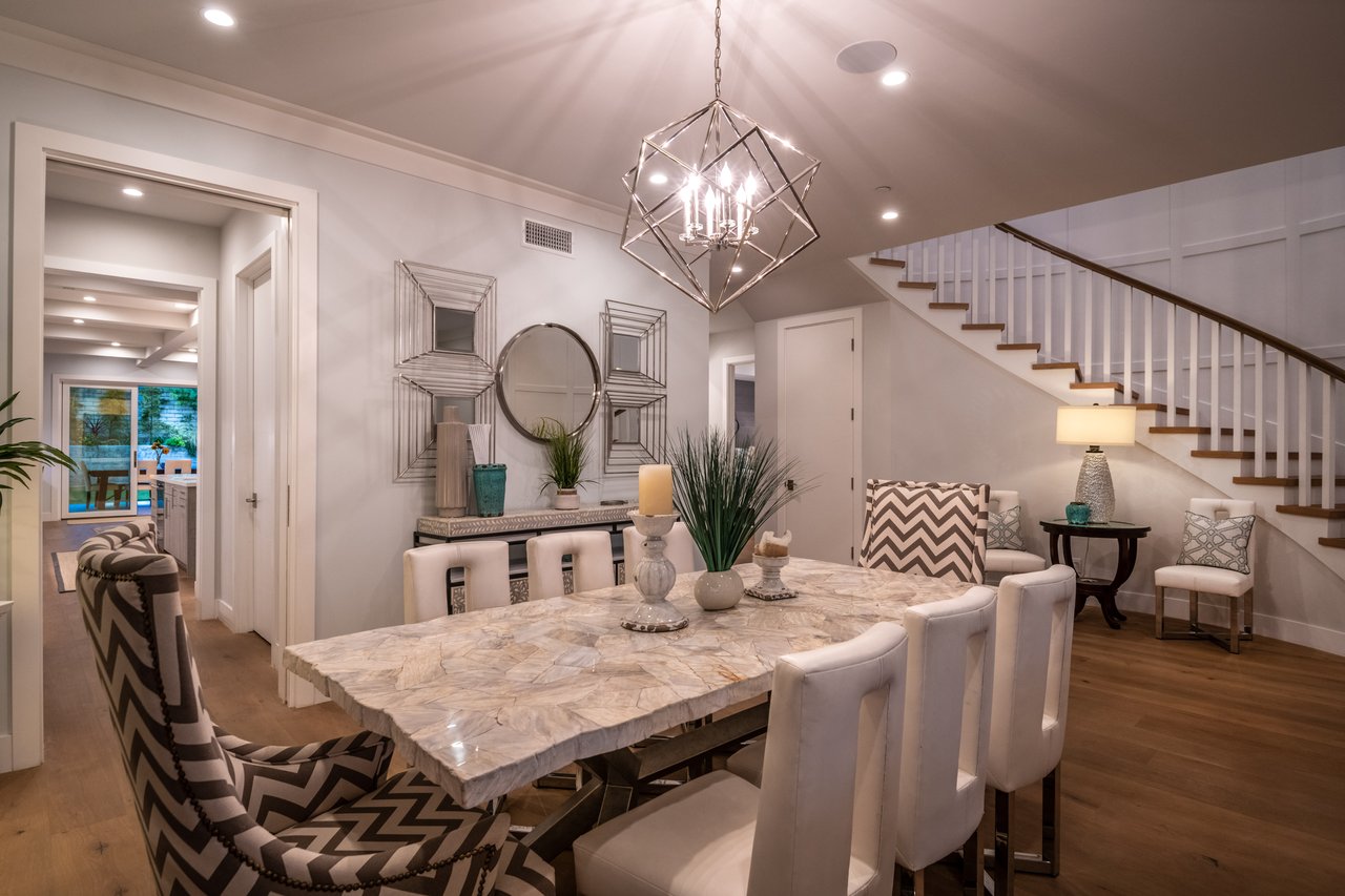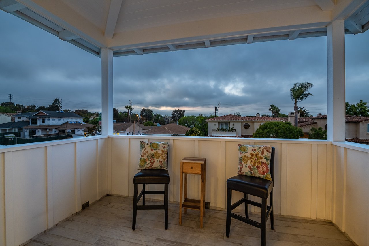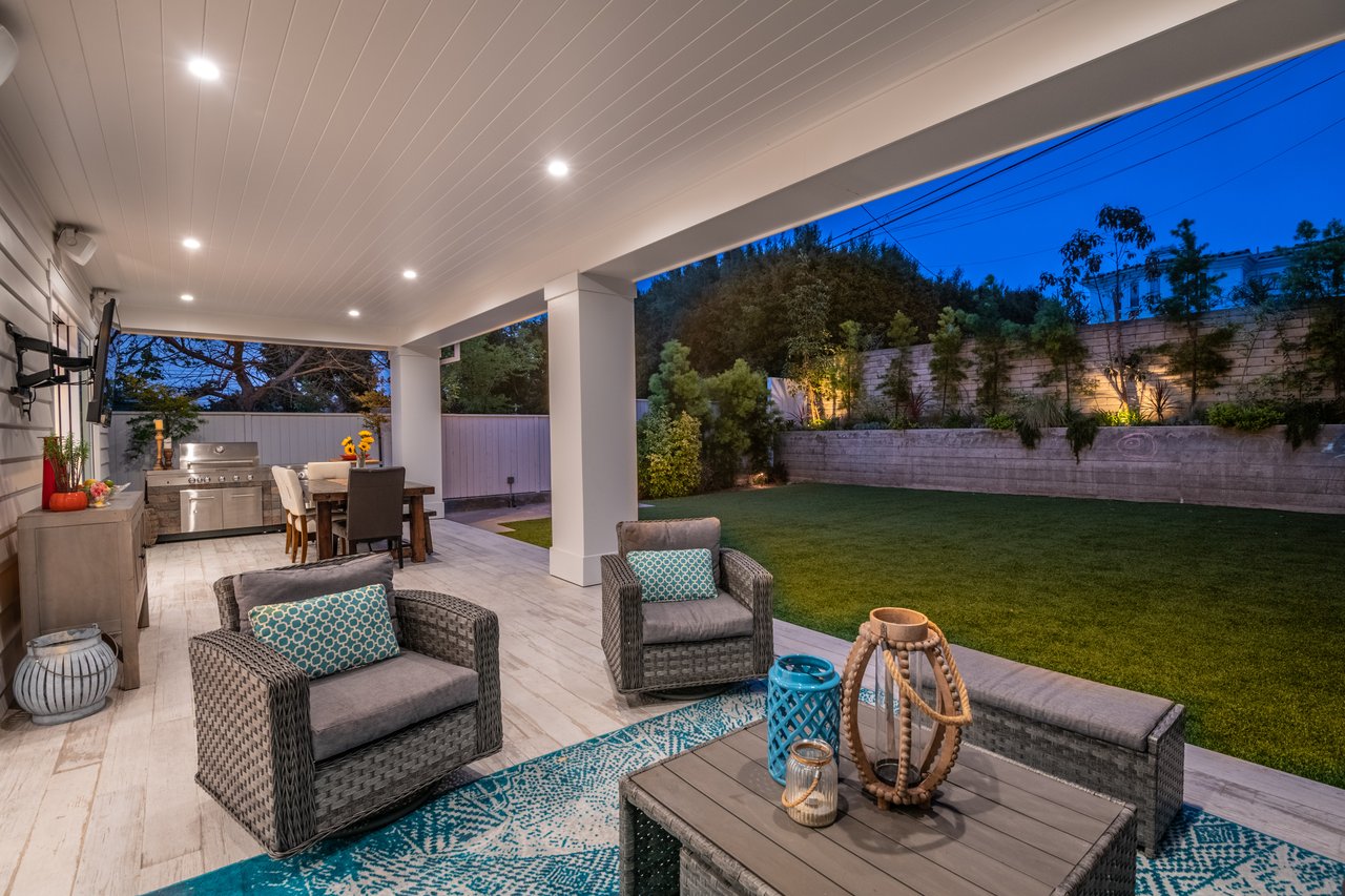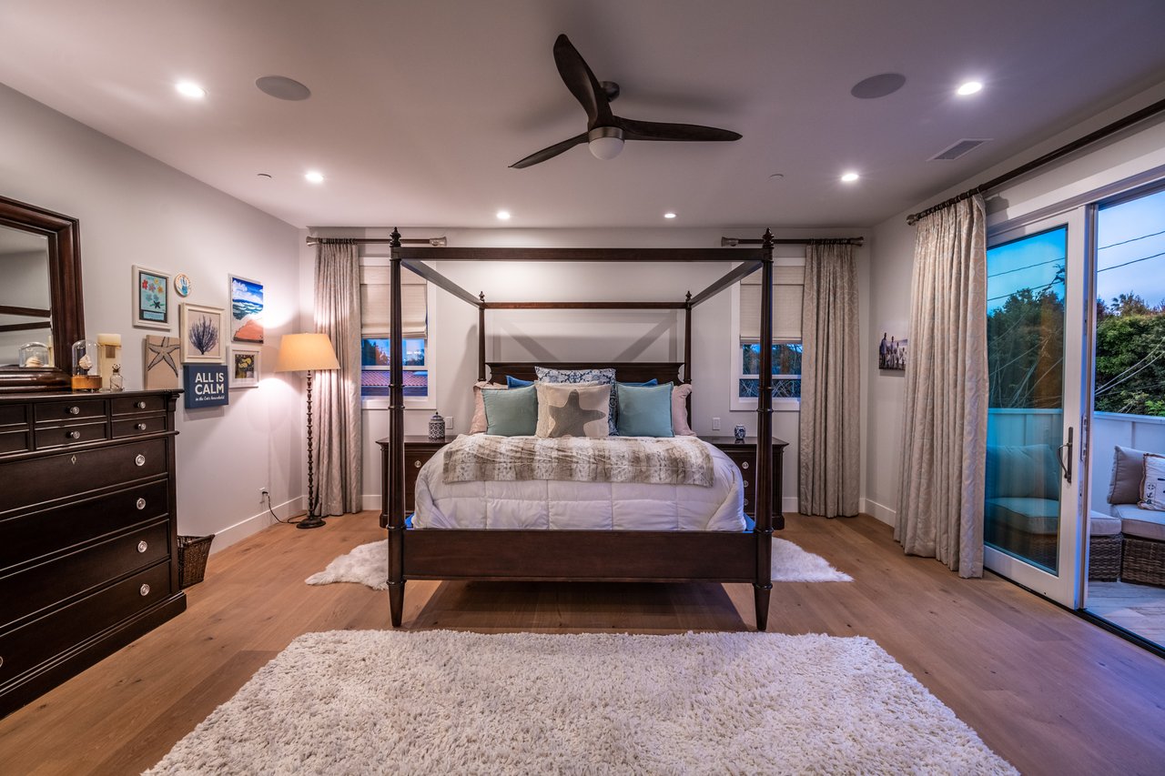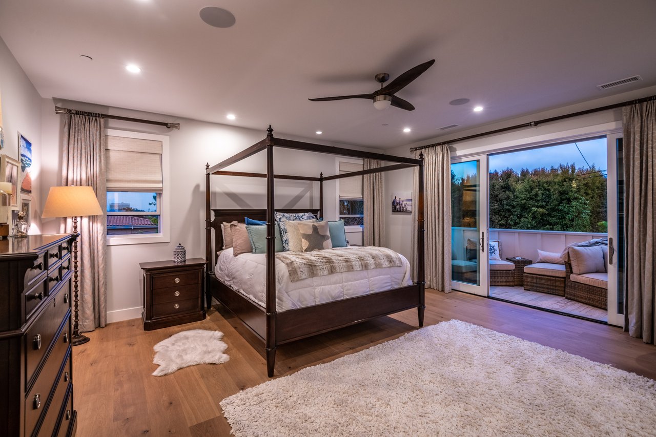 It’s stunning from the moment you see it, and it beats expectations as you go through it. The ceilings are high, the hallways are wide, the staircase is elegant and the rooms are spacious. Easily slide the floor to ceiling glass doors across to enjoy an exceptional experience of indoor-outdoor living. Each guest room has an ensuite bathroom. You have 2 choices for dining areas, and besides the main living room and family room, there is an additional living area upstairs. The master suite was quite thoughtfully designed with dual sided shower and his and her closets. View of your large backyard from the private master balcony. And, don’t miss the secluded front patio sitting area to watch the days go by.
