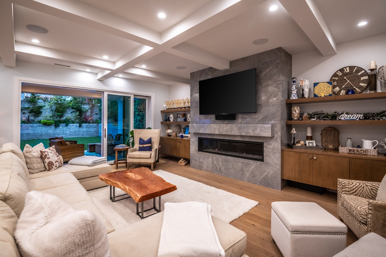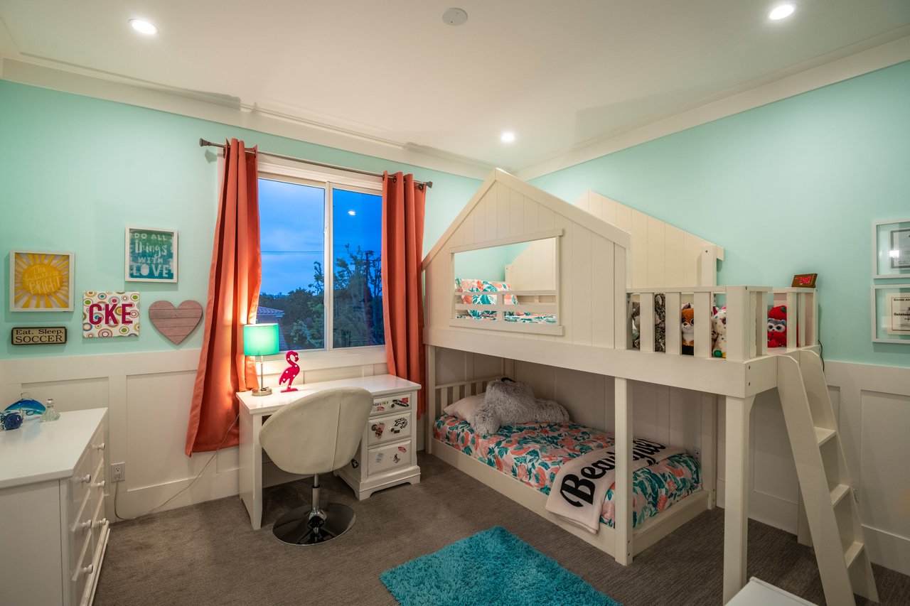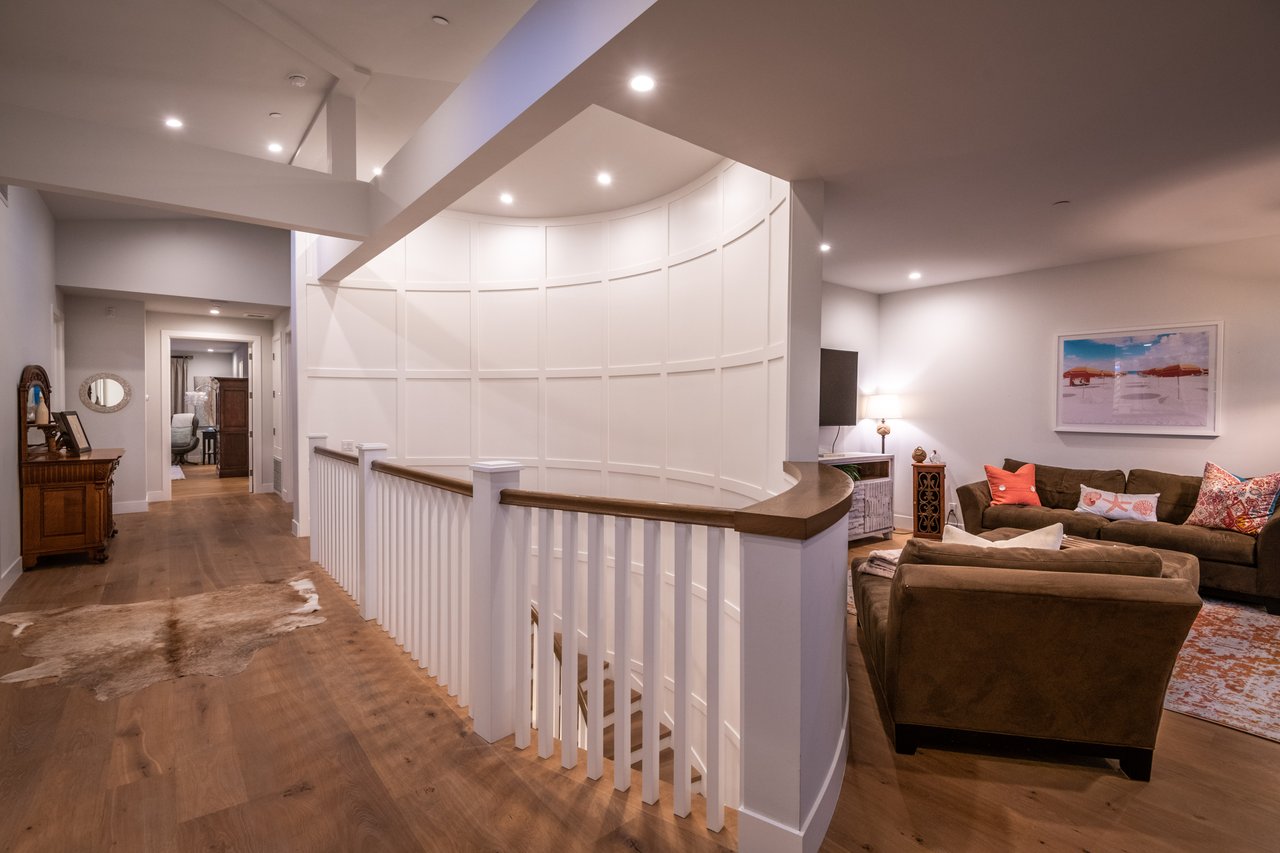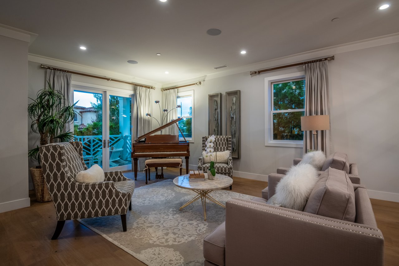 It’s stunning from the moment you see it, and it beats expectations as you go through it. The ceilings are high, the hallways are wide, the staircase is elegant and the rooms are spacious. Easily slide the floor to ceiling glass doors across to enjoy an exceptional experience of indoor-outdoor living. Each guest room has an ensuite bathroom. You have 2 choices for dining areas, and besides the main living room and family room, there is an additional living area upstairs. The master suite was quite thoughtfully designed with dual sided shower and his and her closets. View of your large backyard from the private master balcony. And, don’t miss the secluded front patio sitting area to watch the days go by.