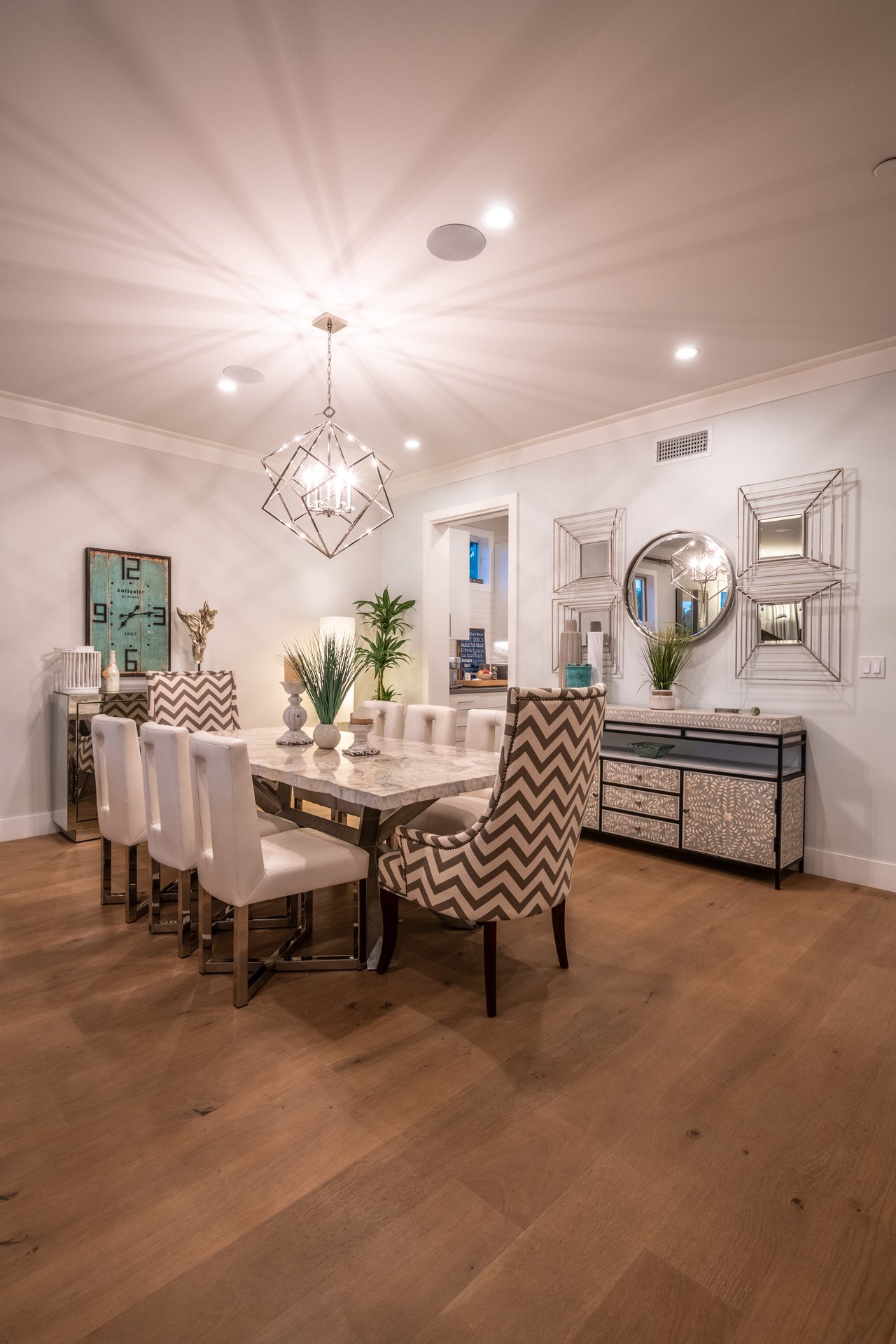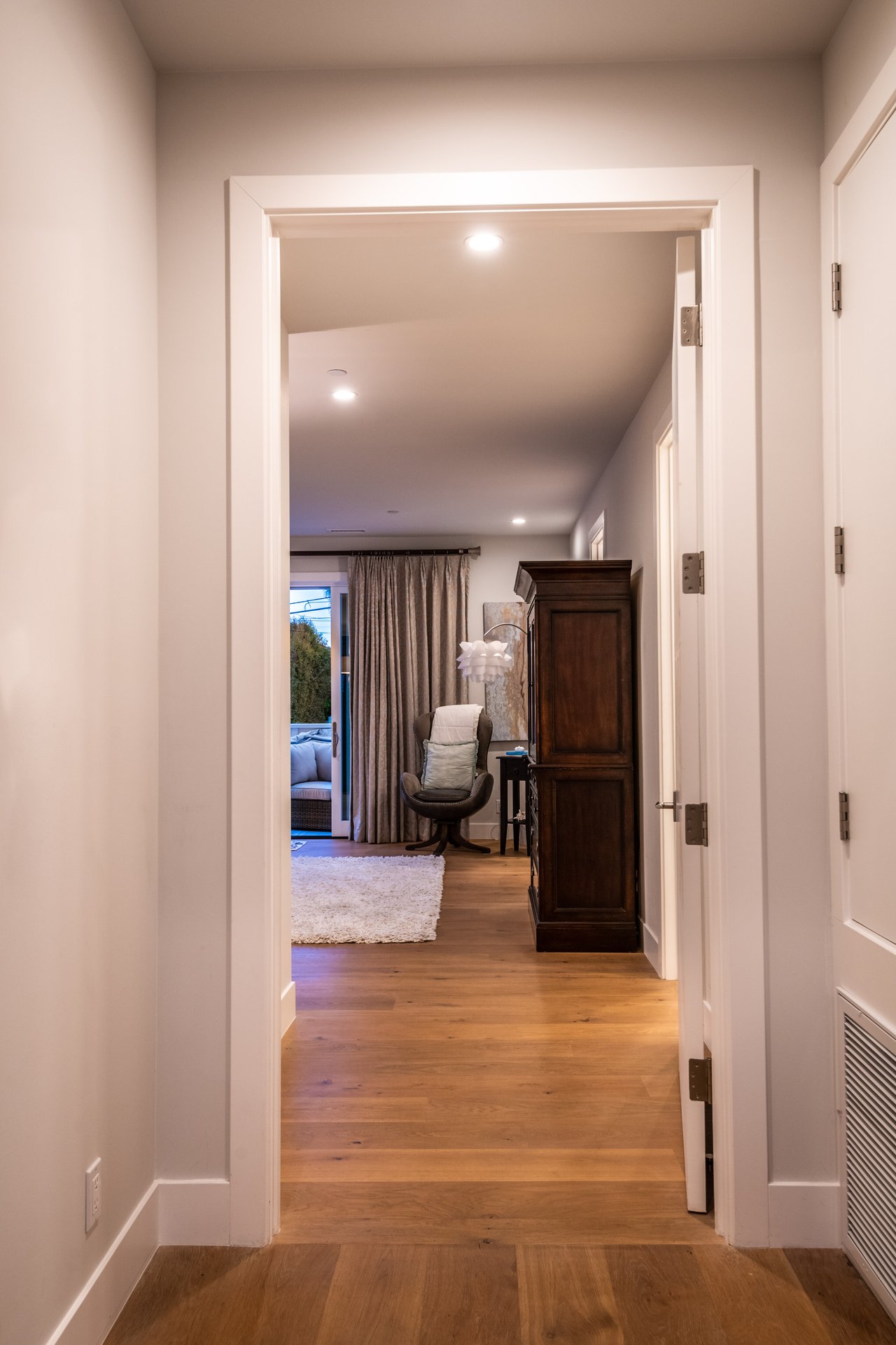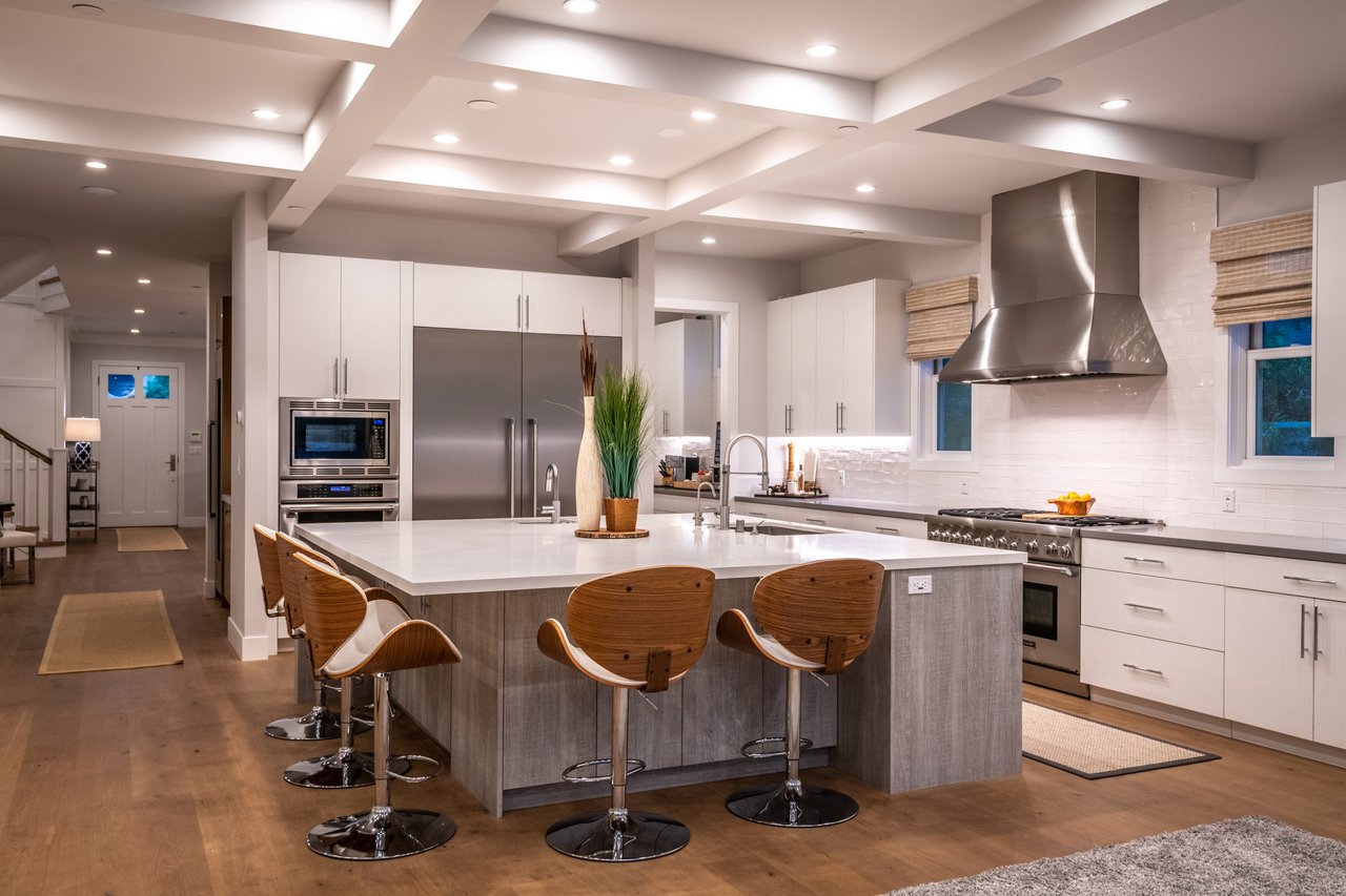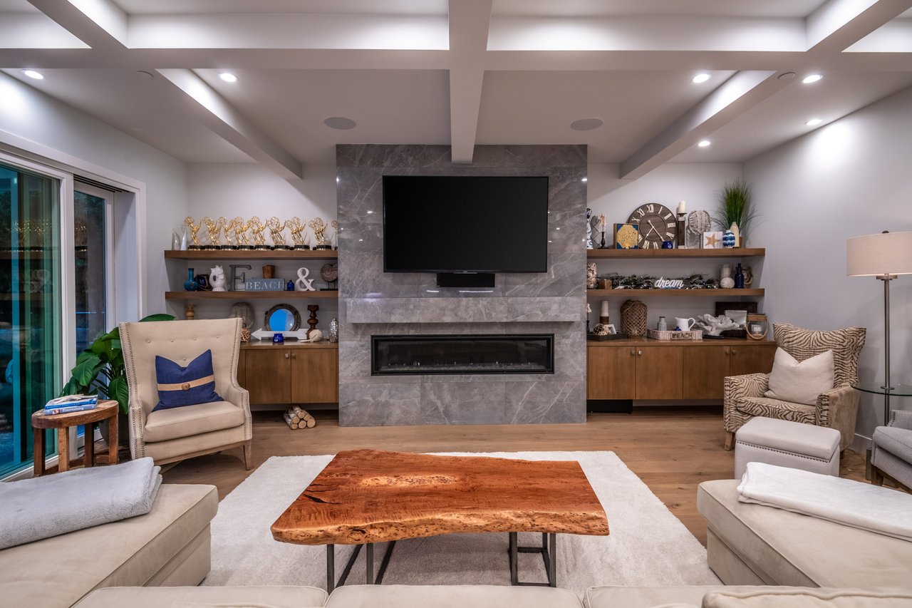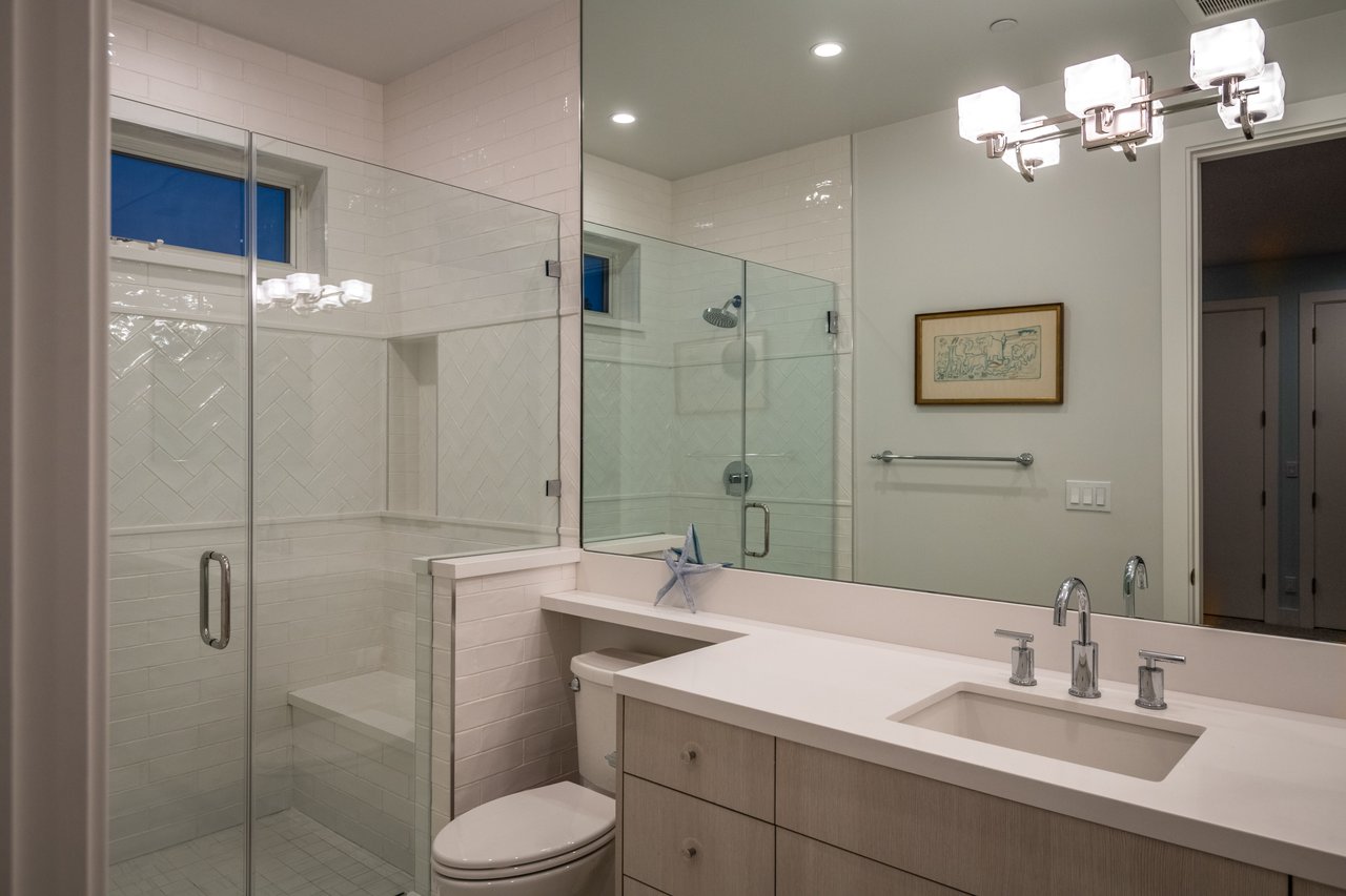 It’s stunning from the moment you see it, and it beats expectations as you go through it. The ceilings are high, the hallways are wide, the staircase is elegant and the rooms are spacious. Easily slide the floor to ceiling glass doors across to enjoy an exceptional experience of indoor-outdoor living. Each guest room has an ensuite bathroom. You have 2 choices for dining areas, and besides the main living room and family room, there is an additional living area upstairs. The master suite was quite thoughtfully designed with dual sided shower and his and her closets. View of your large backyard from the private master balcony. And, don’t miss the secluded front patio sitting area to watch the days go by.