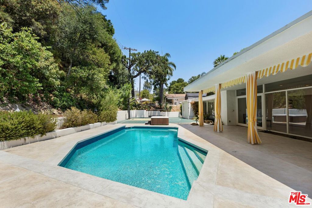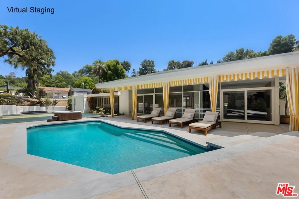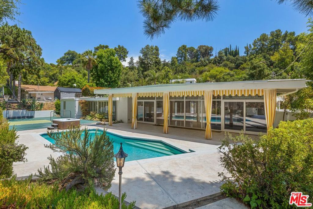 *OFFER DEADLINE is Sunday, August 3rd at 12PM* Situated on a primarily flat lot - 13,966 square feet - 15515 Hamner Drive offers one of the largest and most functional backyards in the neighborhood. Located in a quiet, residential enclave in the heart of Bel Air, this home blends Mid-Century Modern style with transitional Hollywood Regency elements, just moments from esteemed Roscomare Road Elementary School. Starting with a rare, elegant circular driveway, this estate property was ahead of its time, offering open concept living, architectural charm, indoor-outdoor flow and a lifestyle of prestige, privacy, and potential. Step into an enchanting backyard retreat featuring pool, pool deck with covered awning, sport court, and lush landscaping. With most of the living space looking out to the pool, the home offers unparalleled indoor-outdoor access via sliding doors creating effortless flow - perfect for both everyday comfort and seamless entertaining. The 4-bedroom, 3-bathroom layout spans 2,832 square feet and presents a remarkable opportunity to open living spaces further and reimagine the home to your taste. Spacious living, sizable bedrooms, and floor-to-ceiling glass windows looking out to expansive backyard make the potential of this home undeniable. With its generous lot size, adaptable footprint, prime location, circular drive perfect for family and guest vehicles, 15515 Hamner Drive is a rare and valuable opportunity for both homeowners and investors alike. Don't miss the chance to own one of the most desirable parcels in this peaceful, well-established Bel Air neighborhood. *See floor plan in photos.* Buyer to verify square footage and what renovations can or can't be done. Property being sold "as is."