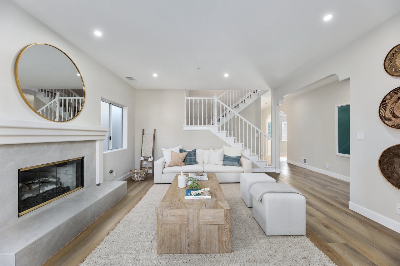 Recently renovated throughout, 1714 Marshallfield Lane #A has been meticulously curated to enhance everyday living. Upon entry, the front foyer welcomes you with double-height ceilings and a skylight that fills the space with natural light. To the right, the formal living room features an oversized window that brightens the room and flows seamlessly toward the kitchen. To the left of the foyer, the spacious family room offers a cozy fireplace and double glass doors leading to a large front terrace perfect for entertaining or relaxing. Toward the rear, the kitchen and dining areas pair effortlessly to create an inviting and functional space. The updated kitchen includes breakfast bar seating, a built-in wall oven, gas cooktop, and abundant natural light. Also on this level, find a powder room, laundry room, and a large storage closet, along with direct access to the two-car garage featuring built-in overhead storage. The front yard is fully fenced and turfed, offering a low-maintenance outdoor retreat. Ascending upstairs, the primary suite is thoughtfully positioned for privacy and impresses with its exceptional scale. The oversized suite showcases vaulted ceilings, a fireplace, and a charming window bench. The primary ensuite is equally generous, featuring dual vanities, ample storage, a large glass shower, and a spacious walk-in closet with custom built-ins. Also on the upper level are three additional bedrooms, one junior ensuite and two secondary bedrooms, all of which are generously sized. The junior suite offers vaulted ceilings, a fireplace, a private balcony overlooking the front of the home, and an ensuite bath with a glass-enclosed shower. The additional bedrooms feature vaulted ceilings, ample closets, and plentiful natural light. A full bathroom serves this level, complete with dual sinks, a separate soaking tub, and a glass shower. Additional highlights include new interior and exterior paint, brand new central air conditioning, recessed lighting, and new carpet throughout. Situated within the highly regarded Redondo Beach Unified School District [buyer to verify] and blending thoughtful design, modern updates, and generous scale, 1714 Marshallfield Lane #A offers an exceptional opportunity to enjoy refined coastal living in the heart of Redondo Beach.