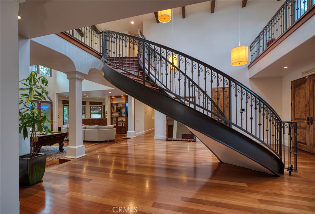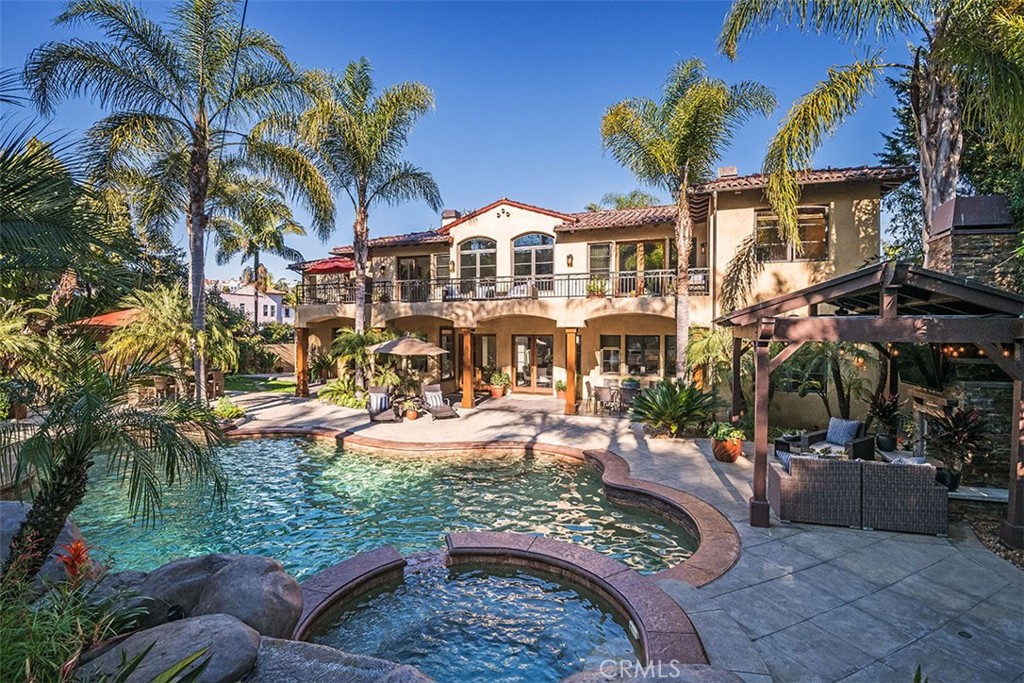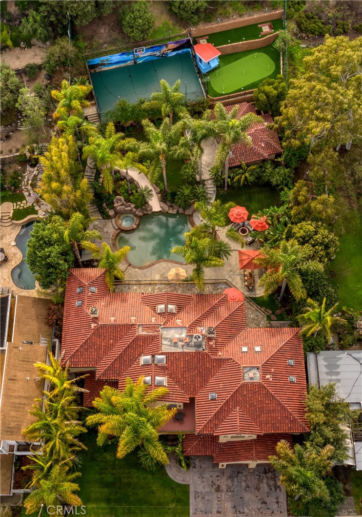 Nestled on the third largest lot in Hermosa Beach, this exclusive estate exudes an elevated atmosphere. Crafted in the style of a Tuscan compound, it seamlessly combines seclusion and practicality while being in close proximity to the mesmerizing waves of the Pacific Ocean. The main residence, featuring six bedrooms, epitomizes opulence and tranquility, equipped with cutting-edge technology such as an integrated Savant home automation system, movie theater, and a Tesla charging station bearing the signature of Elon Musk. Inside, the interiors are adorned with a 25-foot vaulted entrance, a gracefully curved staircase, expansive communal spaces, and a modern open-plan kitchen. Step outside, and you'll find an outdoor haven designed for entertainment. This area boasts not only a resort-style saltwater swimming pool resembling a tranquil lagoon but also a thrilling zip line for an added touch of adventure. Completing this outdoor paradise is a comfortable "living room" with a gas fire pit, a designated TV area with a fireplace, and a state-of-the-art 1,000 square foot sports court. A charming putting green awaits at the end of this outdoor oasis, providing the perfect space to practice your putting skills while enjoying the coastal ambiance. The guest retreat, nestled amidst lush tropical gardens, adds the final touch to this beachside villa, epitomizing the pinnacle of luxury living on the west coast.