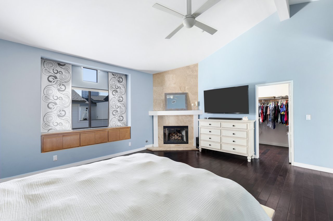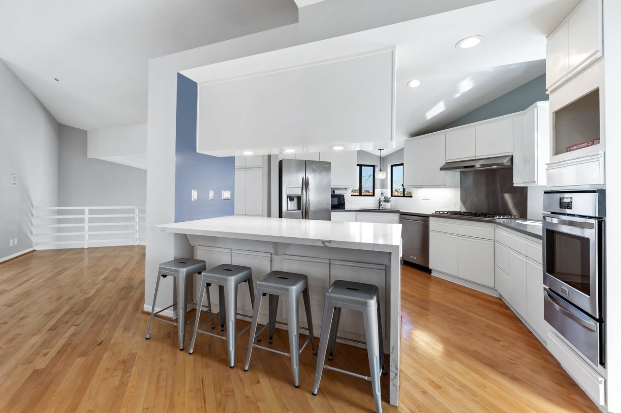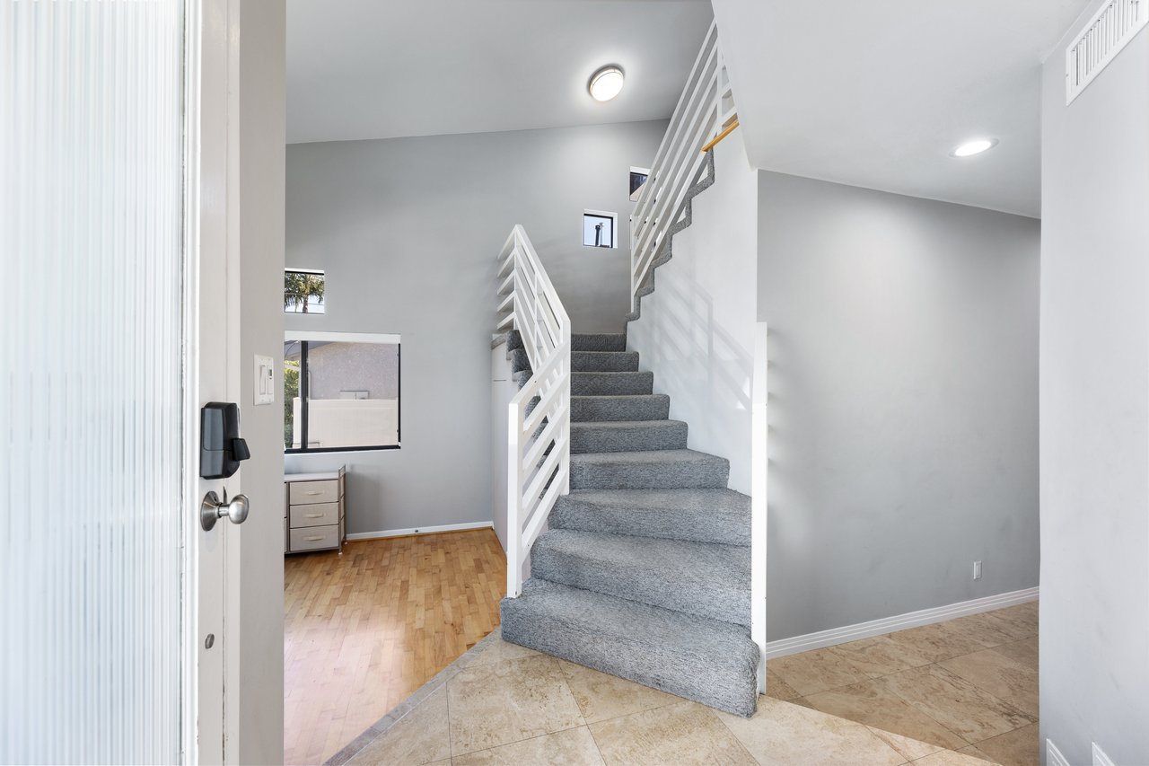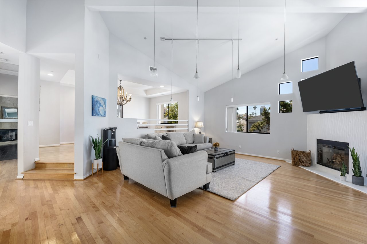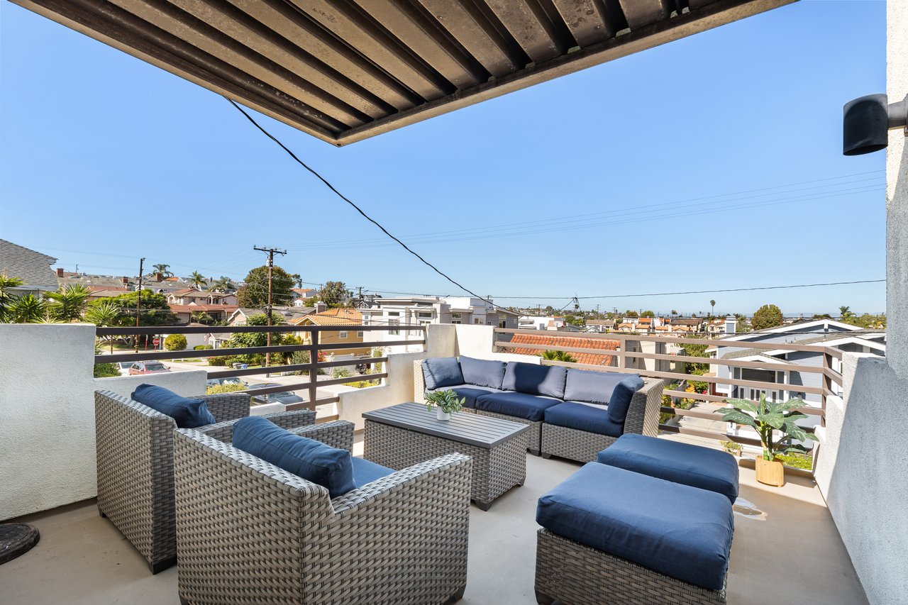 Located in one of Redondo Beach's most desirable neighborhoods, this front-unit contemporary townhome offers abundant natural light, thoughtful design, and exceptional indoor-outdoor living. Upon entry, you're welcomed into a bright foyer, where a sunken formal living room greets you with vaulted ceilings and an abundance of natural light. Currently utilized as a home office, this space offers the perfect setting for a formal sitting area or creative workspace. The first level hosts three generously sized bedrooms and a remodeled full bathroom with dual sinks and a glass-enclosed shower and tub. This level also provides direct access to the three-car attached garage, offering ample storage, as well as a laundry room with built-in cabinetry for added functionality. Ascending to the upper level, you're immediately met with vaulted ceilings, abundant sunlight, and a spacious open-concept layout ideal for everyday living and entertaining. The living room with fireplace flows seamlessly onto a large front terrace, extending the living space outdoors and overlooking expansive mountain views. The updated kitchen showcases quartz countertops, a center island with waterfall edge, stainless steel appliances (including a one-year-old dishwasher), and ample cabinetry. Adjacent to the kitchen, a second outdoor terrace offers the perfect spot for a BBQ or casual dining with its convenient proximity to the kitchen. A powder room on this level serves guests comfortably. Also found on the upper level, the primary suite is positioned for ultimate privacy. Oversized in scale, it features a fireplace, dual walk-in closets, and a private terrace. The ensuite bathroom includes dual sinks, a soaking tub, ample cabinetry, and a glass-enclosed shower. Additional highlights include a tankless water heater, furnace, and air conditioning (all newly installed approximately four years ago) and a coveted location within the award-winning Redondo Beach Unified School District, including Jefferson Elementary (buyer to verify). Blending contemporary design, bright and airy spaces, thoughtful updates, and unmatched scale, 1908 Belmont Lane #A captures the ideal balance of comfort, convenience, and California coastal charm.