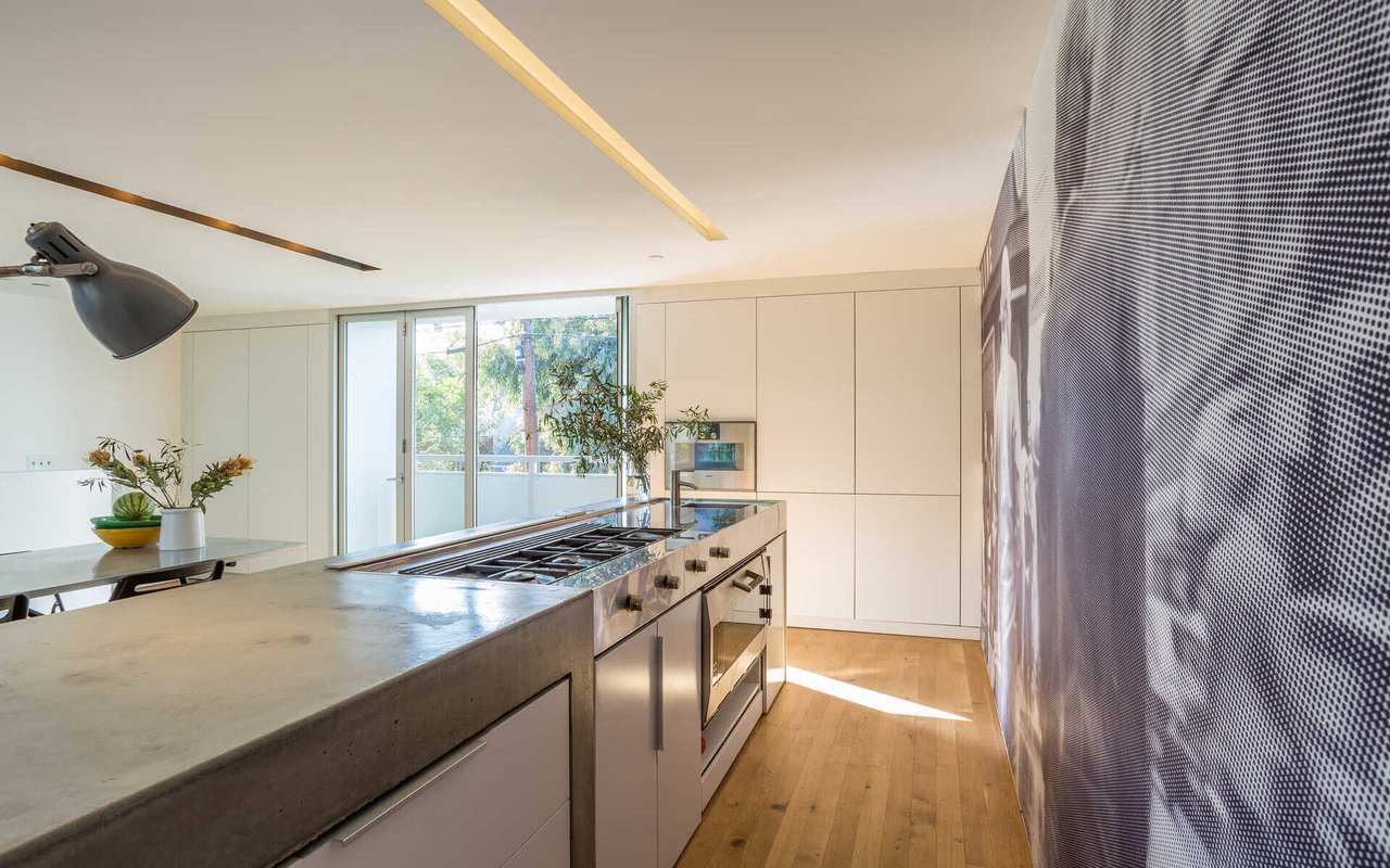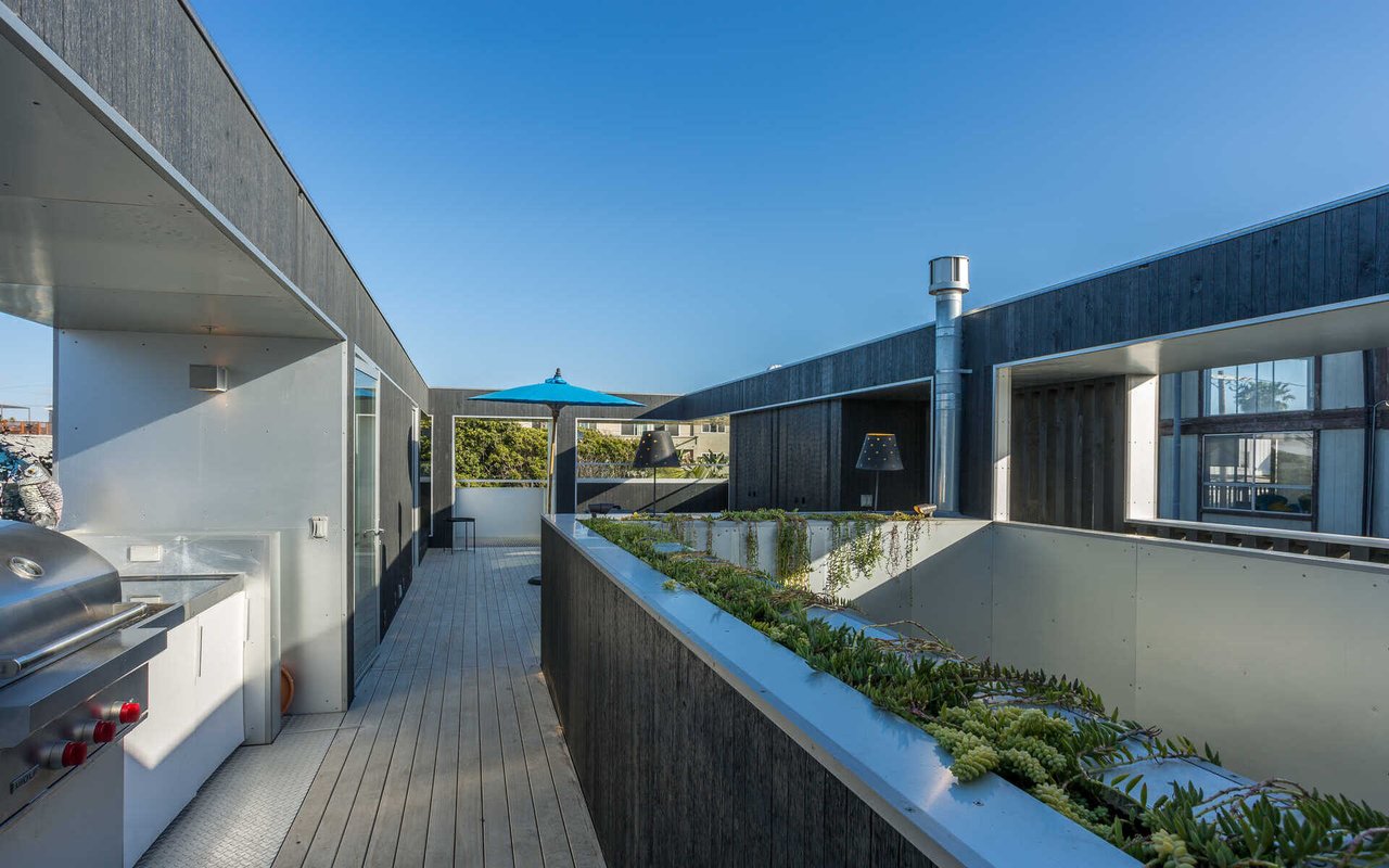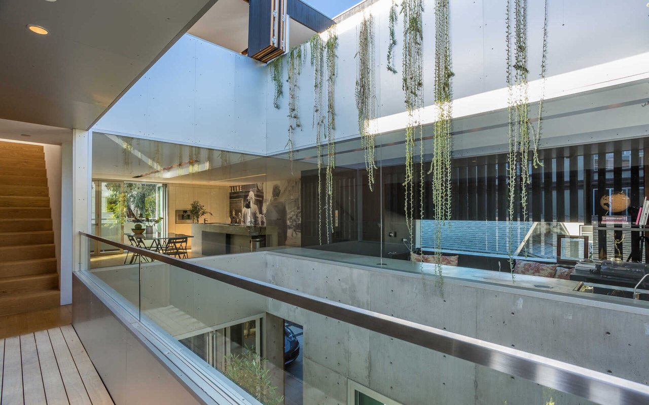 This modern architectural gem in the heart of Venice exquisitely emphasizes indoor and outdoor living, less than a block from the sand and sea. Envisioned by world-renowned U.K architect firm S U H U H, the living spaces feature walls of glass that open to the leafy streetscapes, multiple balconies and ocean views while maintaining a sense of privacy. The home is positioned around an interior, open-air courtyard, with glass walls fostering a visual connection throughout. The great room showcases an industrial-chic aesthetic, sunken living room with fireplace, concrete bar above the courtyard and a chef's Bulthaup kitchen with Gaggenau ovens and Miele appliances. All 3 bedrooms feature ensuite baths with glass showers or soaking tubs. The ultimate amenity for entertaining, the rooftop living area boasts a BBQ kitchen, dining terrace and views to the Pacific. Featuring a garden patio and parking for 3 cars, the unique residence is situated moments from the beach, canals and restaurants.