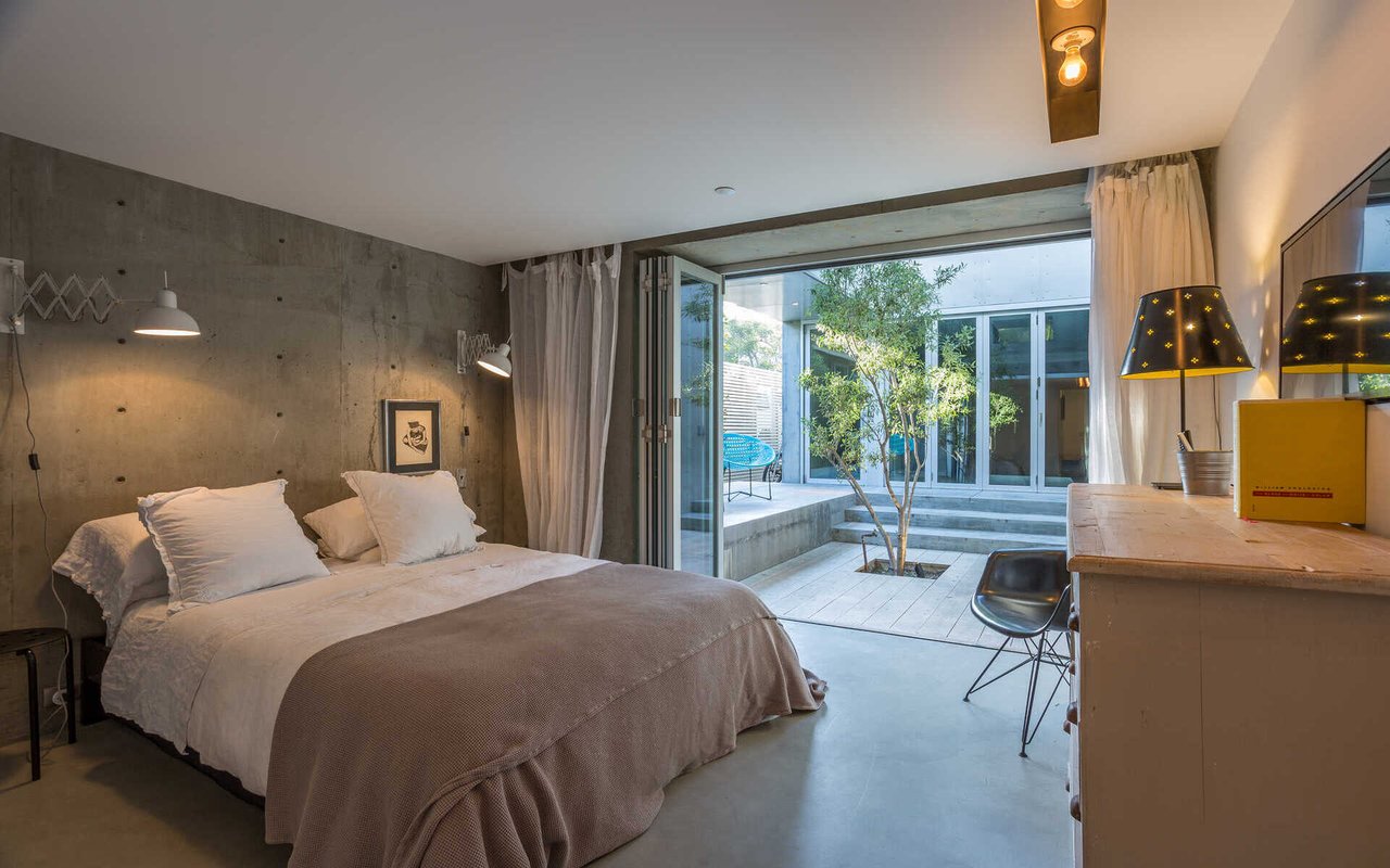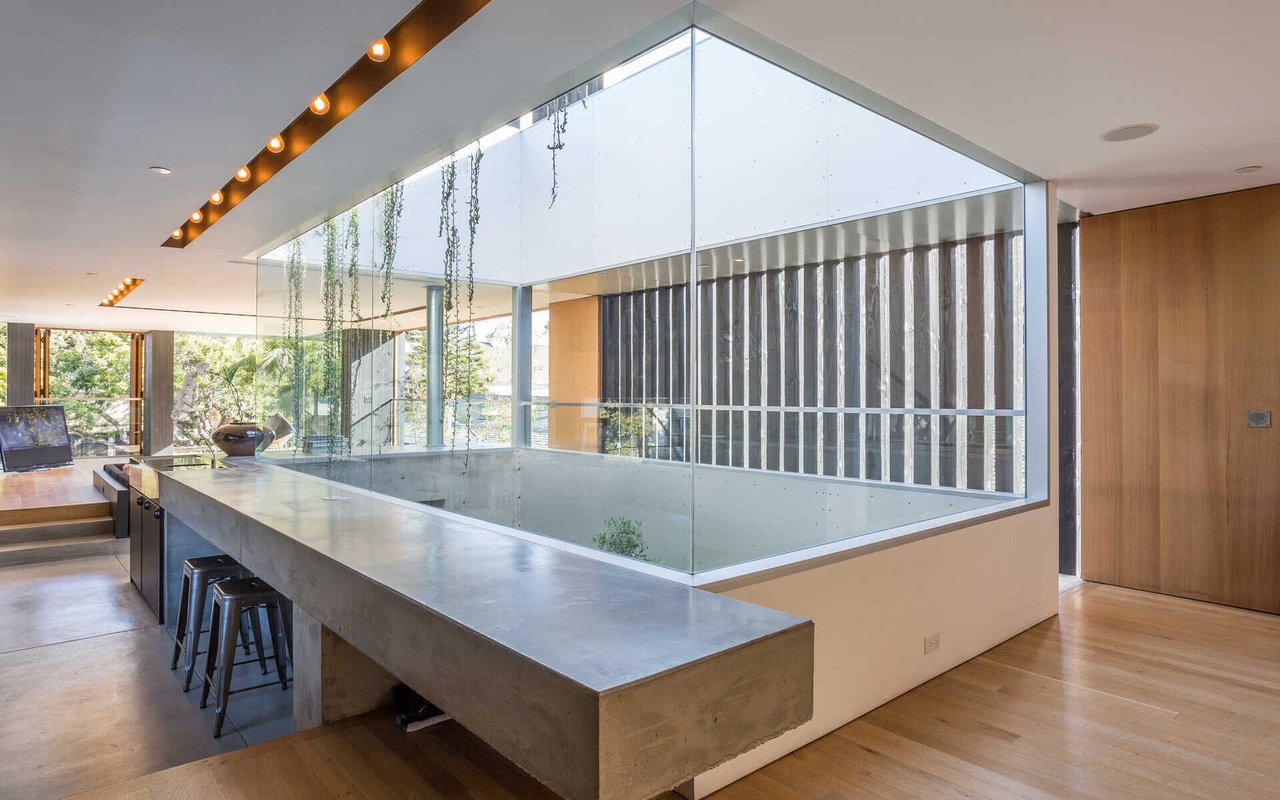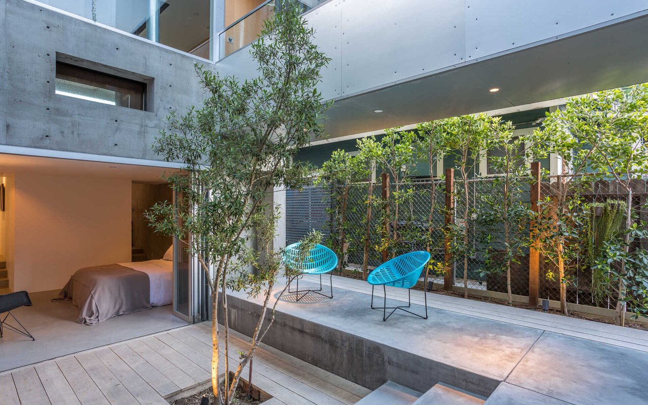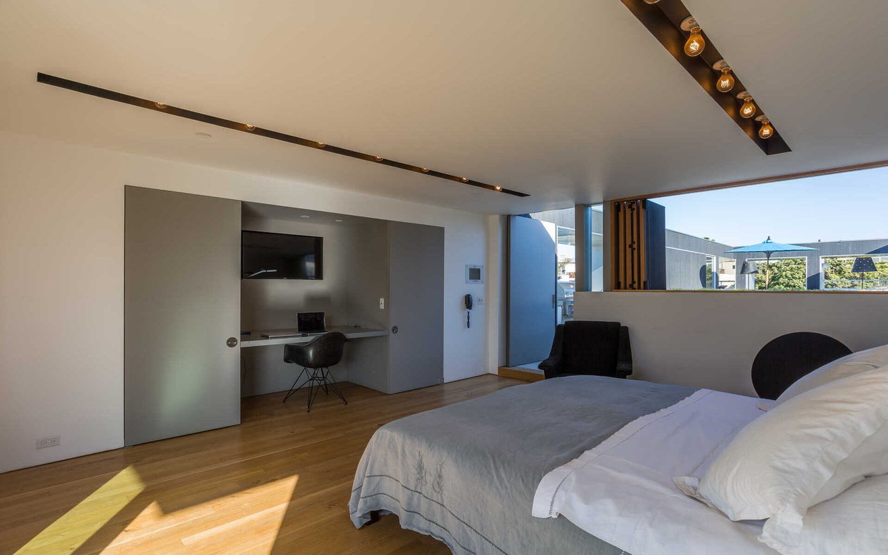 This modern architectural gem in the heart of Venice exquisitely emphasizes indoor and outdoor living, less than a block from the sand and sea. Envisioned by world-renowned U.K architect firm S U H U H, the living spaces feature walls of glass that open to the leafy streetscapes, multiple balconies and ocean views while maintaining a sense of privacy. The home is positioned around an interior, open-air courtyard, with glass walls fostering a visual connection throughout. The great room showcases an industrial-chic aesthetic, sunken living room with fireplace, concrete bar above the courtyard and a chef's Bulthaup kitchen with Gaggenau ovens and Miele appliances. All 3 bedrooms feature ensuite baths with glass showers or soaking tubs. The ultimate amenity for entertaining, the rooftop living area boasts a BBQ kitchen, dining terrace and views to the Pacific. Featuring a garden patio and parking for 3 cars, the unique residence is situated moments from the beach, canals and restaurants.