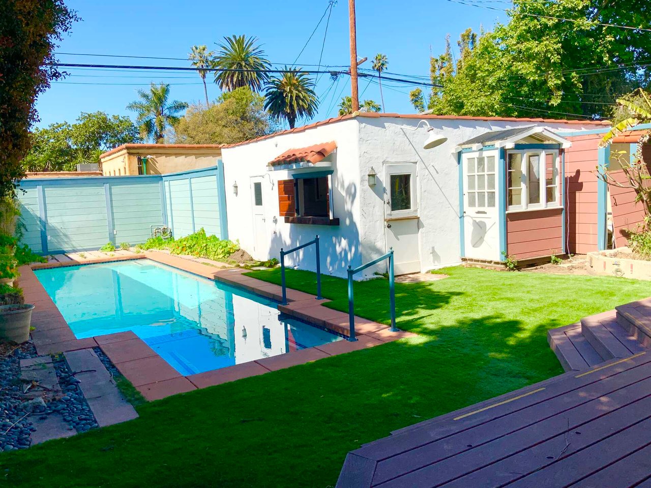 This newly constructed luxury 'smart home,' conceived by Anchorstone Properties and designer Joanna Leon, offers an oversized pivot door that steps into an airy, spacious room with wide planked oak floors, countless custom features, view of new pool and kitchen with custom built-in cabinets, Subzero refrigerator and Wolf range. Pass through the dining room and head to the sleek, modern kitchen which seamlessly flows into the family room and backyard via vanishing sliding glass doors that practically open up the entire wall to the grass area with large pool and converted garage beyond. All upstairs bedrooms are precisely placed in separate corners of the house. Primary bedroom has oversized bathroom plus two separate walk-in closets. A true gem located in the heart of Venice.