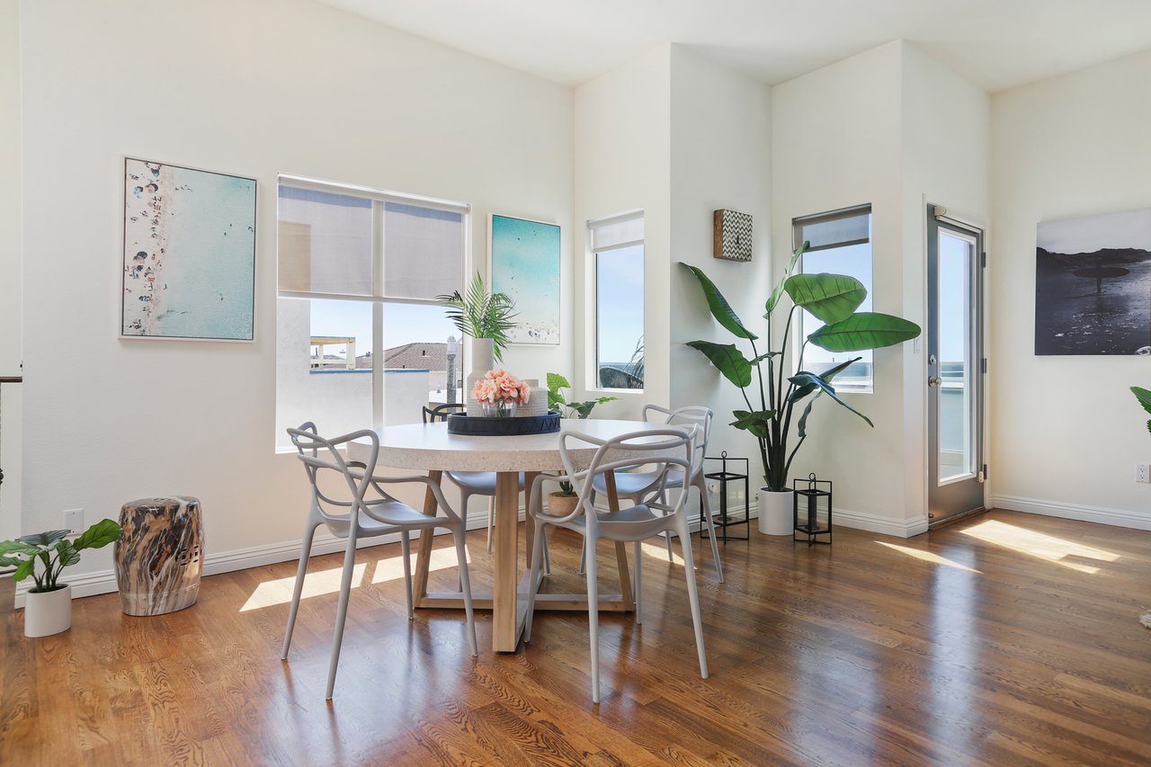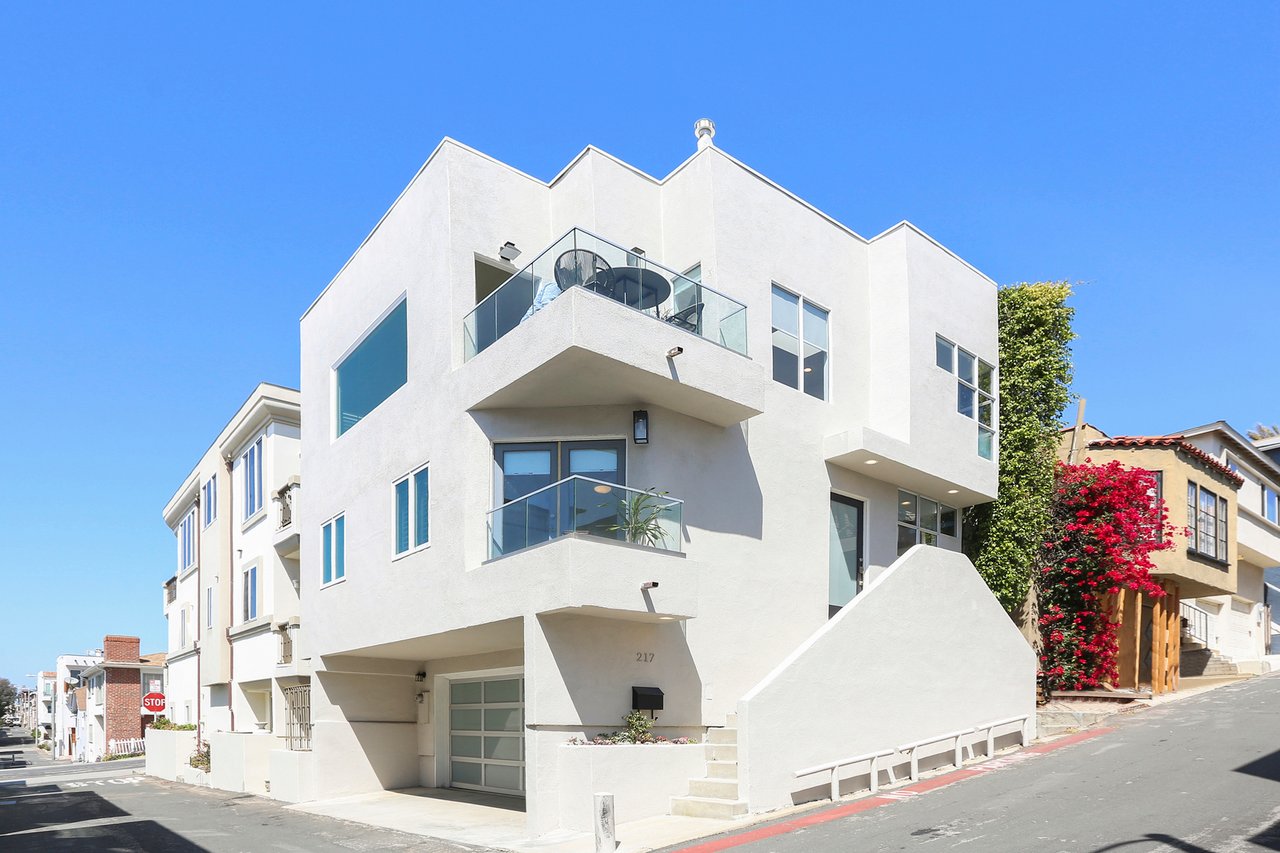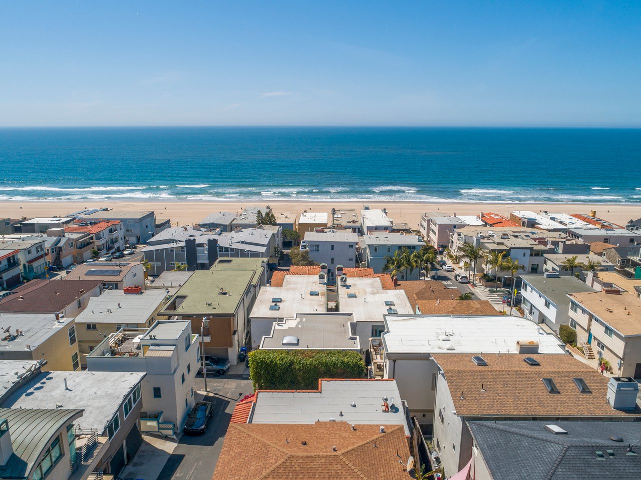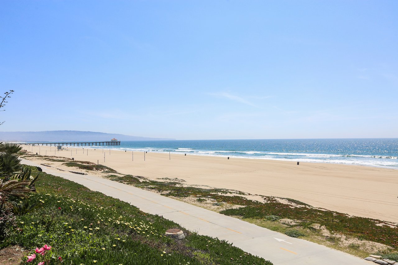 The perfect corner lot location located in one of the quietest areas of the entire sand section where valuations range from $3MM to $16MM. This residence features a large picture window and balcony with sit-down Pacific Ocean views just 2 blocks from the beach. Its bedrooms both have en-suite baths and the master suite features an outdoor balcony allowing for luxurious indoor-outdoor living. The floor plan allows for plenty of direct and ambient light during the day. High-end amenities offered are the hardwood floors, stainless steel appliances, travertine stone, plantation shutters, glass garage door and more. Located west of Highland with direct garage entry where you can come home and leave the keys because everything you need for beach living is within close proximity.