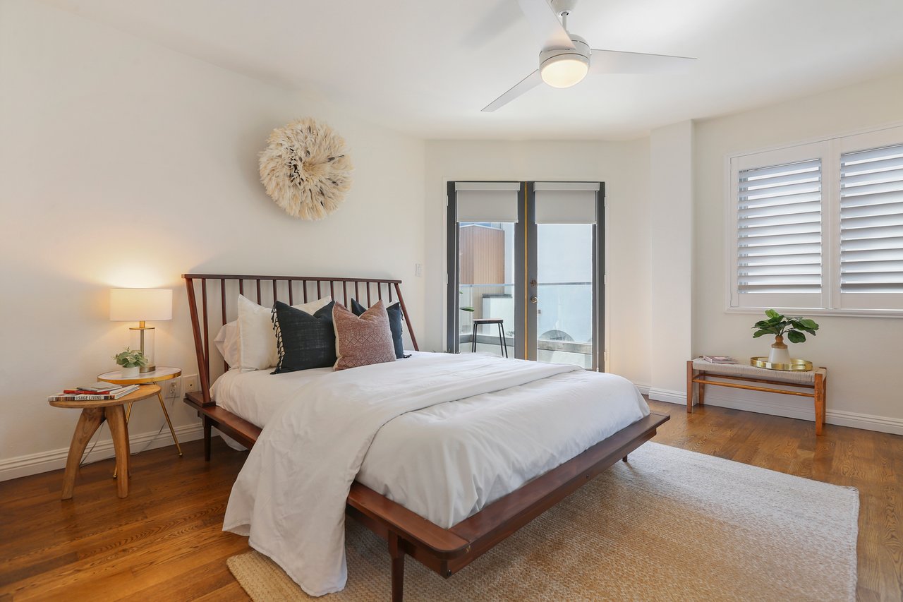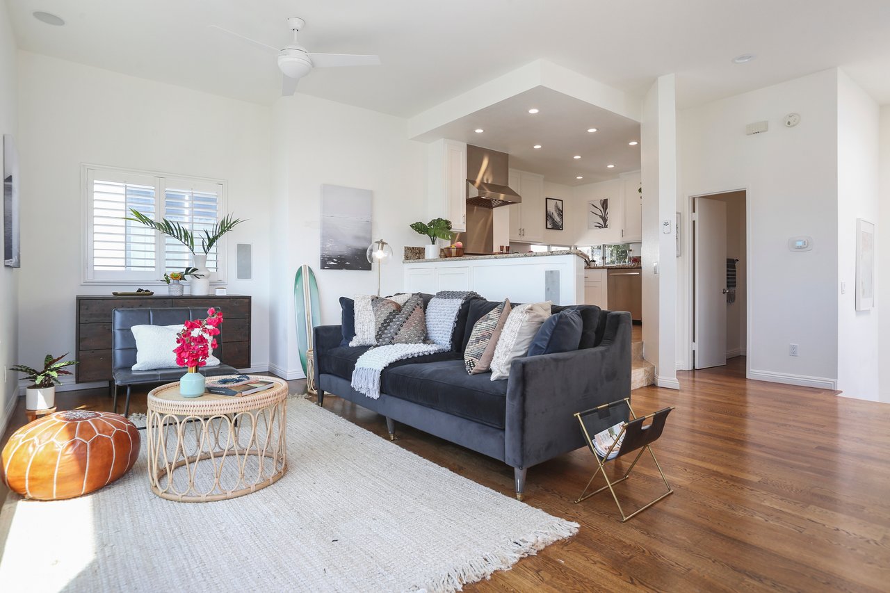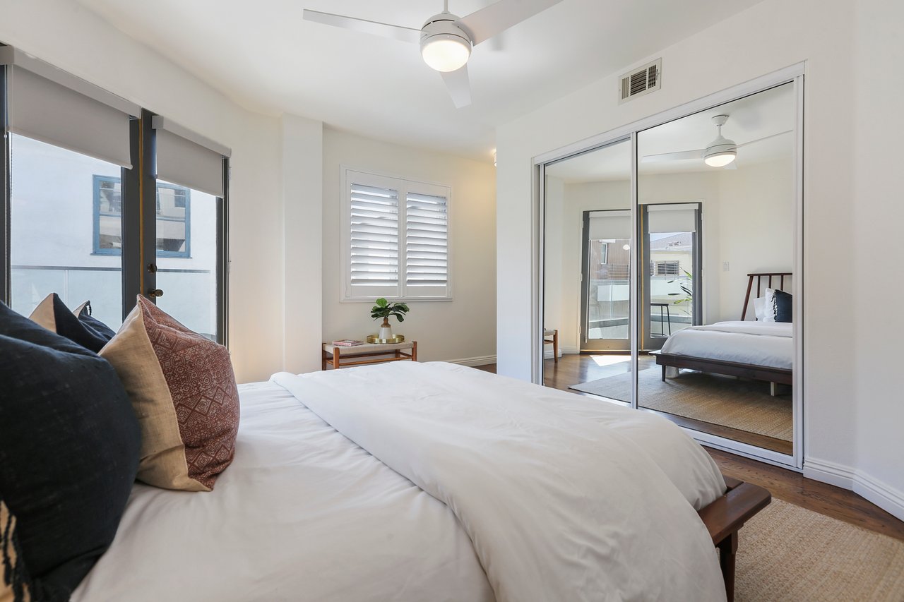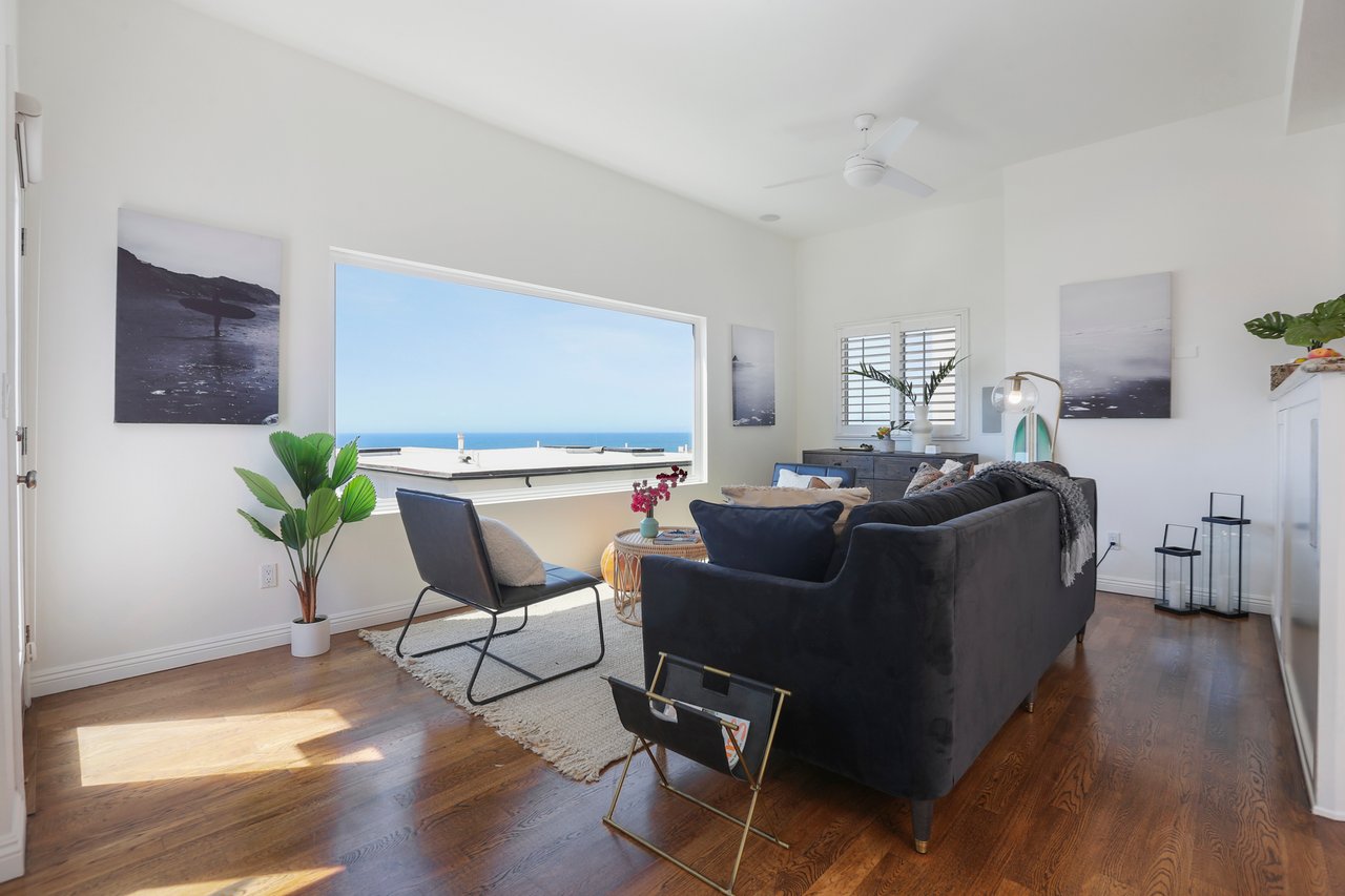 The perfect corner lot location located in one of the quietest areas of the entire sand section where valuations range from $3MM to $16MM. This residence features a large picture window and balcony with sit-down Pacific Ocean views just 2 blocks from the beach. Its bedrooms both have en-suite baths and the master suite features an outdoor balcony allowing for luxurious indoor-outdoor living. The floor plan allows for plenty of direct and ambient light during the day. High-end amenities offered are the hardwood floors, stainless steel appliances, travertine stone, plantation shutters, glass garage door and more. Located west of Highland with direct garage entry where you can come home and leave the keys because everything you need for beach living is within close proximity.