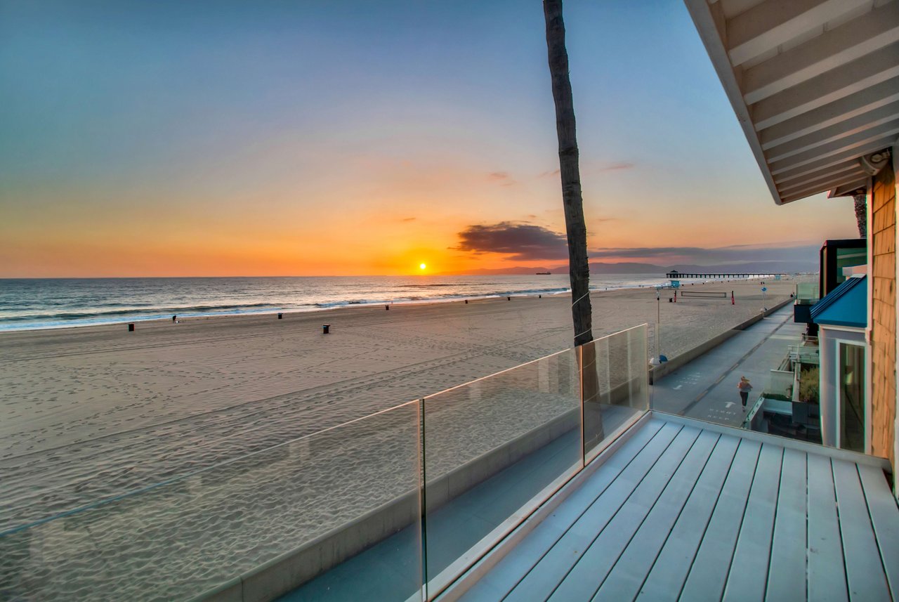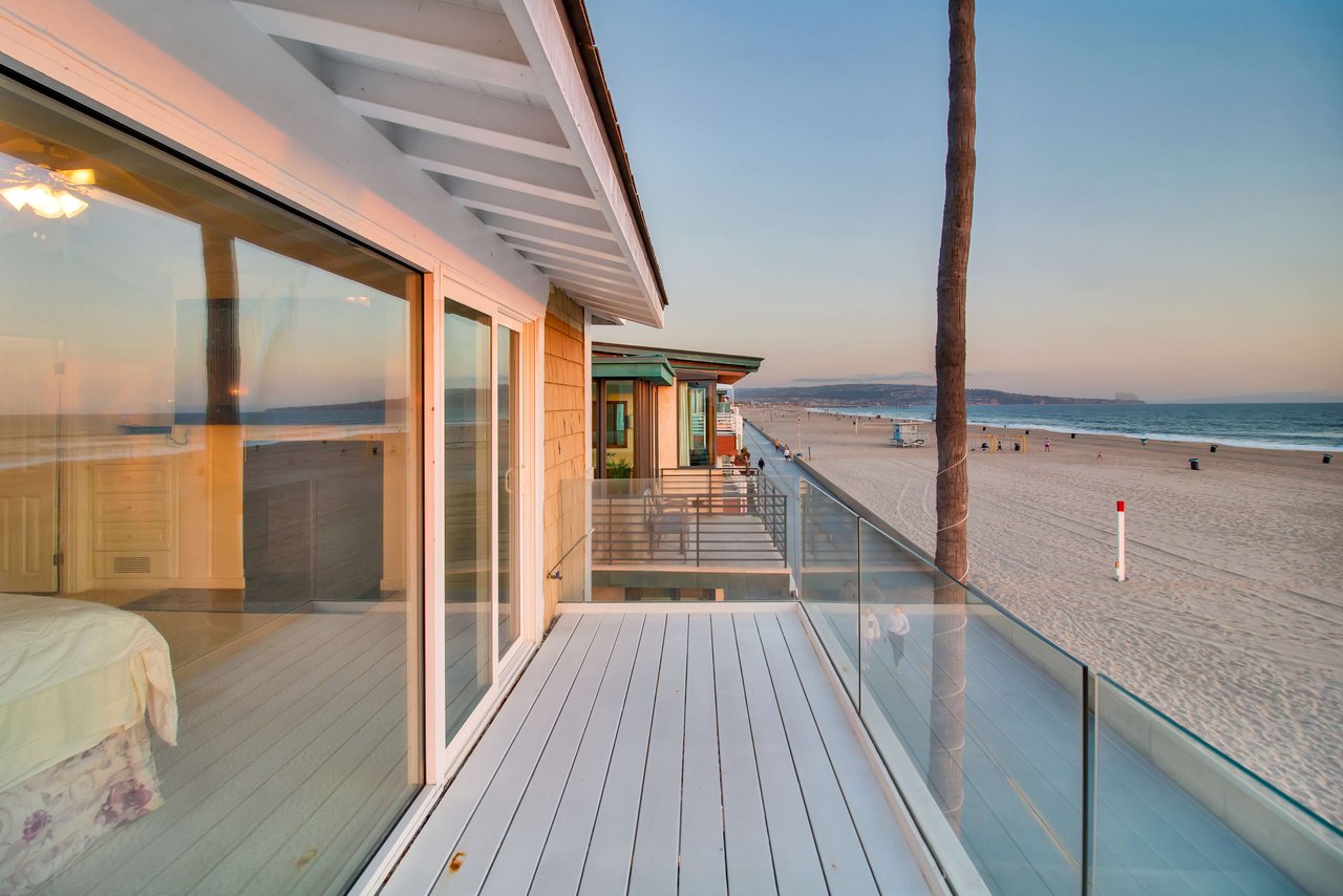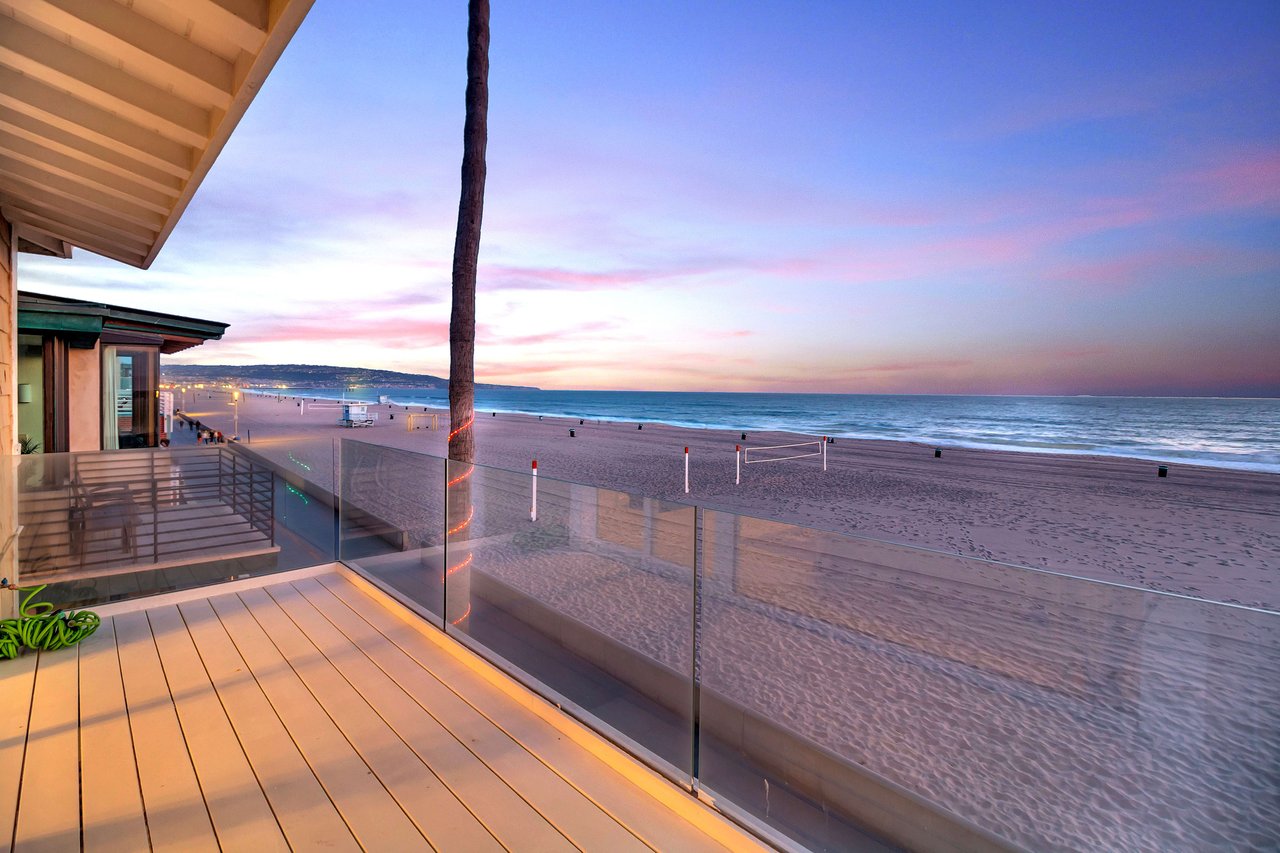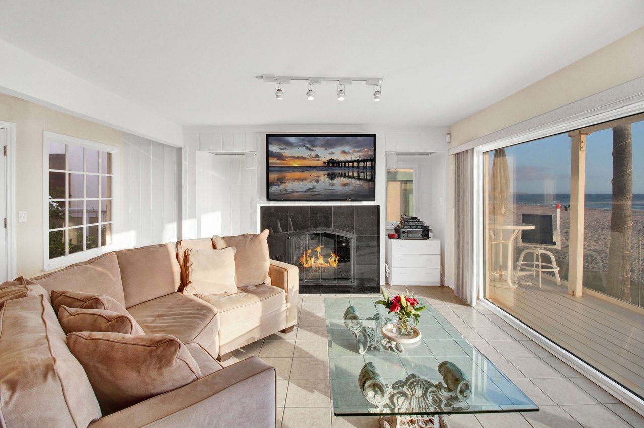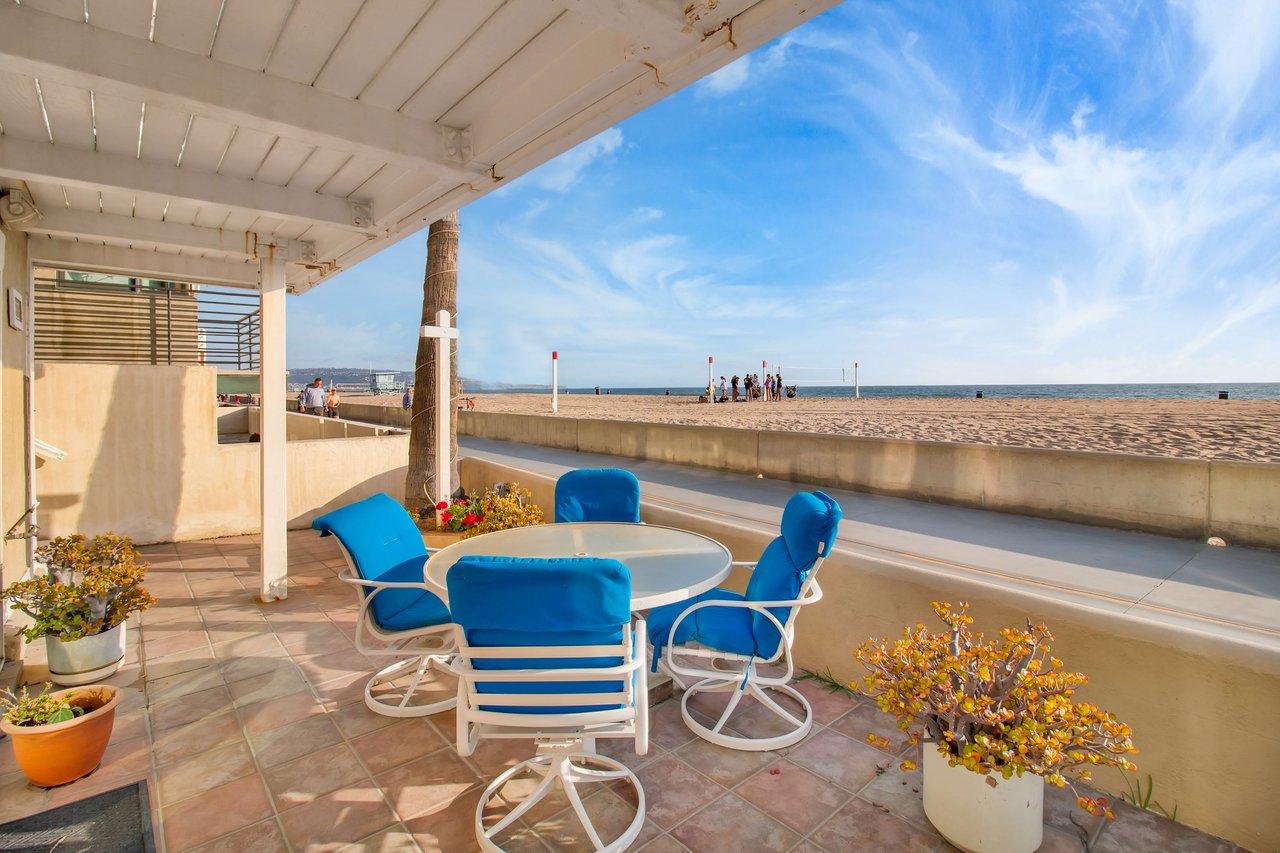 Located right on the sand in the highly desirable North Hermosa Shakespeare Beach Tract, this stunning home offers unparalleled value with its prime north location and versatile lot. Enjoy breathtaking ocean views from the entry level and the upstairs floor. The bright and sunny entry level includes a living room with fireplace, spacious balcony, bar area, kitchen, dining room, powder room and laundry. The 2-car garage with extra living space and outdoor patio complete this level. Upstairs, the primary suite faces the ocean so you look out past the balcony with glass railings to the ocean. Beyond the suite is a family room and two additional bedrooms with adjoining bathroom. Below on the beach level is a studio with living area, kitchenette, bathroom and shower, and its own private patio a few feet from the sand. Don't miss out on this rare opportunity to own a property in one of the best locations on the Hermosa Beach Strand with endless potential.
