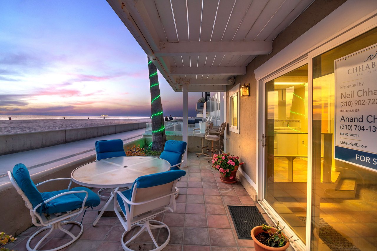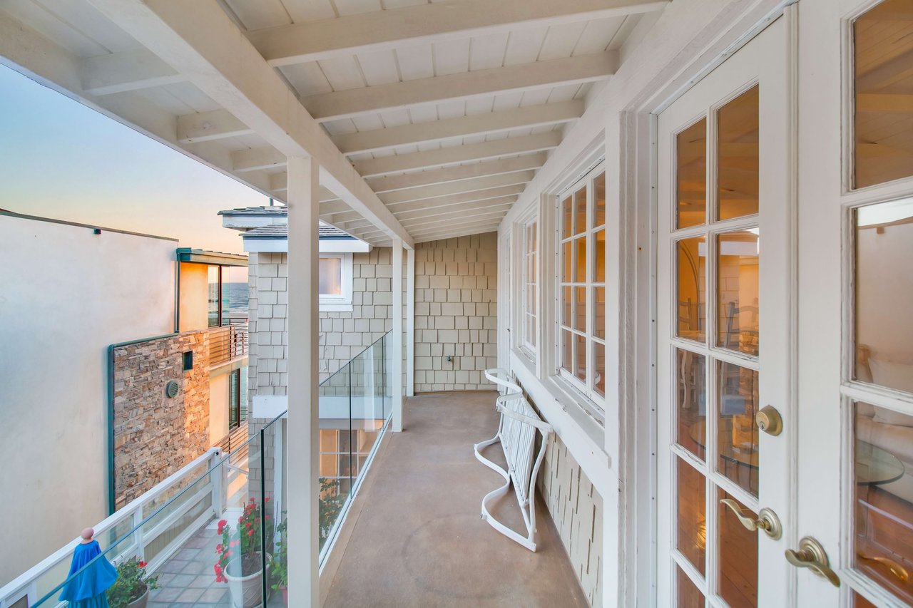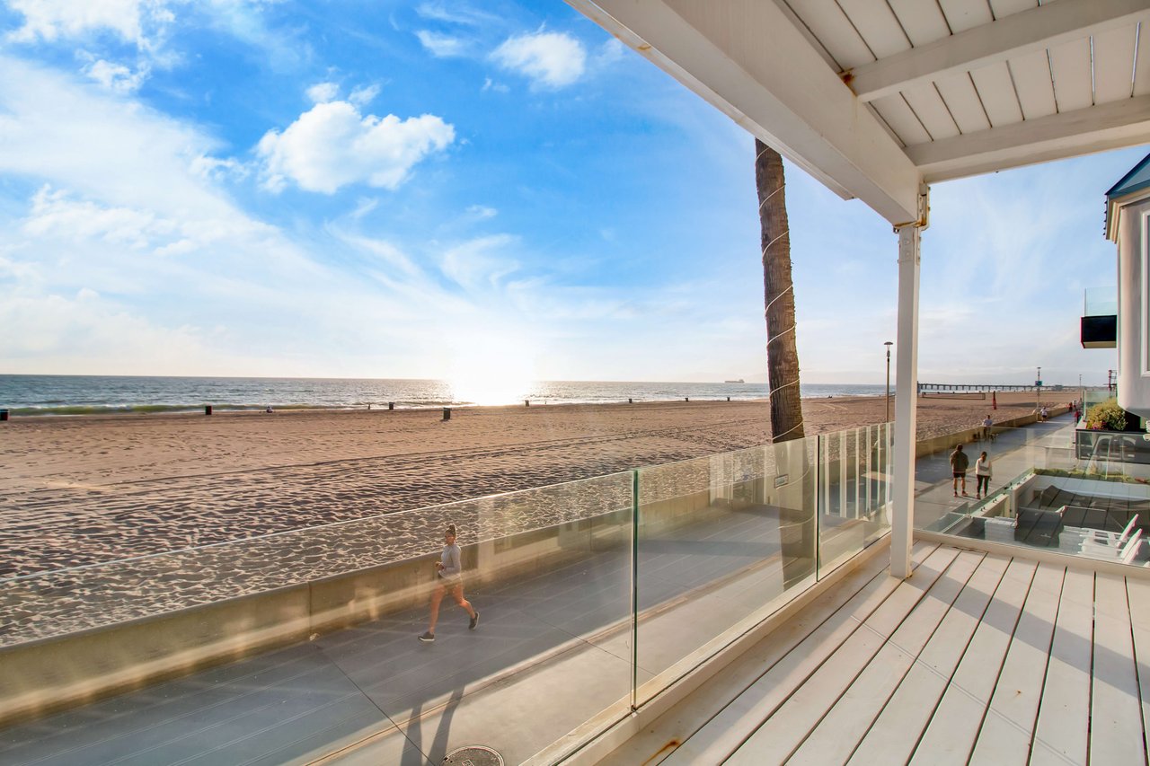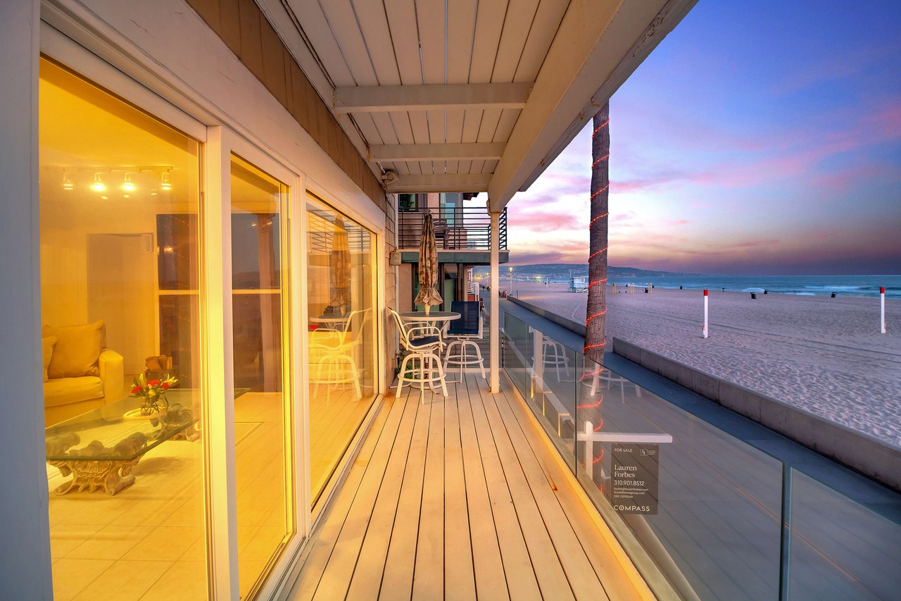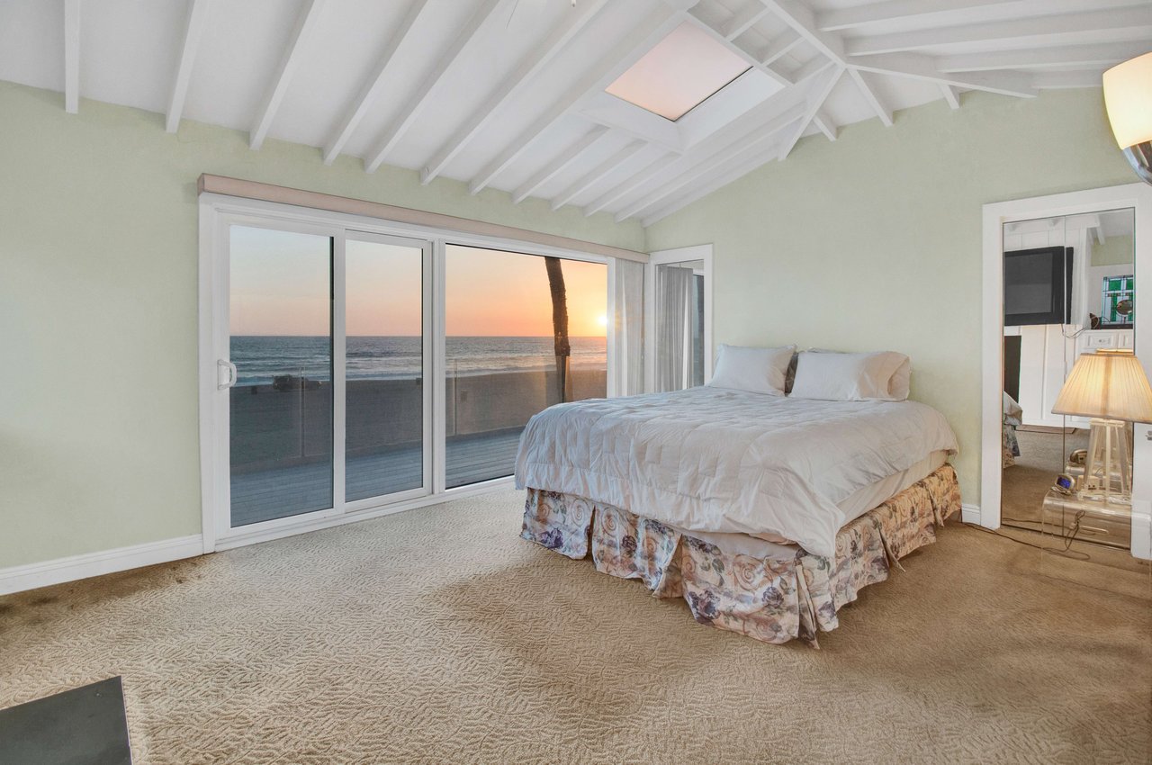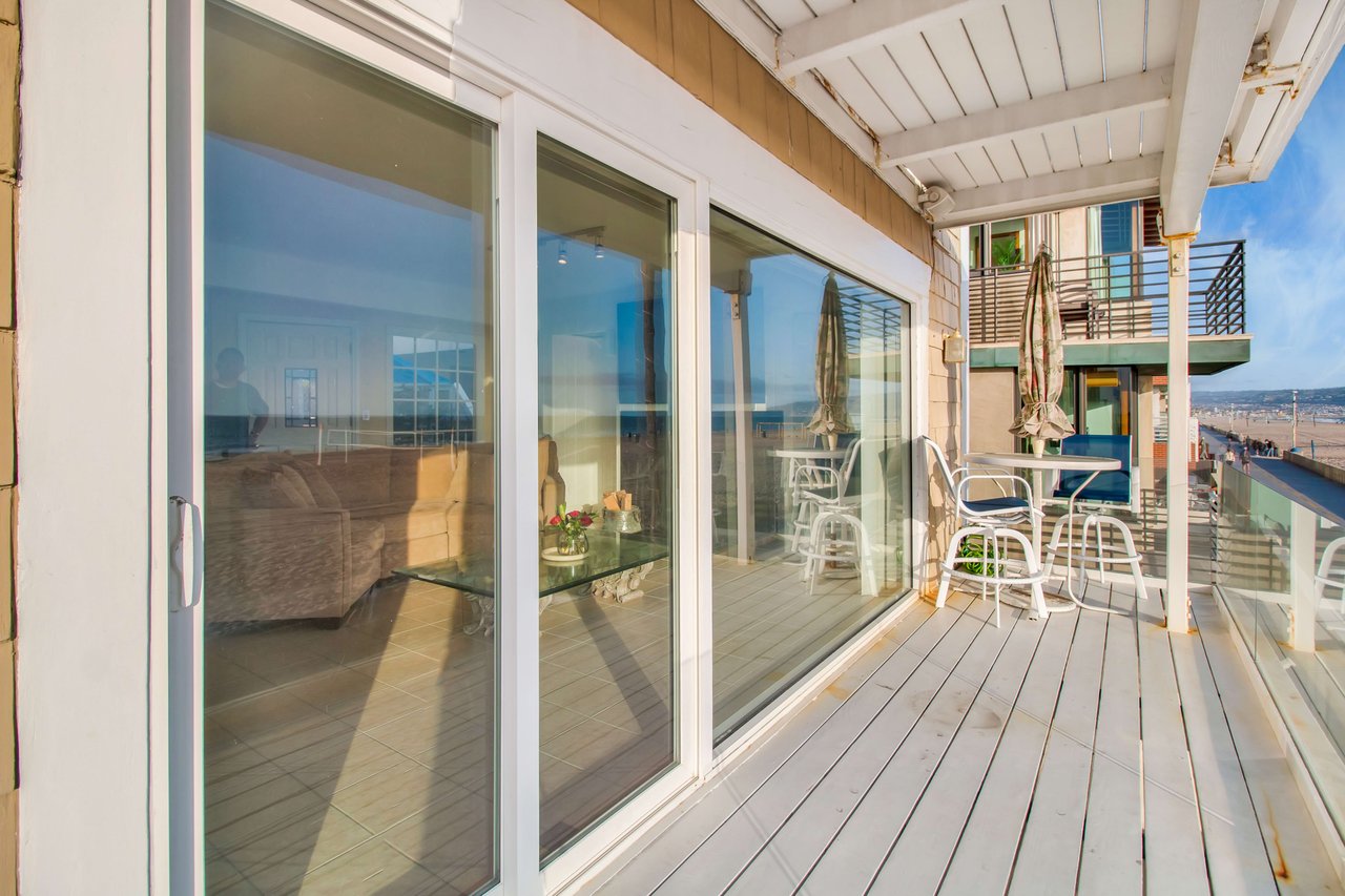 Located right on the sand in the highly desirable North Hermosa Shakespeare Beach Tract, this stunning home offers unparalleled value with its prime north location and versatile lot. Enjoy breathtaking ocean views from the entry level and the upstairs floor. The bright and sunny entry level includes a living room with fireplace, spacious balcony, bar area, kitchen, dining room, powder room and laundry. The 2-car garage with extra living space and outdoor patio complete this level. Upstairs, the primary suite faces the ocean so you look out past the balcony with glass railings to the ocean. Beyond the suite is a family room and two additional bedrooms with adjoining bathroom. Below on the beach level is a studio with living area, kitchenette, bathroom and shower, and its own private patio a few feet from the sand. Don't miss out on this rare opportunity to own a property in one of the best locations on the Hermosa Beach Strand with endless potential.