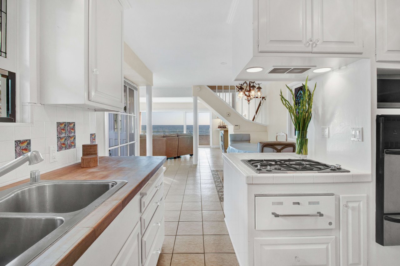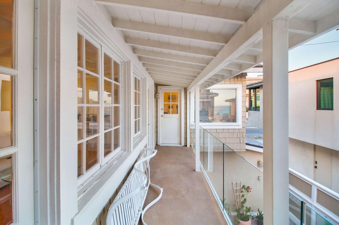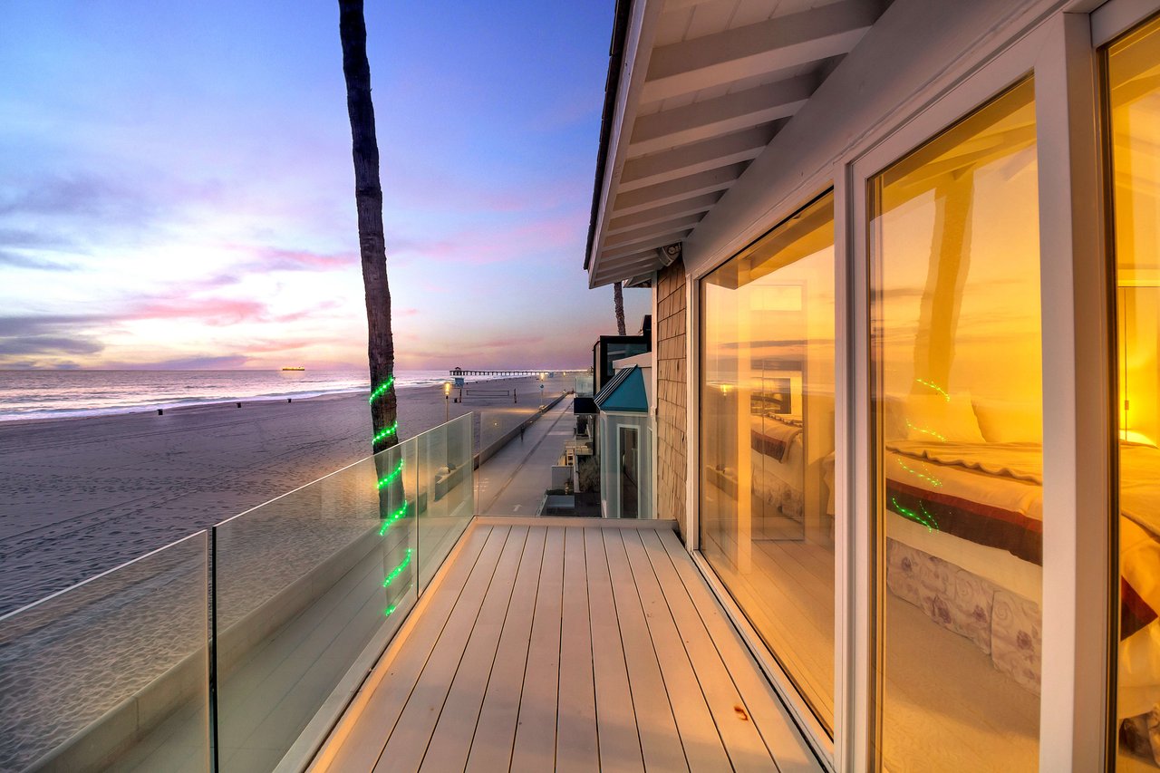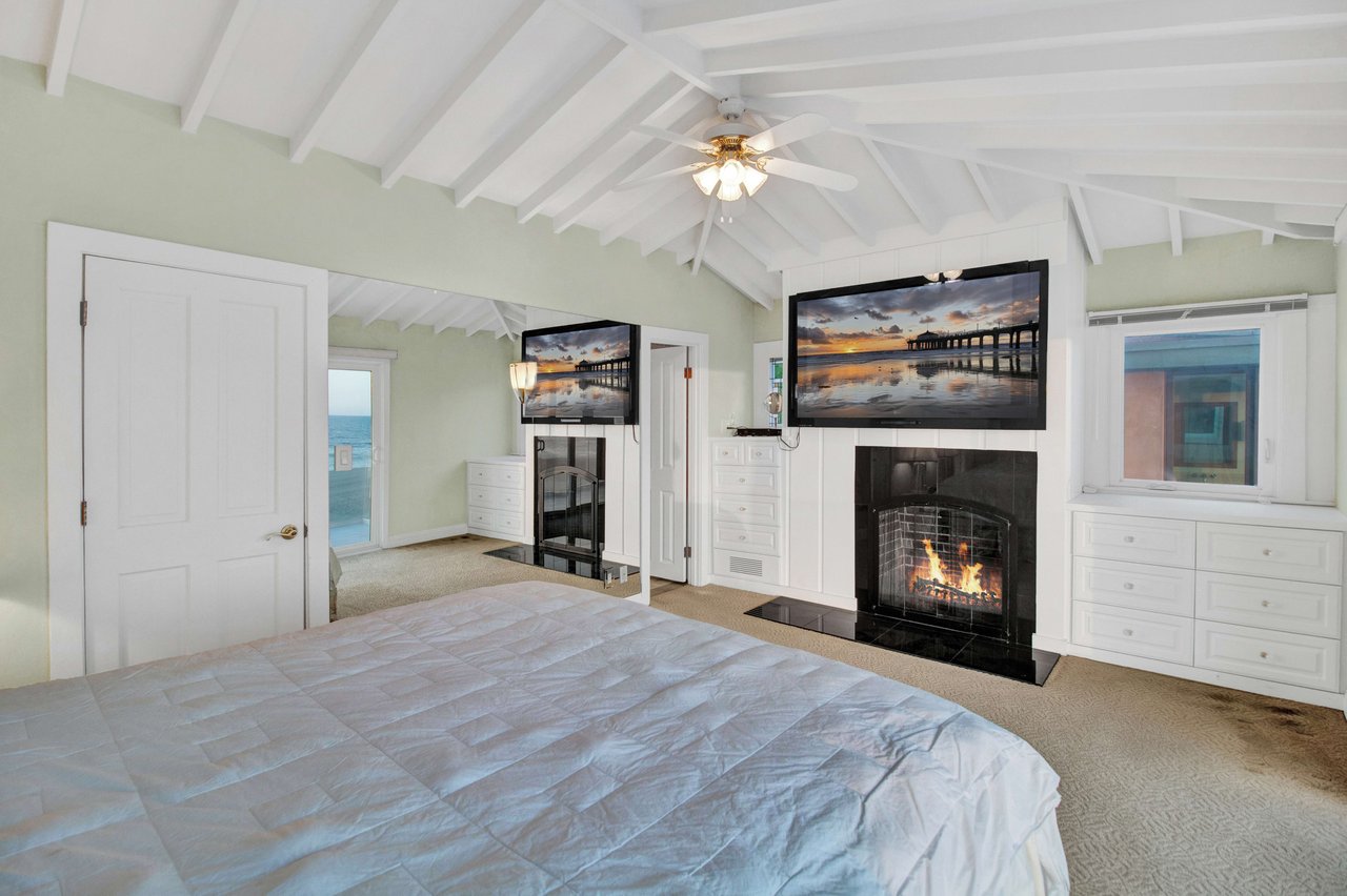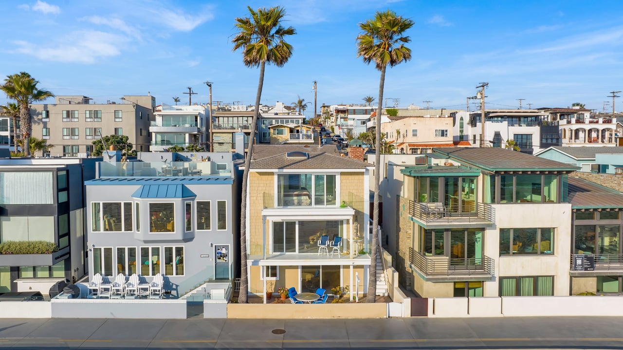 Located right on the sand in the highly desirable North Hermosa Shakespeare Beach Tract, this stunning home offers unparalleled value with its prime north location and versatile lot. Enjoy breathtaking ocean views from the entry level and the upstairs floor. The bright and sunny entry level includes a living room with fireplace, spacious balcony, bar area, kitchen, dining room, powder room and laundry. The 2-car garage with extra living space and outdoor patio complete this level. Upstairs, the primary suite faces the ocean so you look out past the balcony with glass railings to the ocean. Beyond the suite is a family room and two additional bedrooms with adjoining bathroom. Below on the beach level is a studio with living area, kitchenette, bathroom and shower, and its own private patio a few feet from the sand. Don't miss out on this rare opportunity to own a property in one of the best locations on the Hermosa Beach Strand with endless potential.
