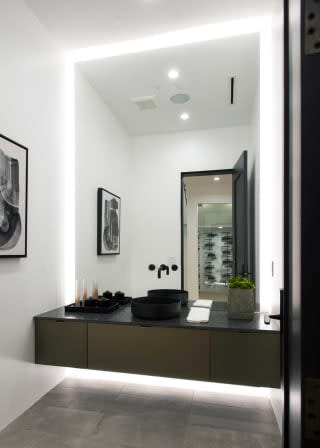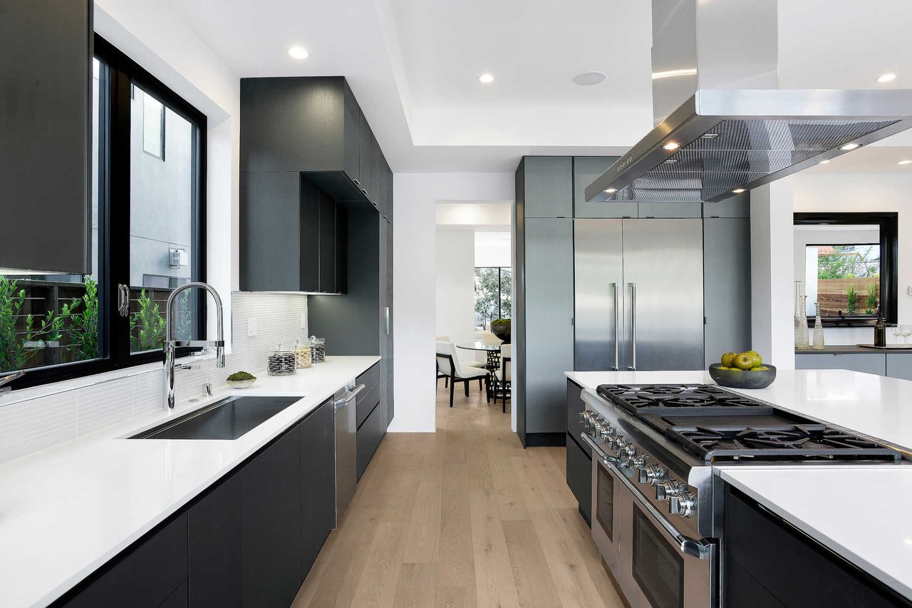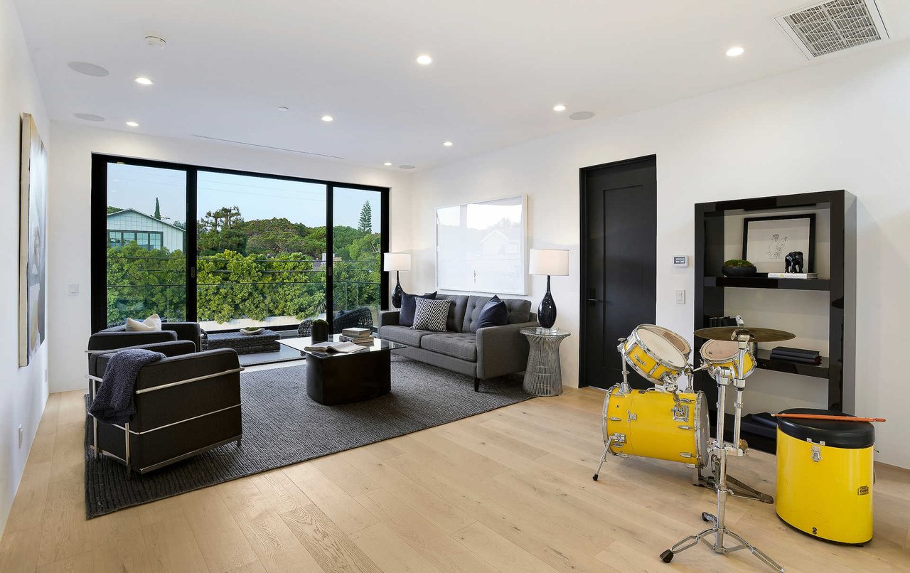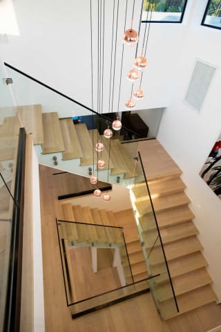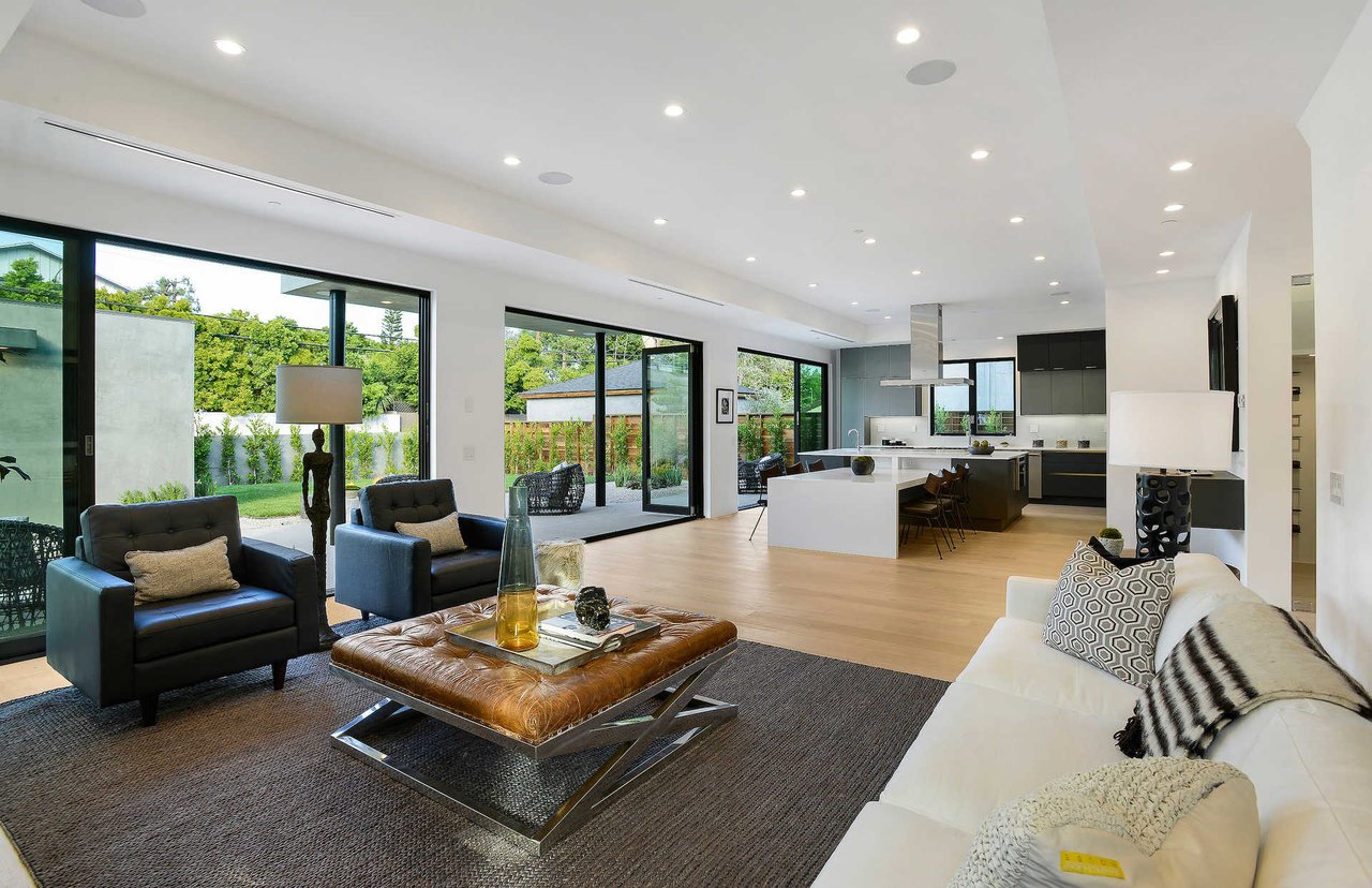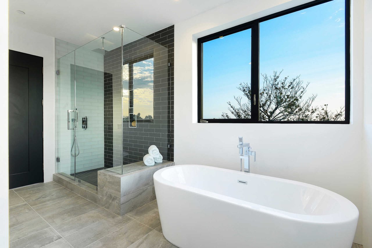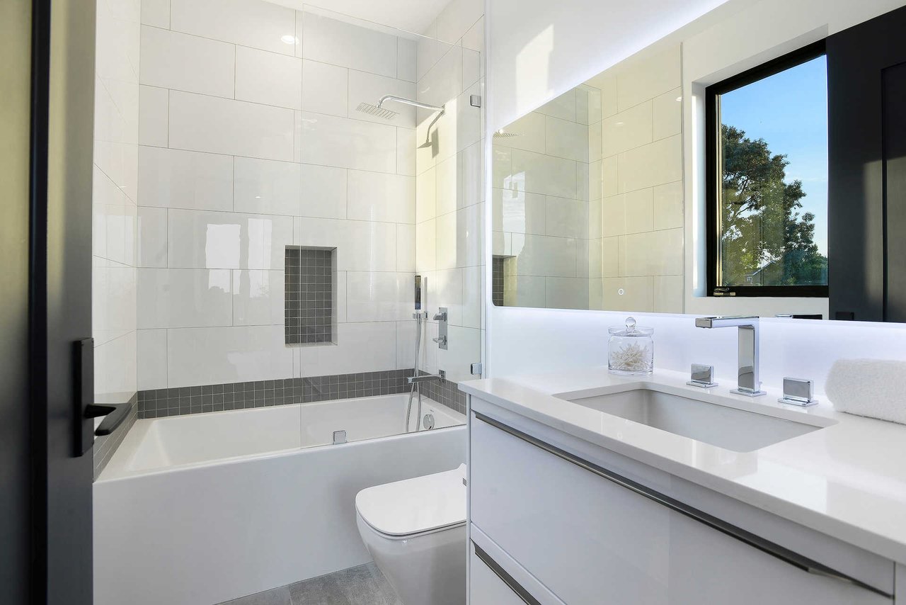 This newly constructed luxury "smart home, " conceived by designer Saman Takaloo, offers an oversized pivot door that steps into an airy, spacious room with oak flooring, countless custom features, and a wine cellar under the stairs. Living room exudes views of the homes below and marina. Pass through the dining room and head to the sleek, modern kitchen which seamlessly flows into the family room and backyard via vanishing sliding glass doors that practically open up the entire wall to the grass area, fire pit and garage beyond. The first-floor bedroom has an accompanying bathroom and doubles as a great office space. All four upstairs bedrooms are precisely placed in separate corners of the house. Step out of any bedroom and enjoy the large living area with attached balcony overlooking the backyard. Each bedroom has its own private bathroom, and the master suite balcony presents 180 degree views from the marina to the mountains. Rooftop patio above includes indoor wet bar.