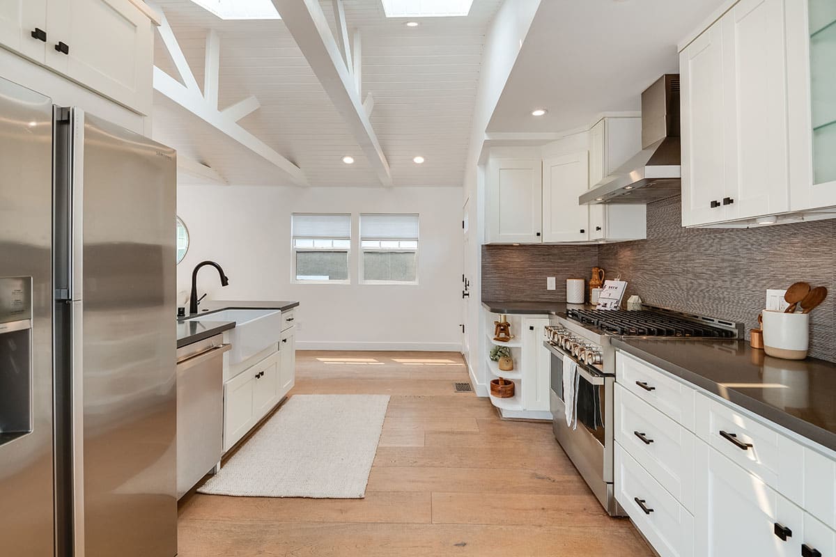 It is of amazing color, clarity, and brilliance. This beach residence is easy on the eyes the moment you walk up the beautiful brick path of the front yard. It also gives a feeling of calm as you gaze with delight from the inside out through the Dutch door. It has all the essentials needed in the world of today; wide plank hardwood floors throughout with a smooth transition to indoor-outdoor living to get one’s Vitamin D on the deck, outdoor dining or chilling with your favorite drink. This home is well lit even without the lights on and its interior architecture is heavenly with beamed ceilings and skylights. There are different options for workspace and areas to workout as well as views from the upper bedrooms. There is even plenty of capacity in the backyard for a swimming pool. Remodeled kitchen with stainless steel-state-of-the-art Samsung refrigerator, Jenn Air range and dishwasher. Sumptuous master retreat with room for additional furniture, access to the backyard and relaxing bath featuring a large soaking tub and rain shower.