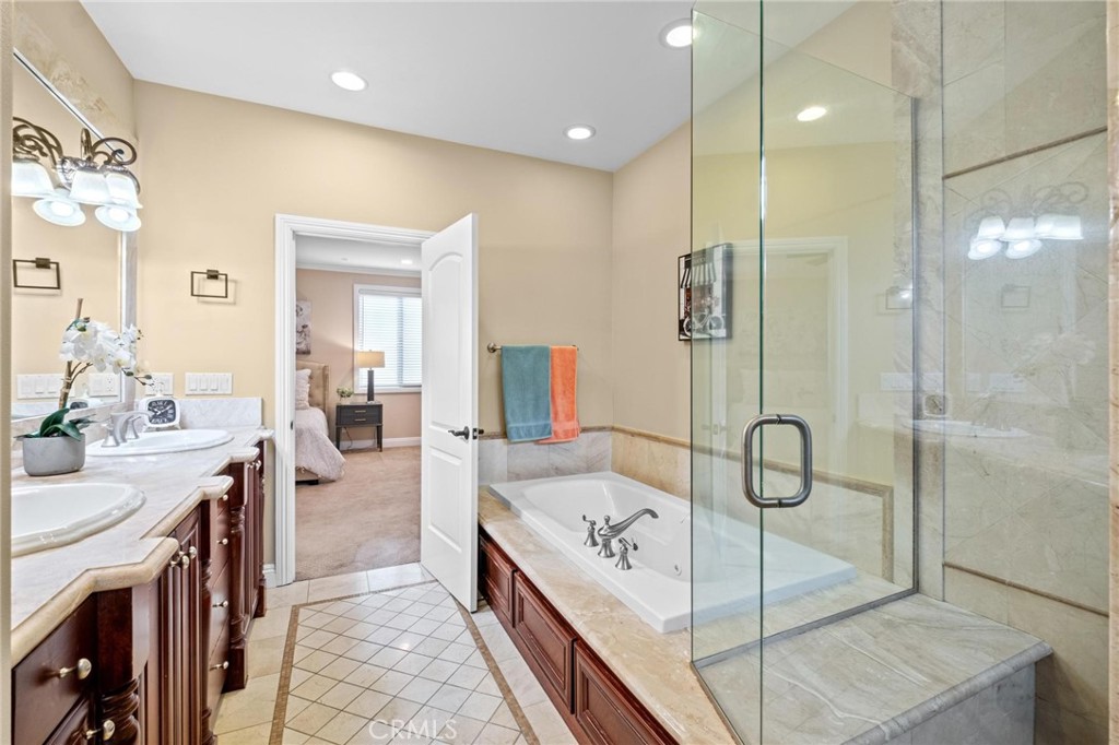 As you enter through Grand wrought-iron front door, you'll see the lower level which features a private bedroom with en suite bath, walk-in closet, and direct garage access.