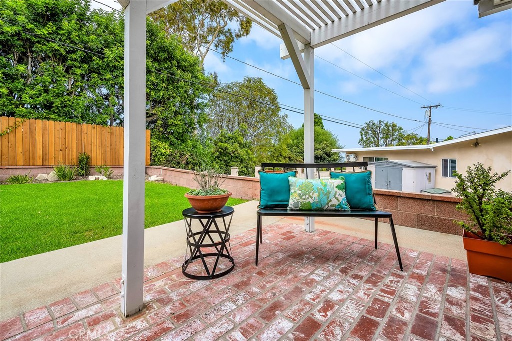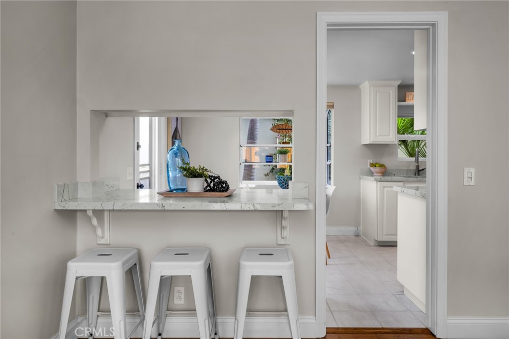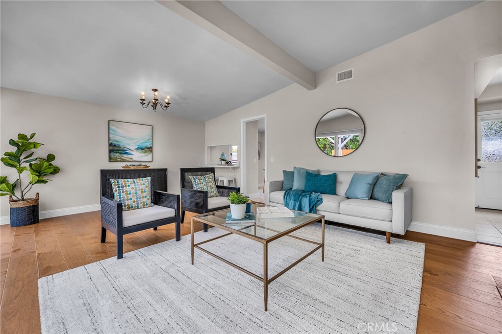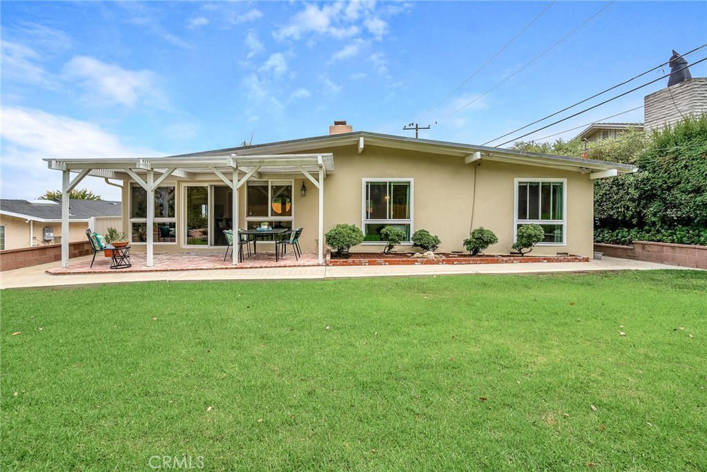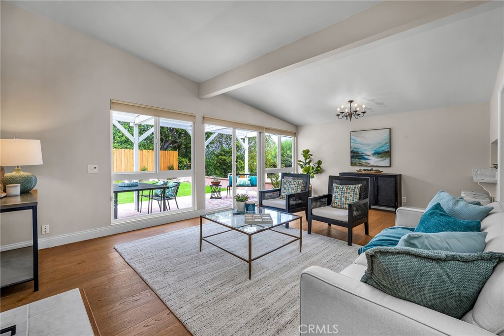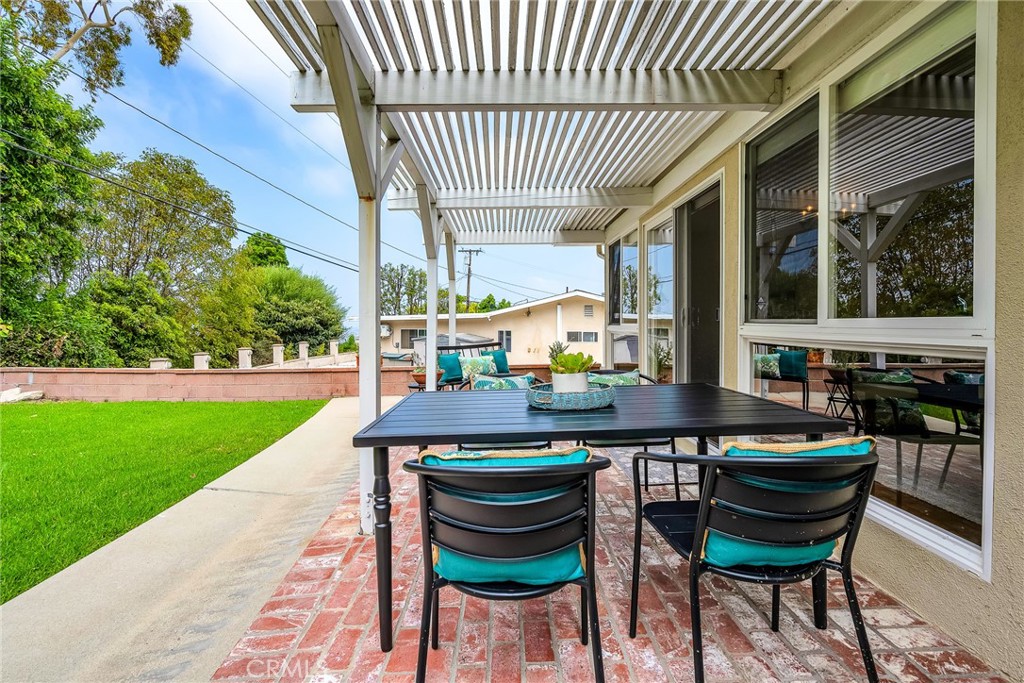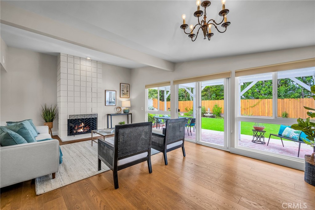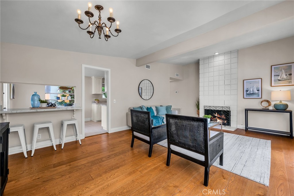 Charming, updated, one story 3 bedroom move in ready home in Rolling Hills Estates. Super quiet section of Rolling Wood. Lush tropical plants surround the entry door and welcome you home. Eat-in galley kitchen with new quartz counter tops, newer stainless steel appliances and double stainless sink, opens to living/dining with a breakfast bar. Bright and light with windows and sliders to the peaceful, landscaped backyard. Living room includes a gas fireplace. So many recent upgrades including manufactured hardwood flooring, newer roof, newer (no and low VOC) paint in neutral colors inside and out. New stackable LG washer dryer. Newer electric stove in kitchen (gas line was capped and is in wall behind stove). Newer toilets and sink fixtures. Custom newer window coverings include shutters in one bedroom, drapes and custom folding shades through out the rest of the home. Primary bedroom includes built-in cabinets with drawers. Electric panel was upgraded in 2019. Enjoy the sparkling city lights view from kitchen and grassy front yard. Great quiet location yet close to schools and the Peninsula Shopping center with coffee shops, dining, grocery and library.