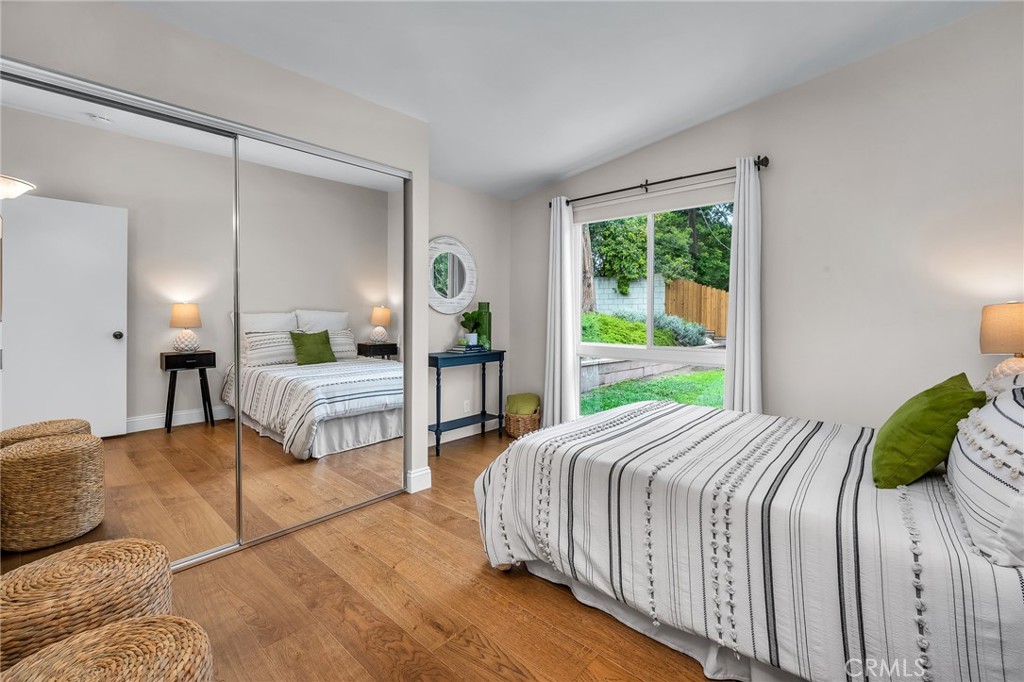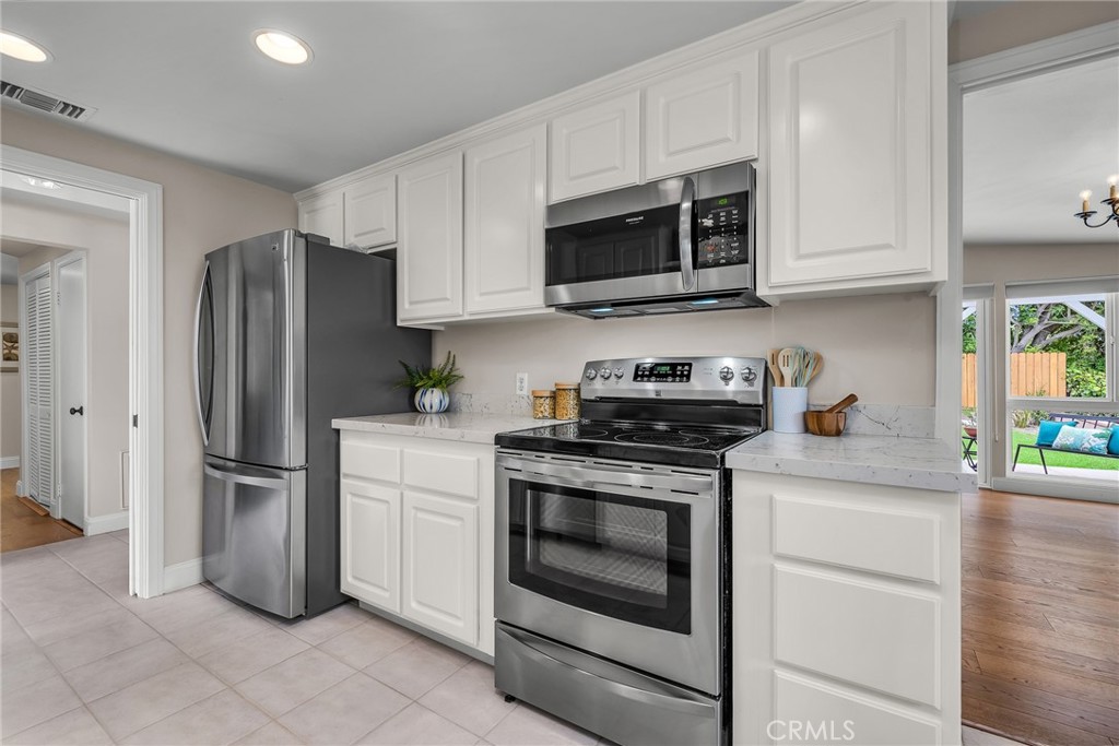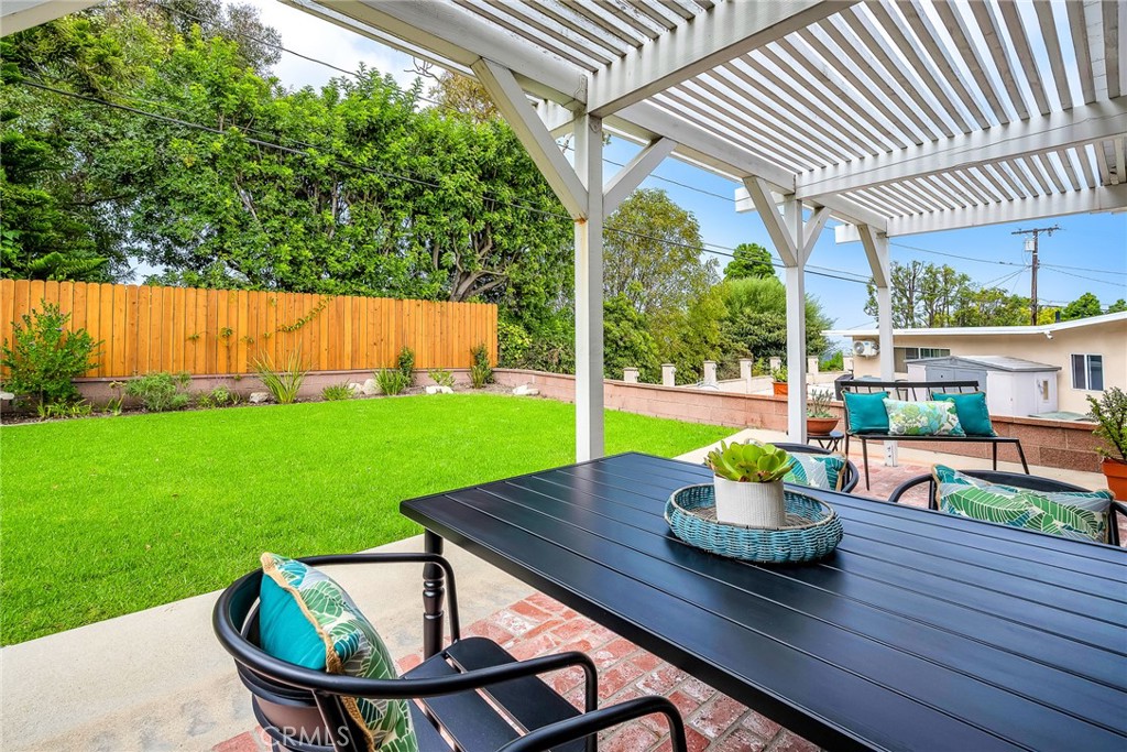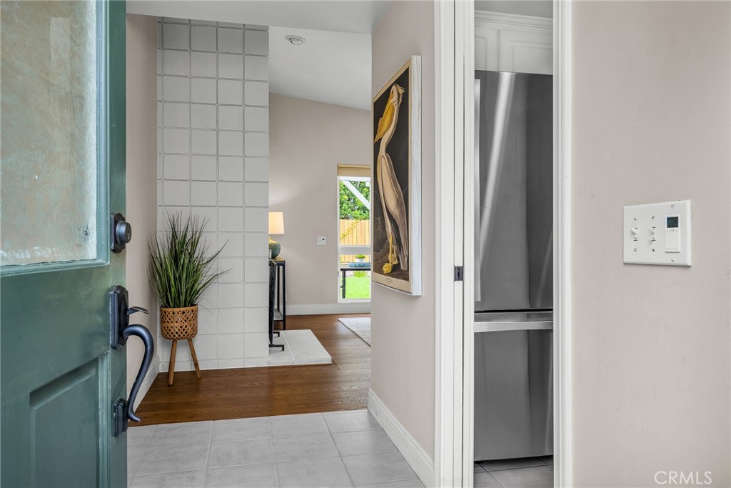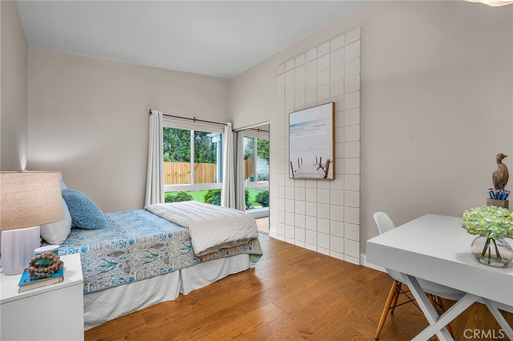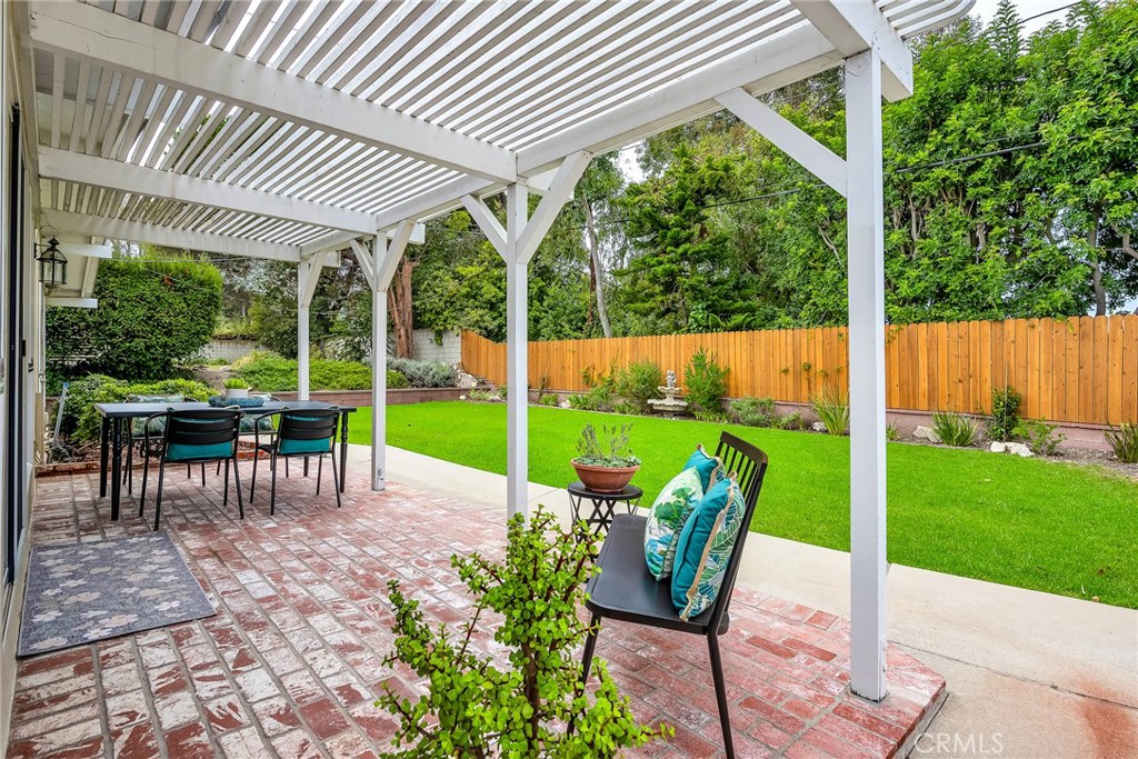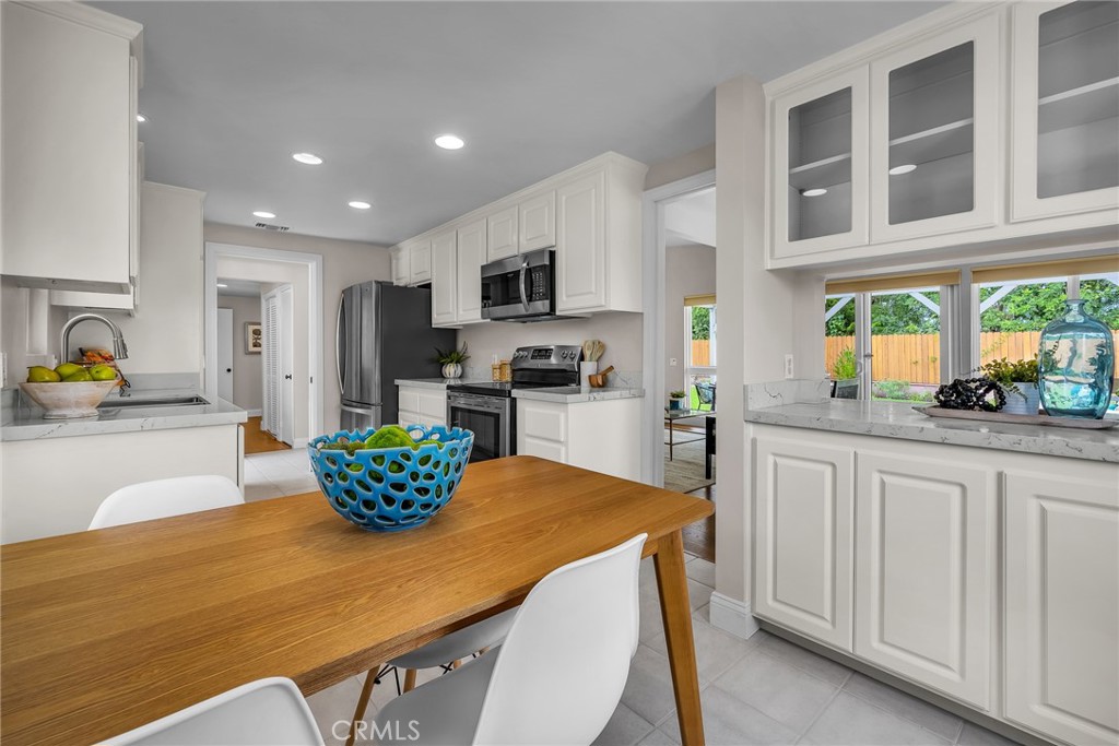 Charming, updated, one story 3 bedroom move in ready home in Rolling Hills Estates. Super quiet section of Rolling Wood. Lush tropical plants surround the entry door and welcome you home. Eat-in galley kitchen with new quartz counter tops, newer stainless steel appliances and double stainless sink, opens to living/dining with a breakfast bar. Bright and light with windows and sliders to the peaceful, landscaped backyard. Living room includes a gas fireplace. So many recent upgrades including manufactured hardwood flooring, newer roof, newer (no and low VOC) paint in neutral colors inside and out. New stackable LG washer dryer. Newer electric stove in kitchen (gas line was capped and is in wall behind stove). Newer toilets and sink fixtures. Custom newer window coverings include shutters in one bedroom, drapes and custom folding shades through out the rest of the home. Primary bedroom includes built-in cabinets with drawers. Electric panel was upgraded in 2019. Enjoy the sparkling city lights view from kitchen and grassy front yard. Great quiet location yet close to schools and the Peninsula Shopping center with coffee shops, dining, grocery and library.
