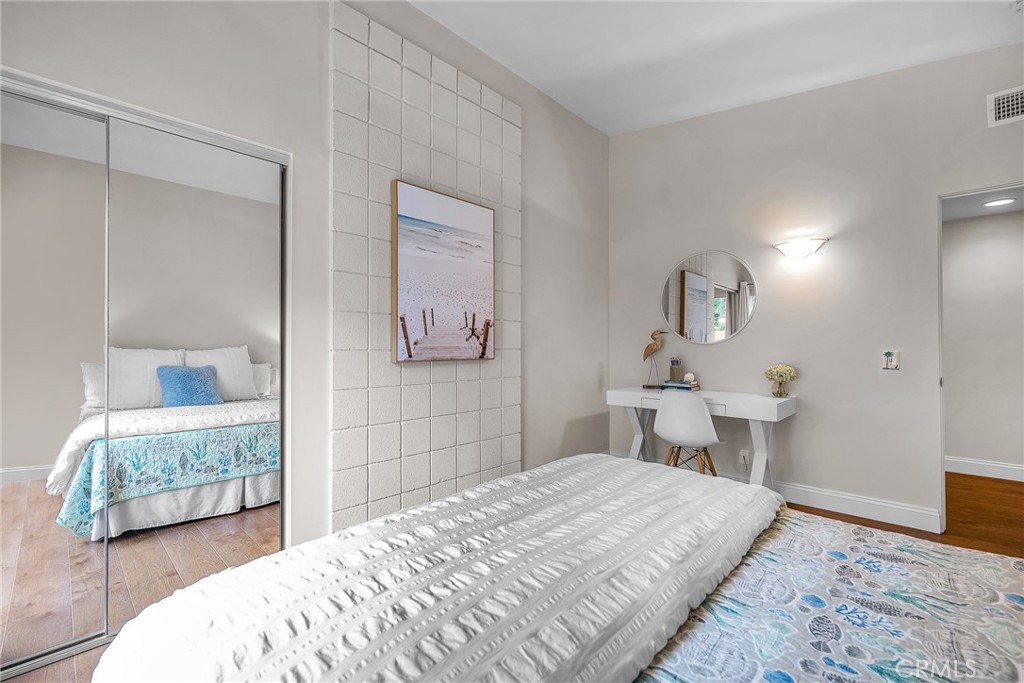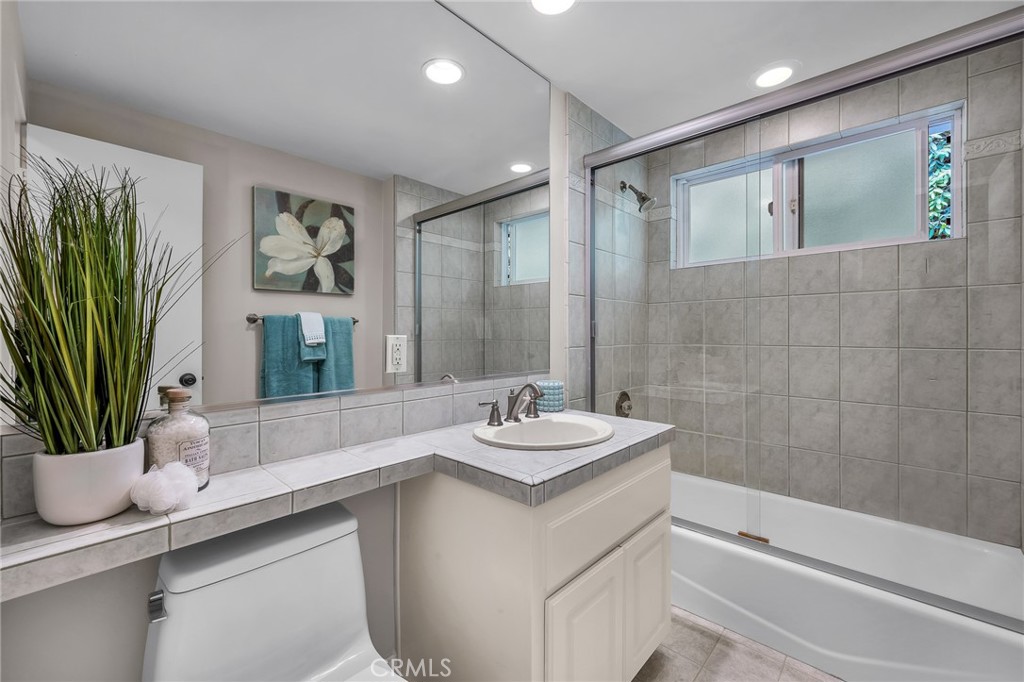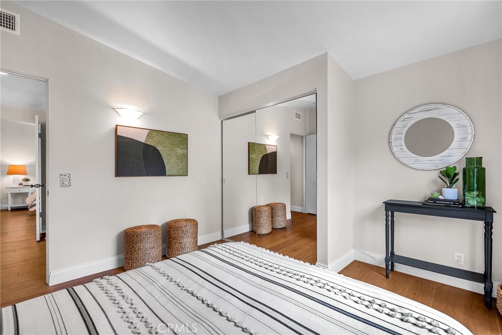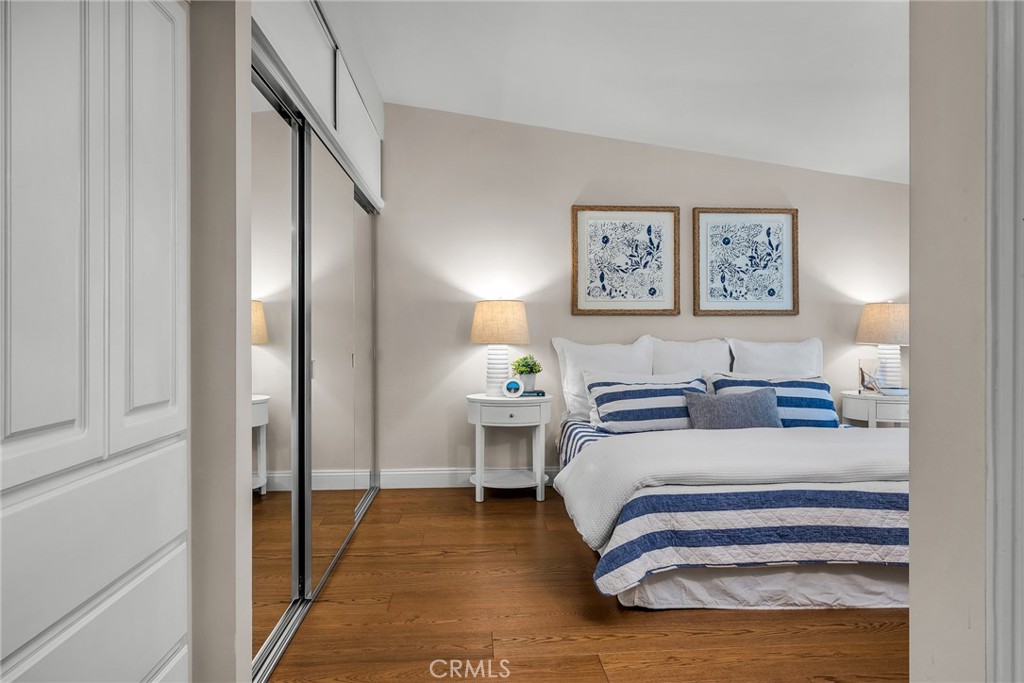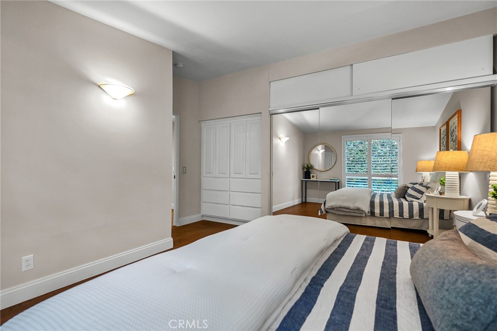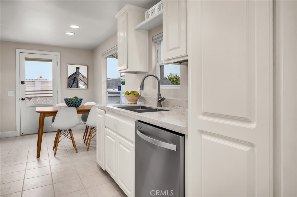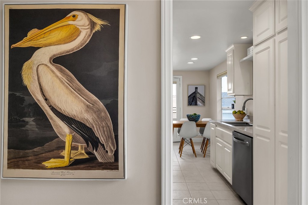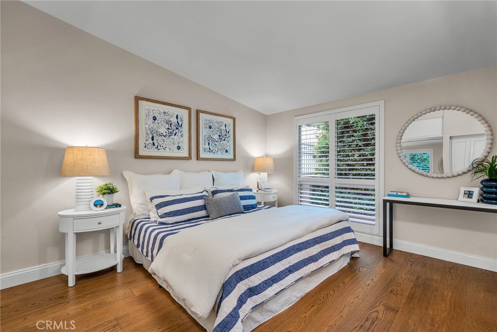 Charming, updated, one story 3 bedroom move in ready home in Rolling Hills Estates. Super quiet section of Rolling Wood. Lush tropical plants surround the entry door and welcome you home. Eat-in galley kitchen with new quartz counter tops, newer stainless steel appliances and double stainless sink, opens to living/dining with a breakfast bar. Bright and light with windows and sliders to the peaceful, landscaped backyard. Living room includes a gas fireplace. So many recent upgrades including manufactured hardwood flooring, newer roof, newer (no and low VOC) paint in neutral colors inside and out. New stackable LG washer dryer. Newer electric stove in kitchen (gas line was capped and is in wall behind stove). Newer toilets and sink fixtures. Custom newer window coverings include shutters in one bedroom, drapes and custom folding shades through out the rest of the home. Primary bedroom includes built-in cabinets with drawers. Electric panel was upgraded in 2019. Enjoy the sparkling city lights view from kitchen and grassy front yard. Great quiet location yet close to schools and the Peninsula Shopping center with coffee shops, dining, grocery and library.