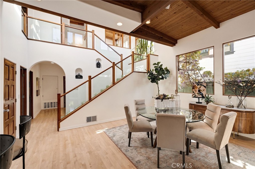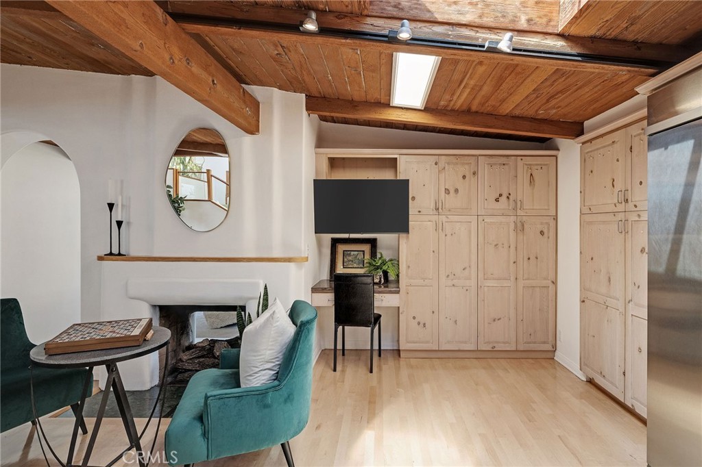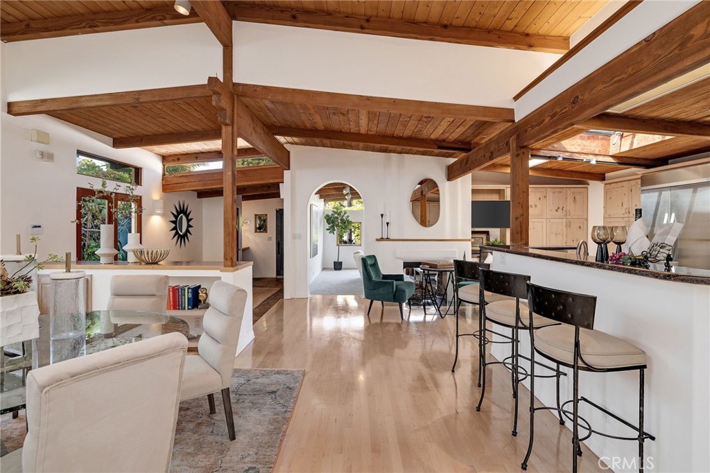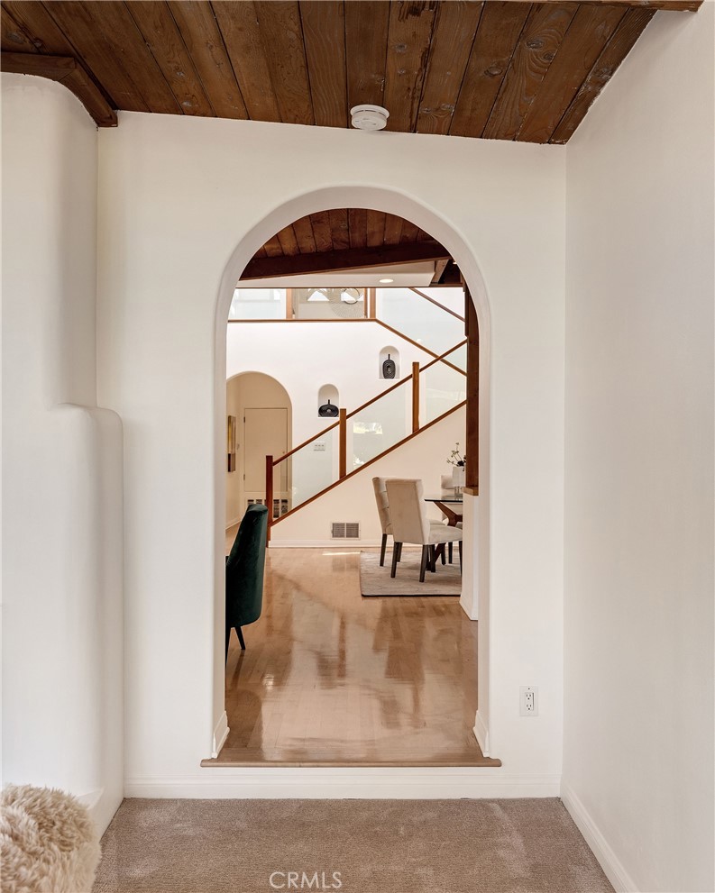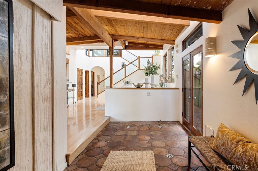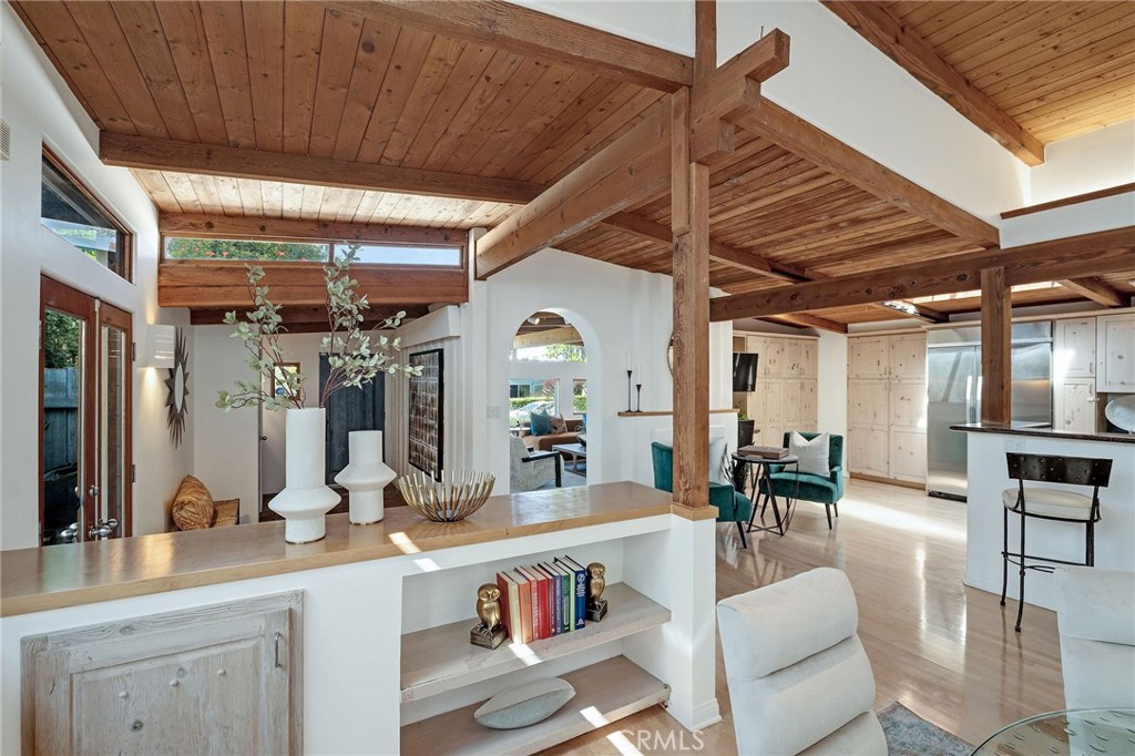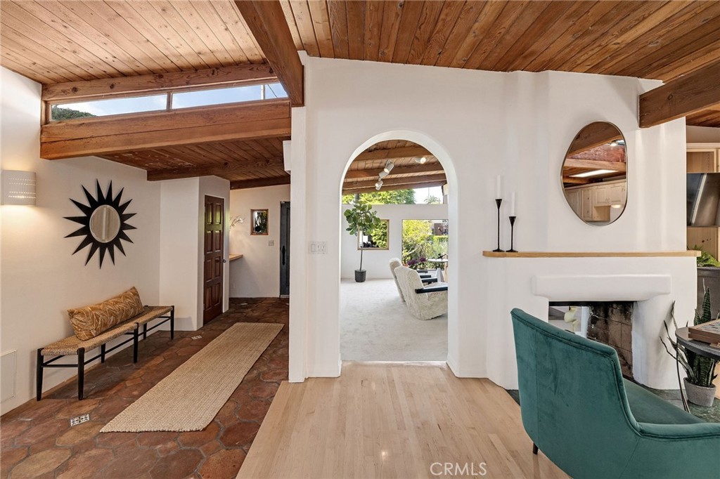 Family Home with Timeless Soul -- Behind an unassuming entry awaits a Spanish-flared sanctuary that will stop you in your tracks. This unique family friendly home offers a blend of rustic elegance and authentic character rarely found in today's overly abundant cookie-cutter homes. Do you dare to be different? The timeless Spanish arches frame its internal charm and create architectural surprises at every turn. Large single-pane windows flood interior spaces with natural light and complement the natural wood beamed ceilings. Throughout the home, authentic Saltillo tiles inside and out create a seamless connection between living spaces. The heart of the home features a stunning dual-sided adobe fireplace that radiates both warmth and architectural authenticity amidst an open floor plan. This remarkable property offers 5-6 bedrooms and 4 bathrooms in total, including versatile guest quarters above the garage--perfect for an office, visiting friends, multi-generational living, or creating rental income. There is a fun kid's room with a play area and a ladder to the sleeping loft. Dine Al Fresco on the front patio surrounded by what feels like your own private botanical garden. The carefully tended grounds evoke the feeling of a secret treehouse retreat for the kids to explore and where lush foliage creates natural privacy from neighboring properties. This is your opportunity to live in an area known for its charm and desirability, on a full street-to-alley lot, that provides the space and privacy urban homeowners crave in a neighborhood you'll treasure for years to come.