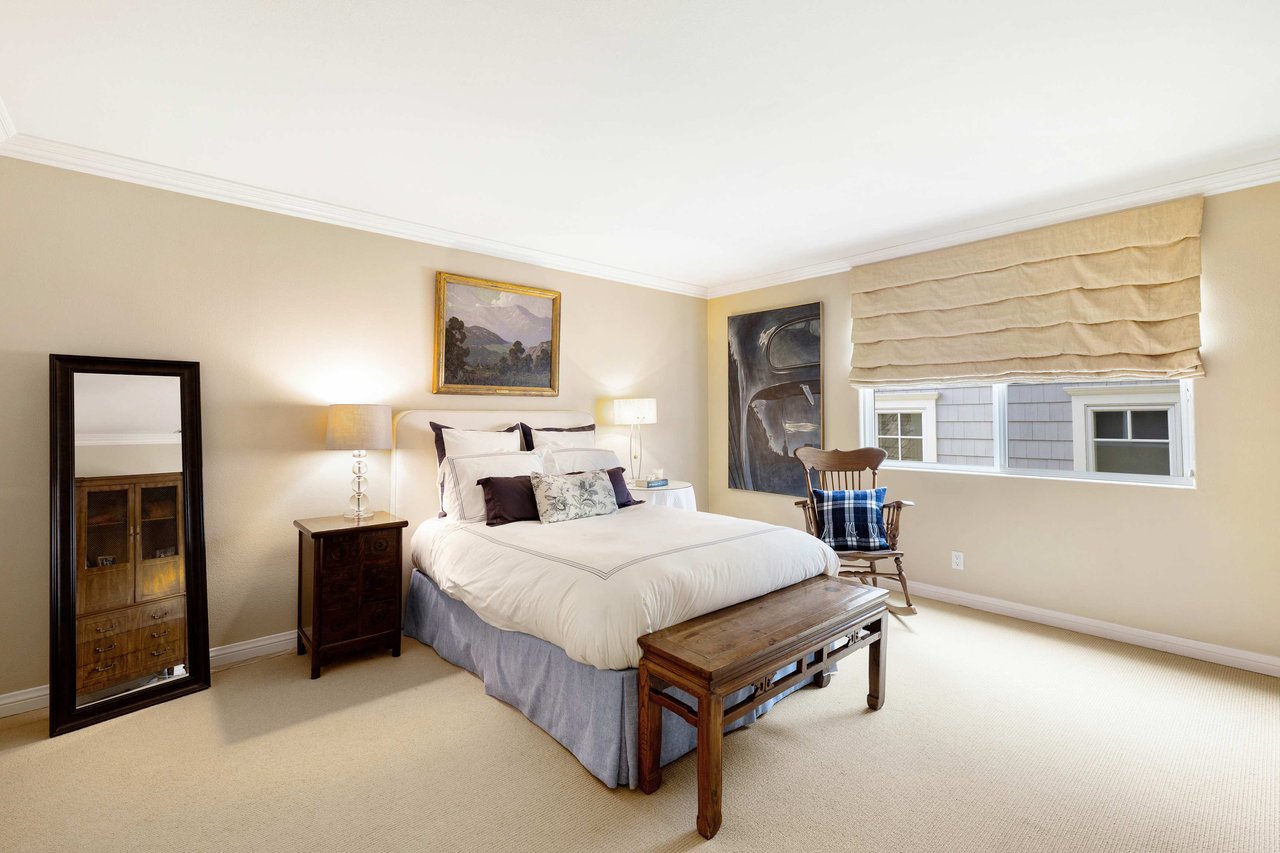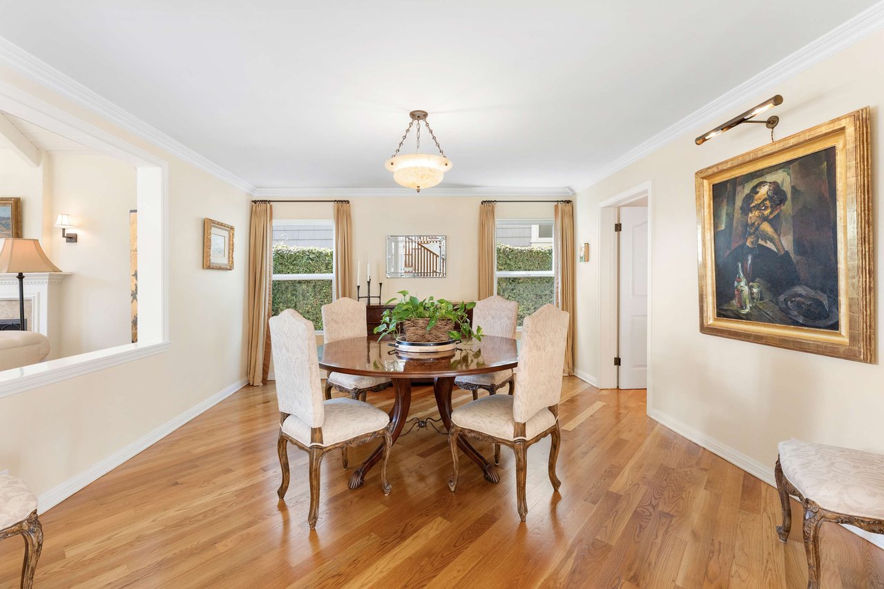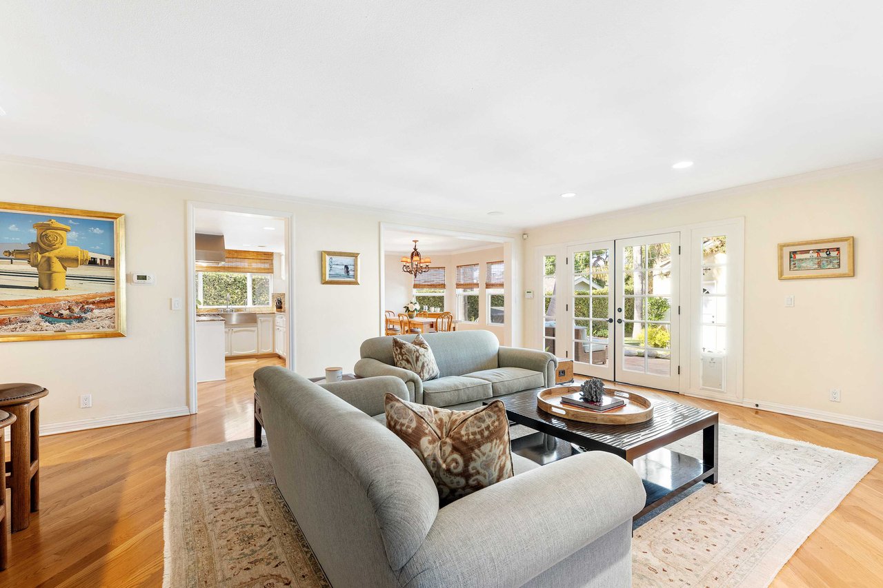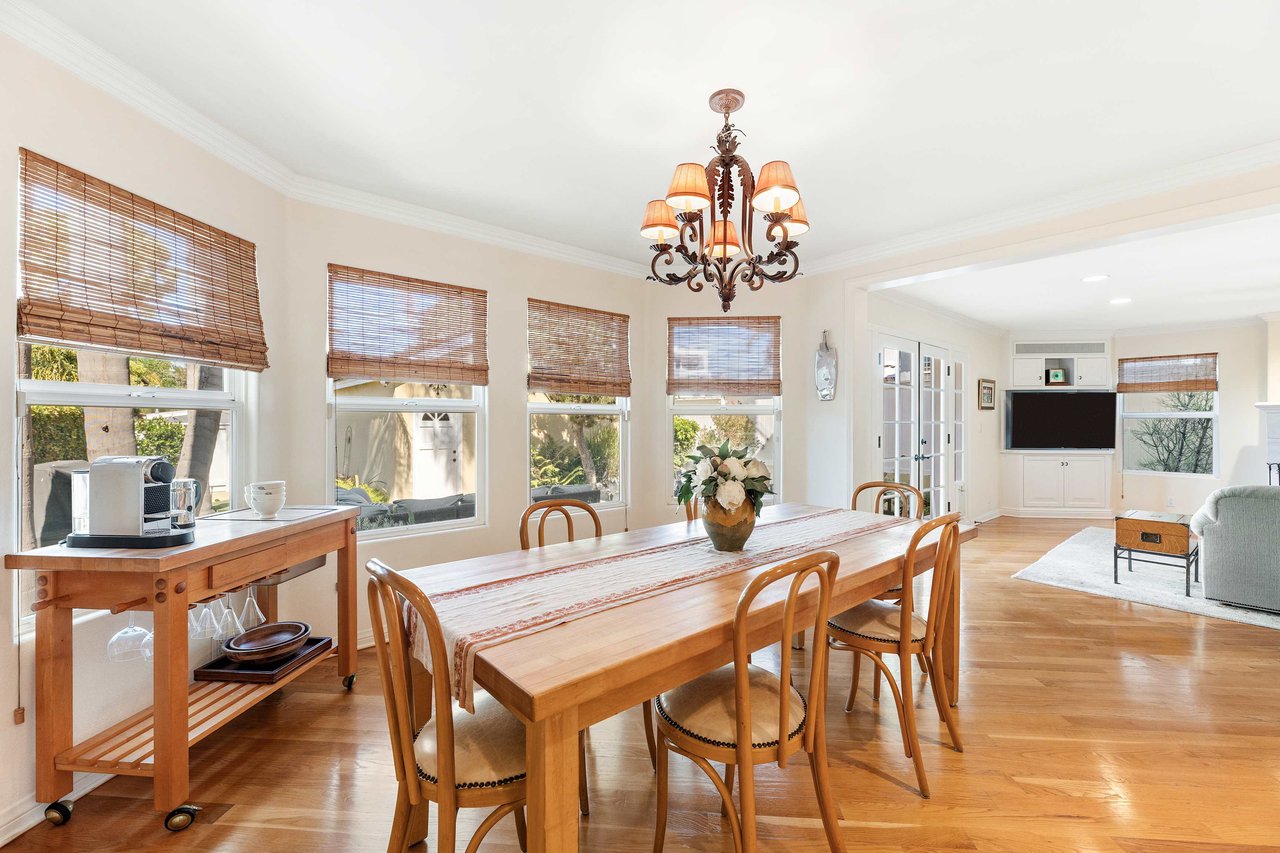 This exquisite residence situated in the desirable Tree Section of Manhattan Beach includes 3 bedrooms, 2.5 bathrooms, and a generous 2,856 square feet of living space. A white picket fence and gorgeous front lawn greet you upon entry. Once inside, you'll be instantly struck by the warm and inviting traditional interior seamlessly blending timeless elegance with contemporary functionality. The main level reveals spacious living areas, ideal for entertaining and creating lasting memories. Each room is thoughtfully separated, providing both privacy and individuality. The living room features a vaulted A-frame ceiling and a wood burning fireplace, creating an inviting atmosphere. The formal dining room is intimate, perfect for hosting memorable dinners. The kitchen is equipped with high end stainless steel gourmet appliances, including Sub Zero refrigerator, Viking cooktop, KitchenAid double oven with convection, and Miele dishwasher, making cooking a true pleasure. The large eat-in nook on the other side of the kitchen is bathed in natural light and looks out to the backyard complete with slate patio, mature landscaping, turf lawn and koi pond. The adjacent family room has a beautiful cast stone fireplace, built in bar, and opens up to the backyard through French doors. All of the bedrooms are generous in size and upstairs where the laundry is conveniently located. The primary suite is oversized with vaulted beamed ceilings, two large closets and a patio overlooking the yard. The bath has a soaking tub, separate shower with steam and enclosed toilet. Additional amenities include AC, two car garage with built in storage, additional two car parking in alley and Tesla charging. Nestled in the highly sought-after Tree Section of Manhattan Beach it offers an ideal location with easy access to a wide array of amenities. Discover parks or the nearby local beach, or explore the vibrant dining and shopping scene. Property is currently fully furnished and can remain furnished.