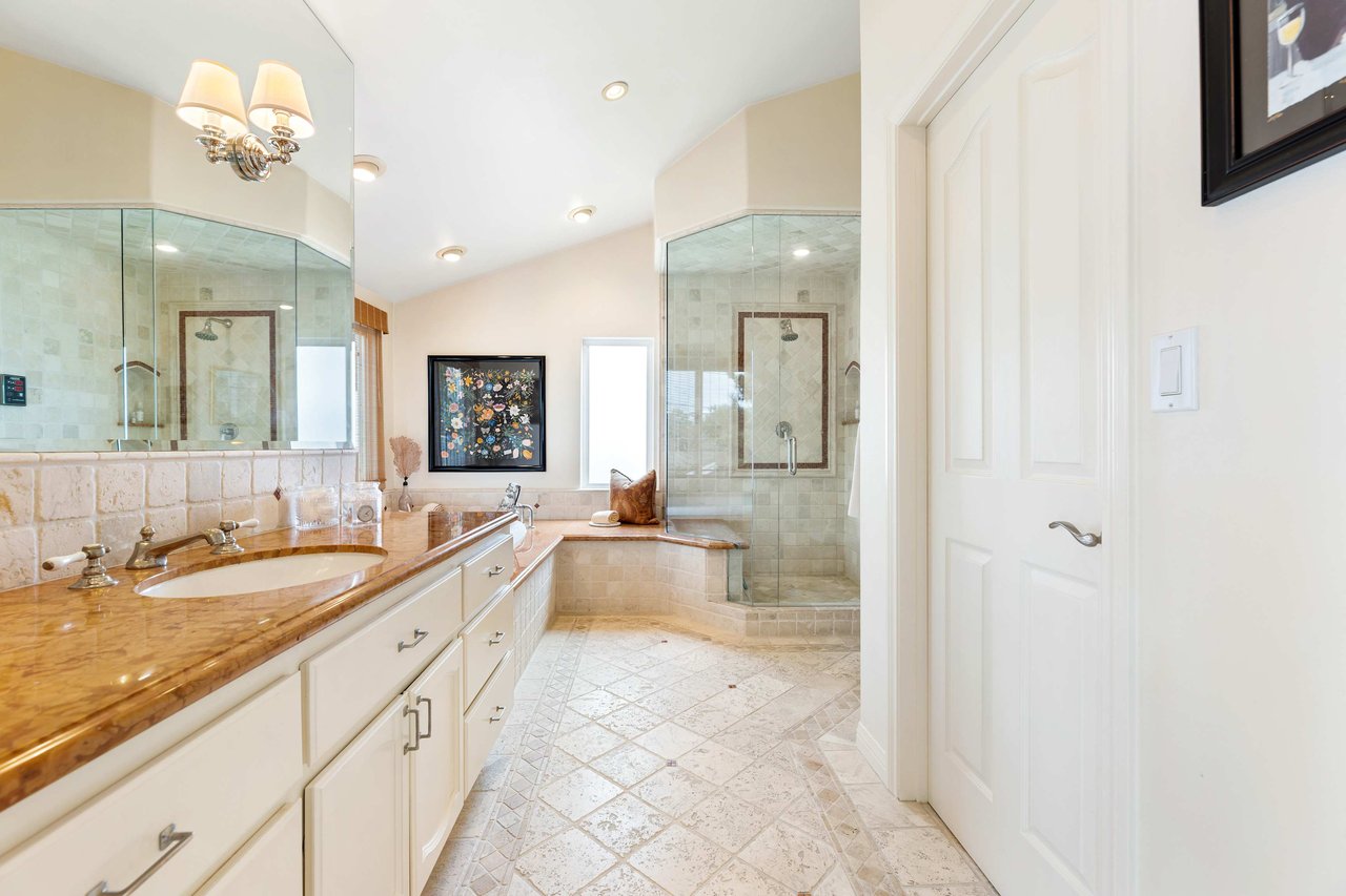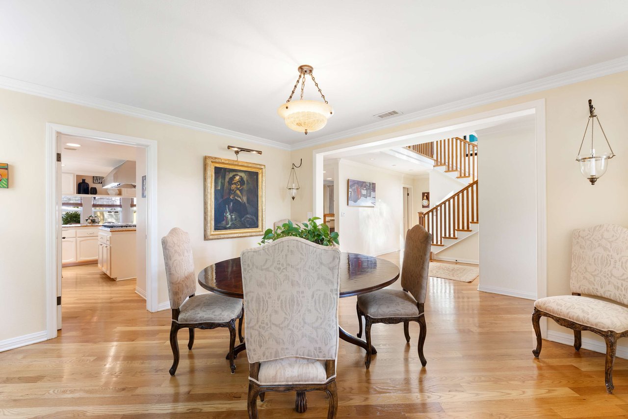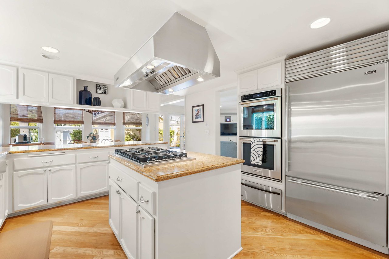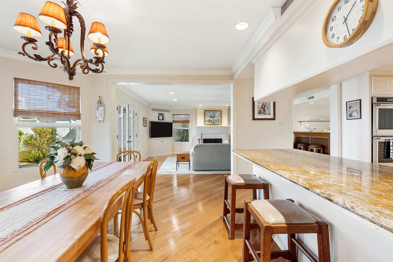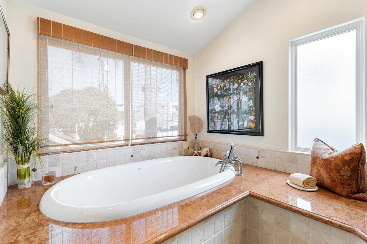 This exquisite residence situated in the desirable Tree Section of Manhattan Beach includes 3 bedrooms, 2.5 bathrooms, and a generous 2,856 square feet of living space. A white picket fence and gorgeous front lawn greet you upon entry. Once inside, you'll be instantly struck by the warm and inviting traditional interior seamlessly blending timeless elegance with contemporary functionality. The main level reveals spacious living areas, ideal for entertaining and creating lasting memories. Each room is thoughtfully separated, providing both privacy and individuality. The living room features a vaulted A-frame ceiling and a wood burning fireplace, creating an inviting atmosphere. The formal dining room is intimate, perfect for hosting memorable dinners. The kitchen is equipped with high end stainless steel gourmet appliances, including Sub Zero refrigerator, Viking cooktop, KitchenAid double oven with convection, and Miele dishwasher, making cooking a true pleasure. The large eat-in nook on the other side of the kitchen is bathed in natural light and looks out to the backyard complete with slate patio, mature landscaping, turf lawn and koi pond. The adjacent family room has a beautiful cast stone fireplace, built in bar, and opens up to the backyard through French doors. All of the bedrooms are generous in size and upstairs where the laundry is conveniently located. The primary suite is oversized with vaulted beamed ceilings, two large closets and a patio overlooking the yard. The bath has a soaking tub, separate shower with steam and enclosed toilet. Additional amenities include AC, two car garage with built in storage, additional two car parking in alley and Tesla charging. Nestled in the highly sought-after Tree Section of Manhattan Beach it offers an ideal location with easy access to a wide array of amenities. Discover parks or the nearby local beach, or explore the vibrant dining and shopping scene. Property is currently fully furnished and can remain furnished.