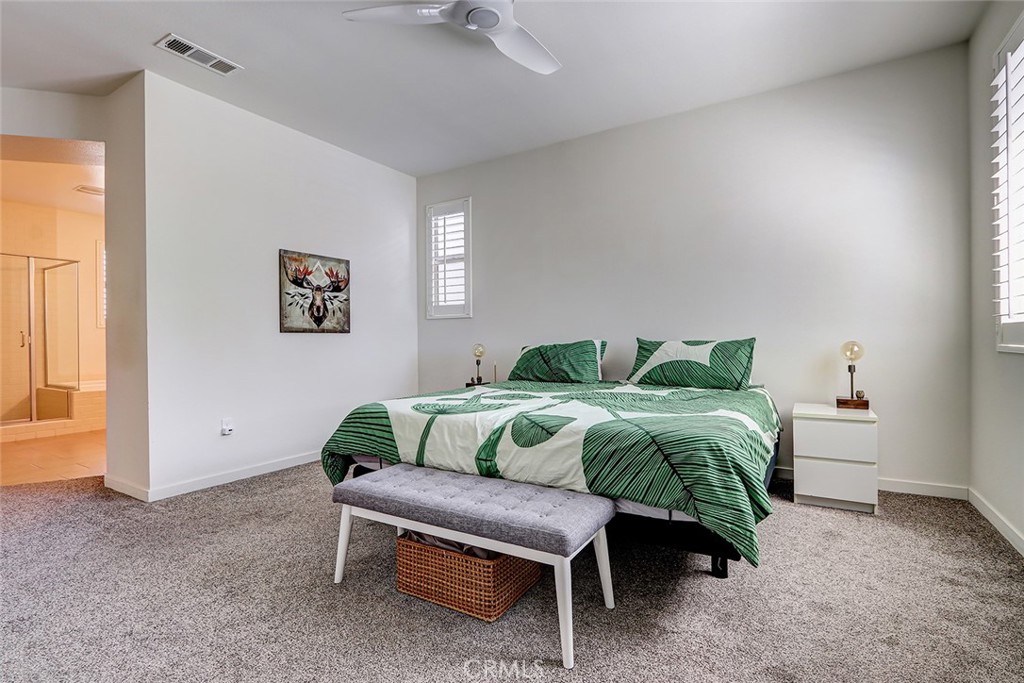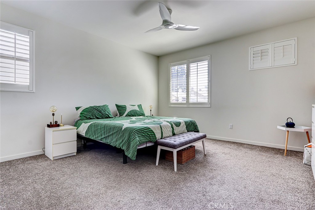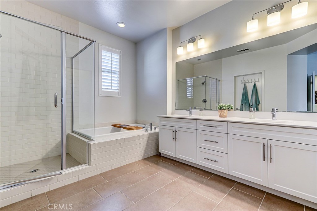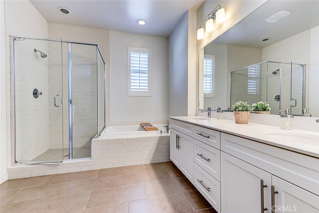 The luxurious primary suite offers a peaceful retreat, complete with a spa-like bathroom featuring dual sinks, a soaking tub, a separate shower, and a walk-in closet. Each bedroom has multiple windows that flood the spaces with natural light and added comfort.