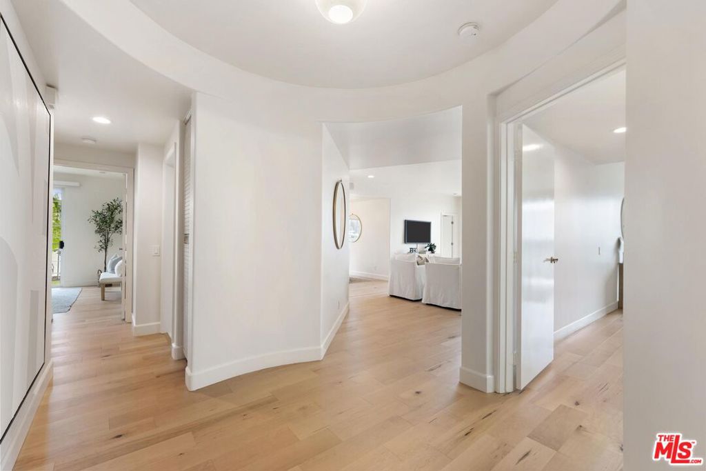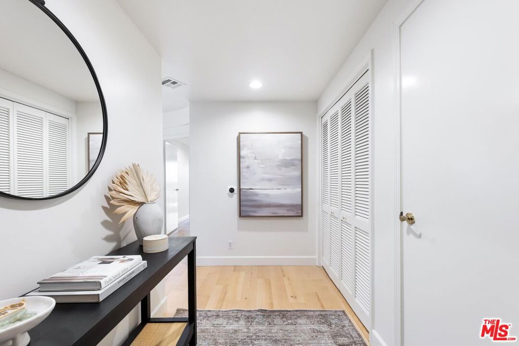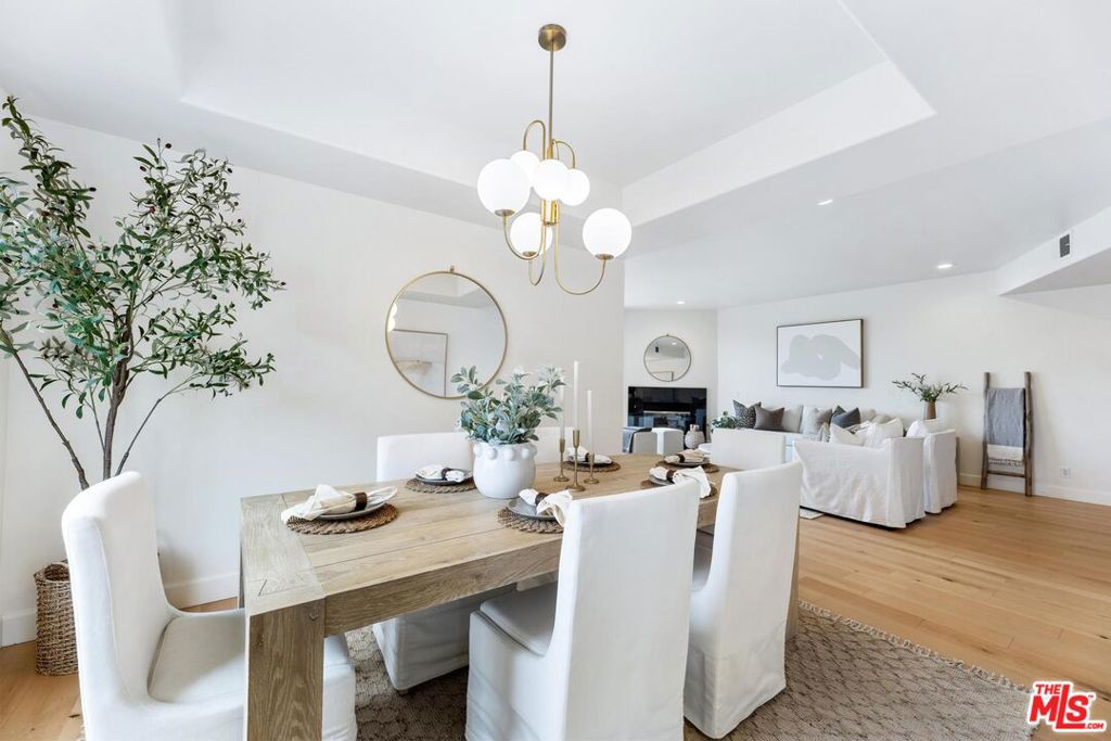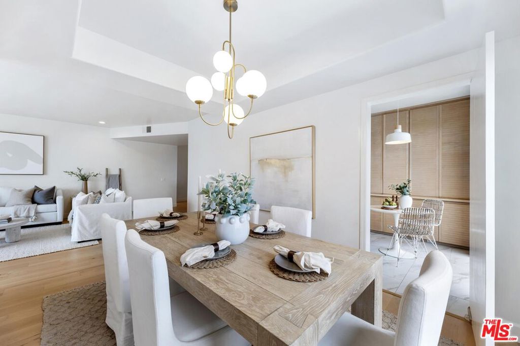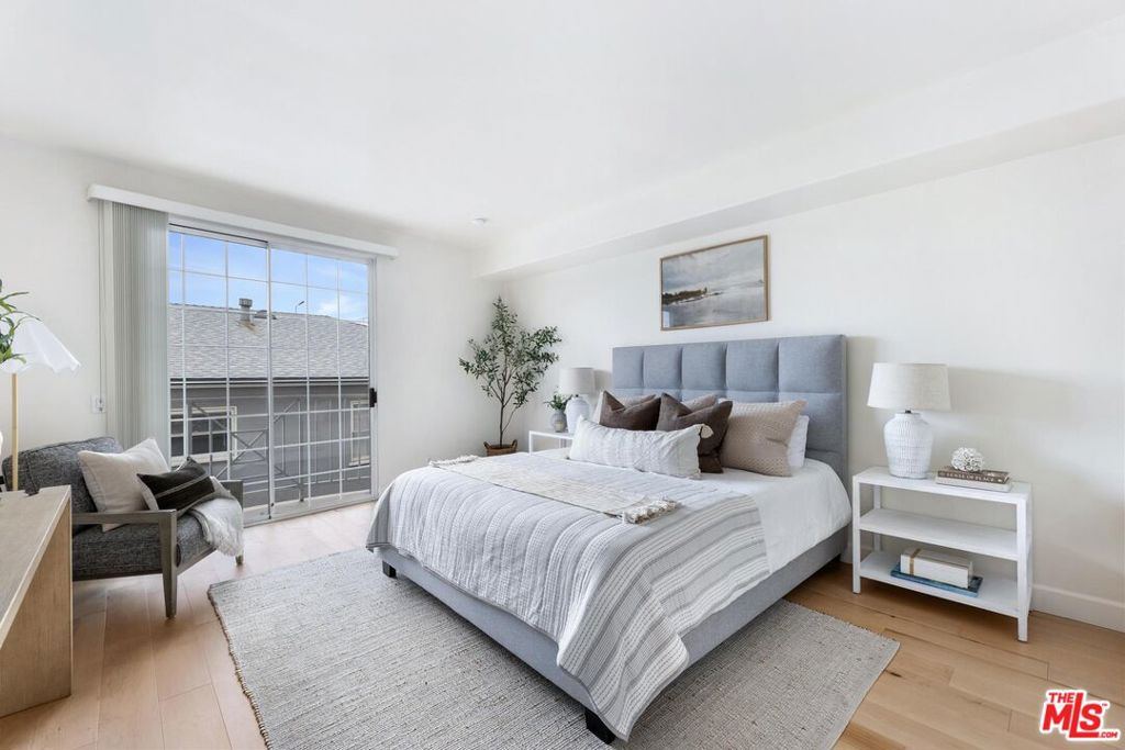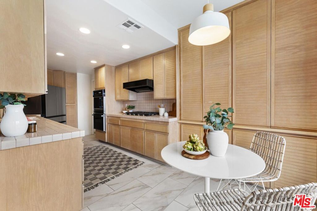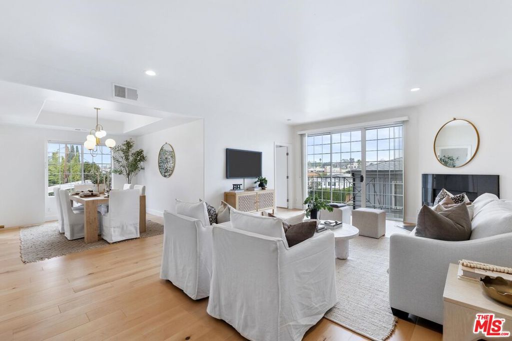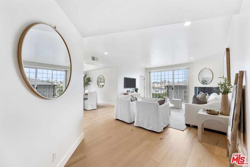 Quietly positioned within a desirable Beverly Hills adjacent neighborhood, 9880 Vidor Drive Unit 104 is a second floor light filled corner residence defined by scale, privacy, and expansive sightlines. Four private terraces extend from the home, capturing Beverly Hill's skyline and mountain views while creating an effortless indoor/outdoor flow throughout the living spaces. Although designated as Unit 104, the residence is situated on the second level, raised above the street to enhance privacy, security, and an elevated living experience. Upon entry, a gracious foyer establishes a true sense of arrival before opening into the main living areas. The open concept living and dining space unfolds with ease, anchored by recently updated flooring and framed by expansive windows and glass doors that flood the home with natural light and connect seamlessly to the surrounding terraces. The three bedroom layout is thoughtfully designed, with each bedroom positioned at a separate corner of the residence, creating a heightened sense of privacy throughout. Additional highlights include air conditioning, in-unit laundry and two side-by-side garage parking spaces, a rare and valuable convenience in this location. Intelligently designed and positioned as a corner unit, 9880 Vidor Drive Unit 104 delivers a refined living experience marked by abundant natural light, elevated views, and privacy, just moments from Beverly Hills and Century City.