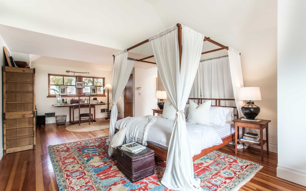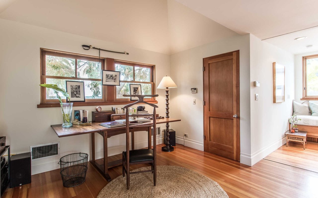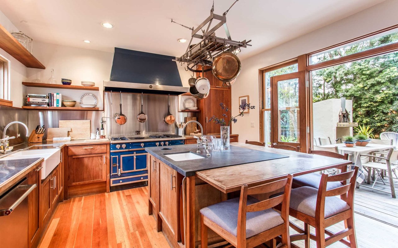 Built in 1909, this original Craftsman home on a private, oversized lot-and-a-half has been beautifully remodeled to offer warmth and elegance just moments from Venice Beach and Abbot Kinney. The inviting front porch leads into an open living room with a gas fireplace; cherry wood library; welcoming den; and formal dining room with original Pierre Madel Paris chandelier. The gourmet chef's kitchen is complete with Le Cornue range, Subzero refrigerator and large built-in bluestone island. The wet bar includes wine refrigerators and skylights allow for plenty of light. Upstairs holds a generous master suite with a large en-suite bathroom and walk-in closet, two guest bedrooms, and beautiful terrace looking onto a canopy of trees with the secluded backyard/patio. Great for indoor-outdoor dining/entertaining, outdoors boasts an original EarthStone pizza oven. Altair Place exemplifies the balance of classic architecture and modern urban living in one of L. A. 's most dynamic enclaves.