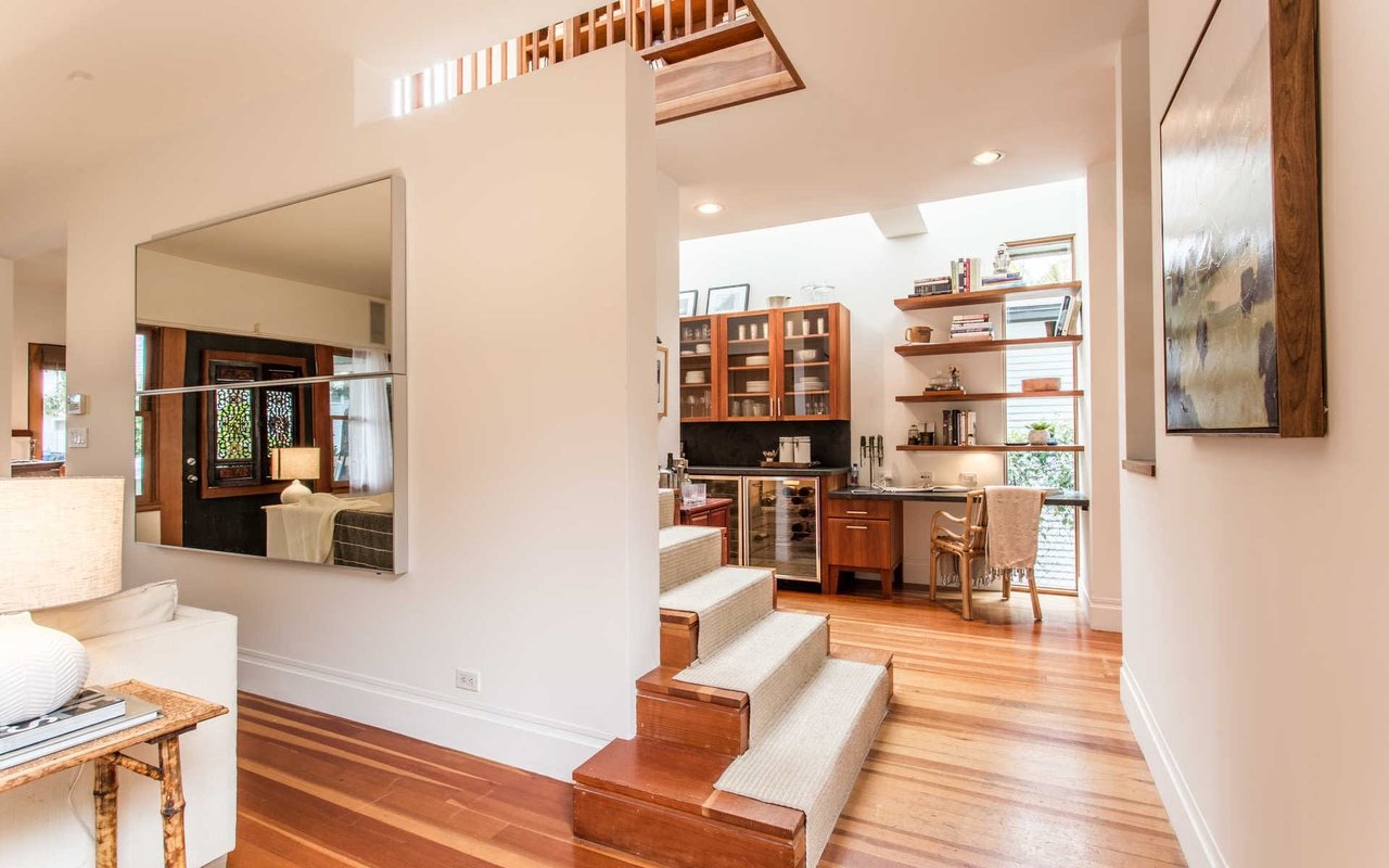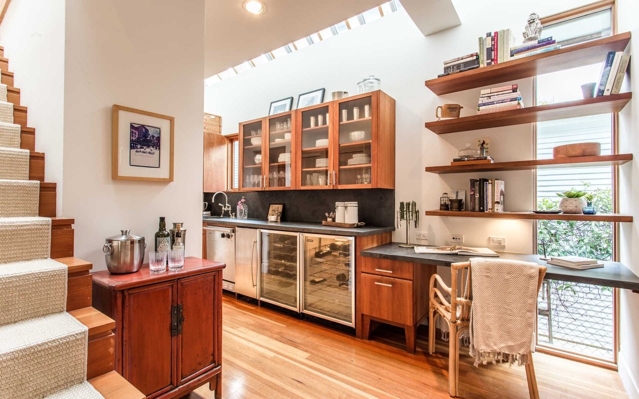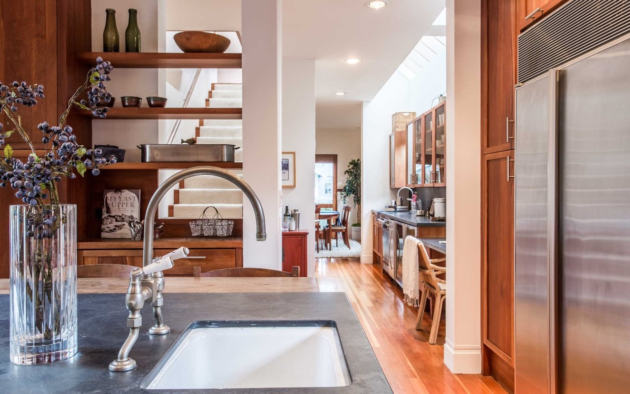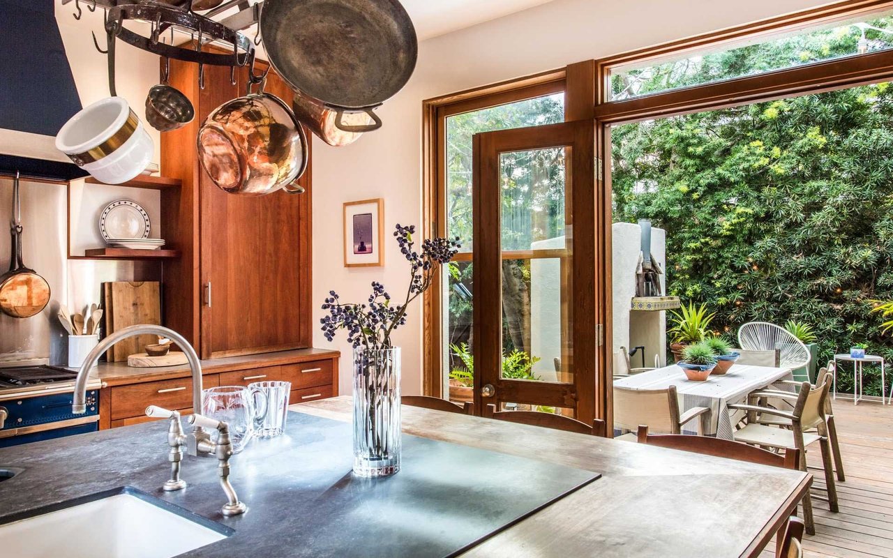 Built in 1909, this original Craftsman home on a private, oversized lot-and-a-half has been beautifully remodeled to offer warmth and elegance just moments from Venice Beach and Abbot Kinney. The inviting front porch leads into an open living room with a gas fireplace; cherry wood library; welcoming den; and formal dining room with original Pierre Madel Paris chandelier. The gourmet chef's kitchen is complete with Le Cornue range, Subzero refrigerator and large built-in bluestone island. The wet bar includes wine refrigerators and skylights allow for plenty of light. Upstairs holds a generous master suite with a large en-suite bathroom and walk-in closet, two guest bedrooms, and beautiful terrace looking onto a canopy of trees with the secluded backyard/patio. Great for indoor-outdoor dining/entertaining, outdoors boasts an original EarthStone pizza oven. Altair Place exemplifies the balance of classic architecture and modern urban living in one of L. A. 's most dynamic enclaves.